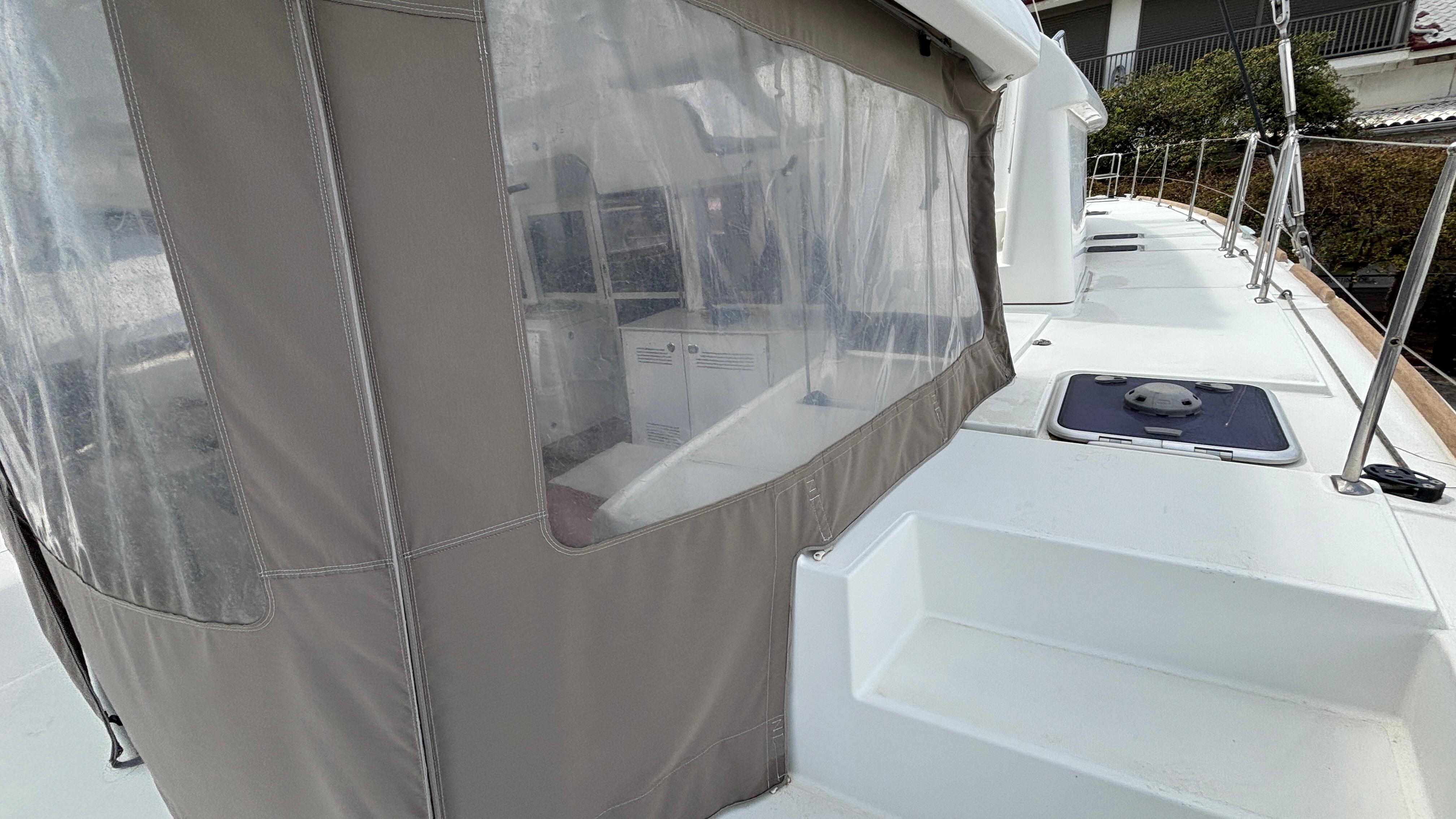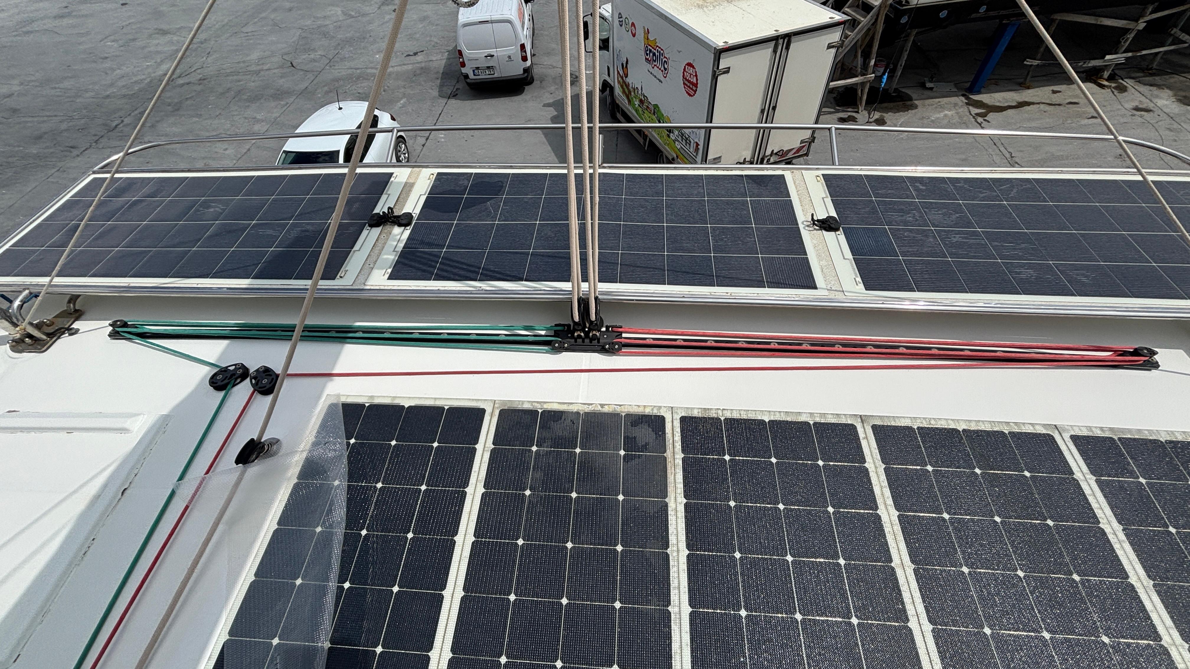 -Summer tent for rear cockpit side and back, Flybridge sunbathing cushions, Net sunbathing cushions (2), front cockpit cushions, rear cockpit cushions, saloon sun worker, boot dressing and winter cover, specially designed tent mounted on the boom on the Flybridge sunbathing cushions, front cockpit sun protection tent, various pillows. -Solbian flexible solar panels (3x 145Wh+6x100Wh), MPPT Solar regulators (2x40A + 20A), DC fuses