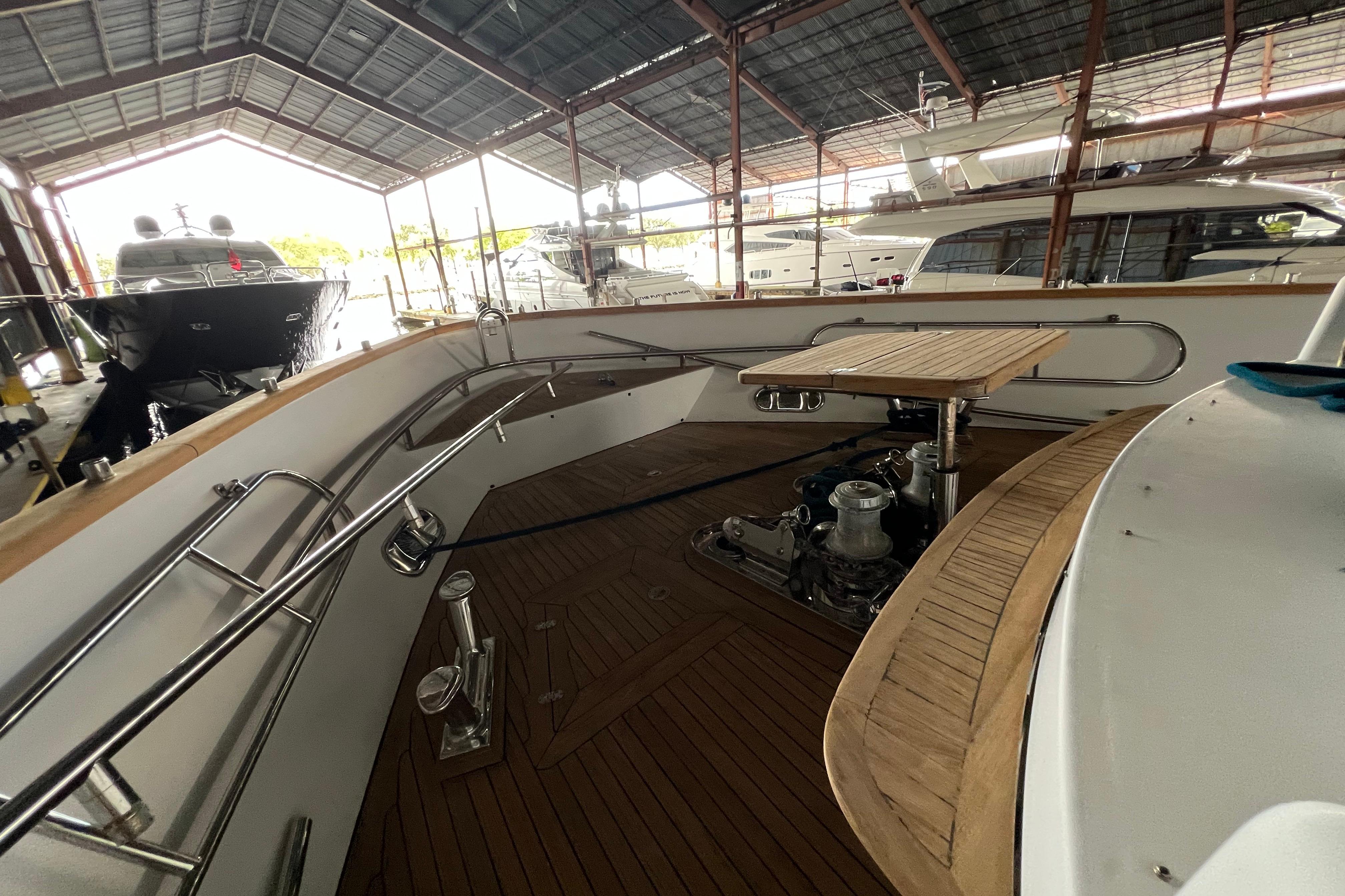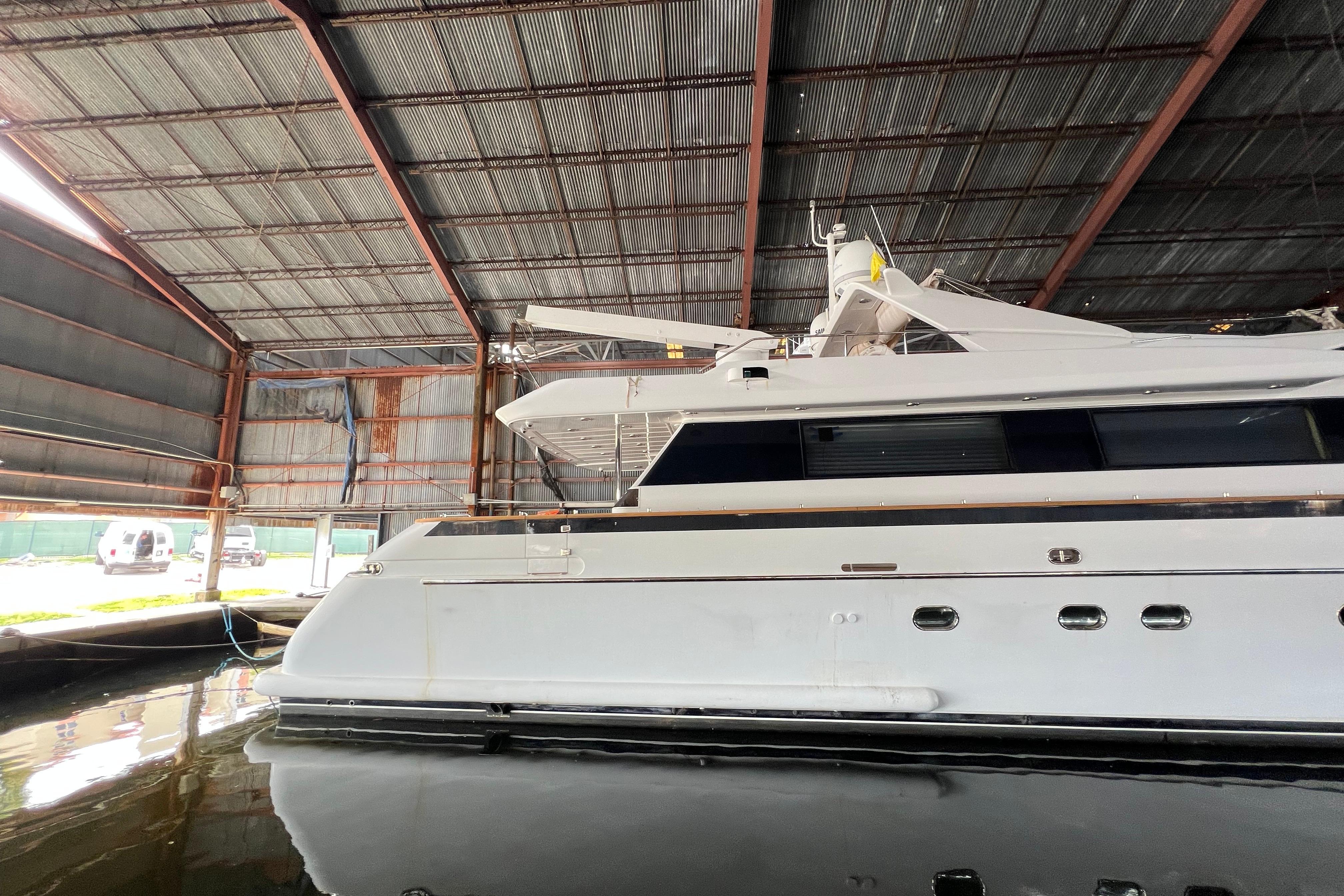 Designed by Stefano Righini, this elegant 106’ Falcon blends classic Italian styling with performance and comfort. Boasting a 23’3” beam, she features five staterooms accommodating up to 10 guests, along with quarters for six crew members. Powered by twin MTU diesel engines, she reaches a top speed of 27 knots and cruises comfortably at 24 knots. With four heads and expansive living spaces, she’s ideal for luxurious cruising and entertaining. This is a great opportunity, as she does require some mechanical and cosmetic work, which is currently being addressed.