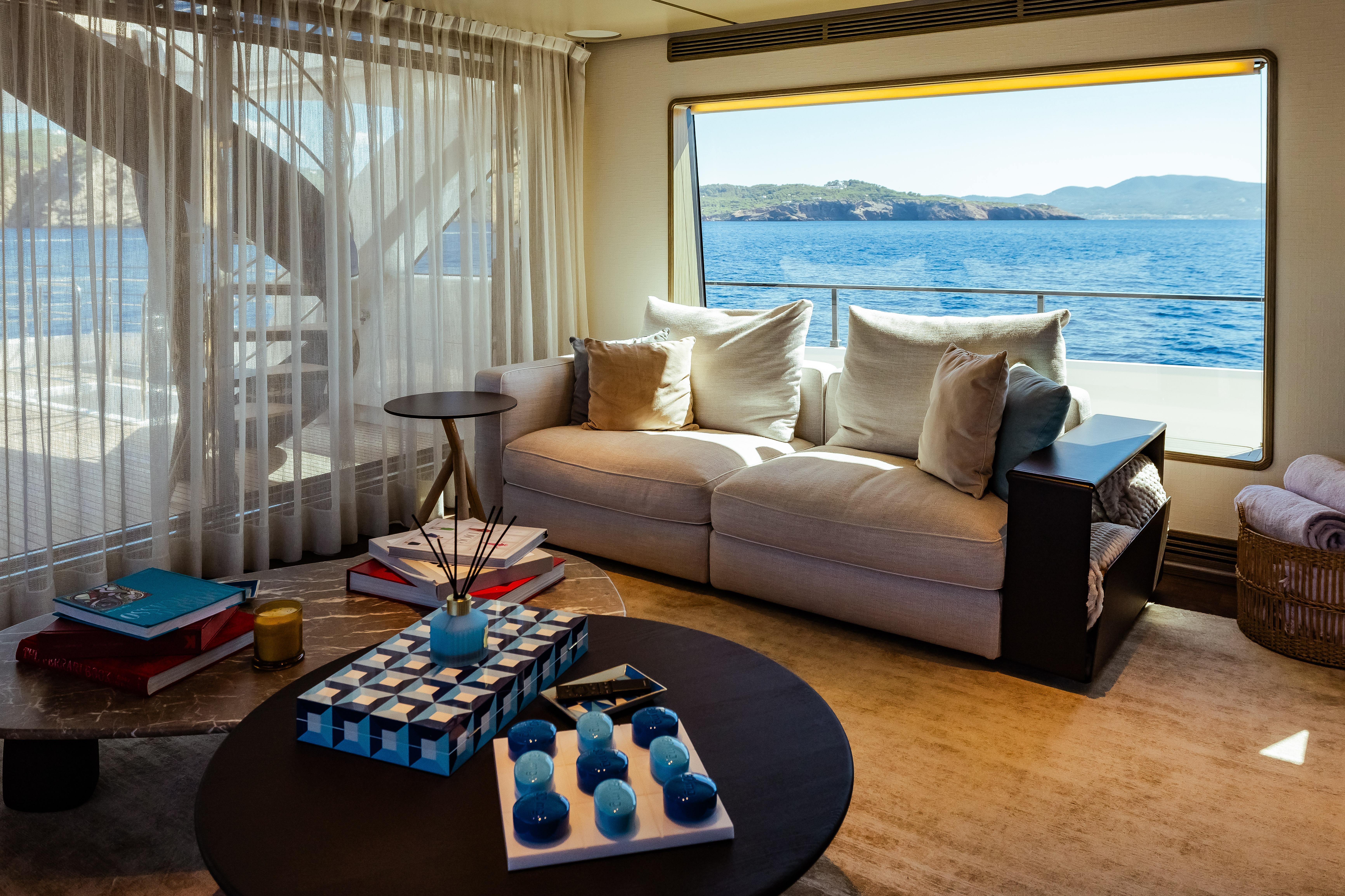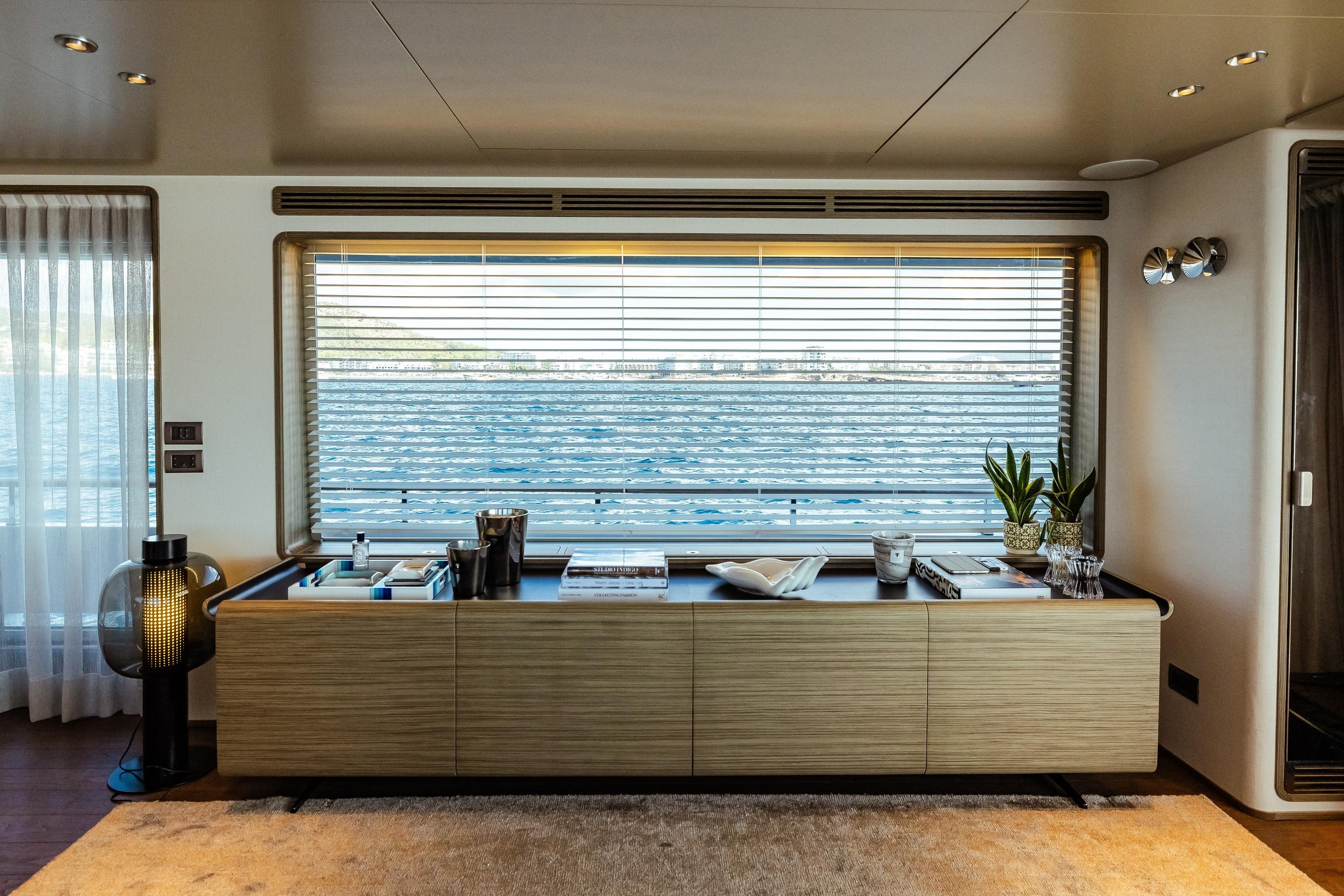 The furnishing solutions – exclusives to this yacht – are an integral part of her aesthetic style. They were tailor-made from natural leather and solid or multi-layer wood using sophisticated artisanal techniques.