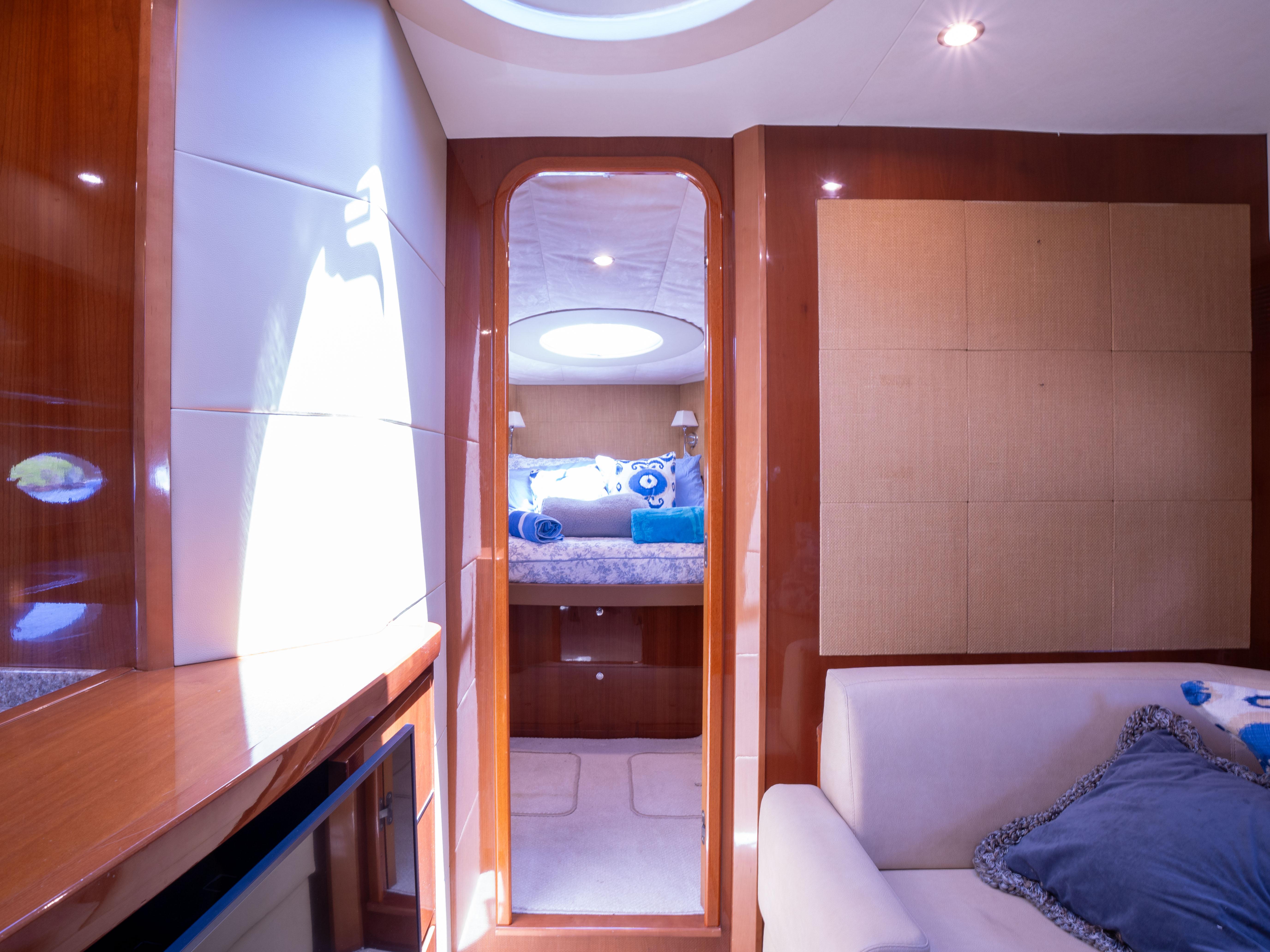- Dinghy stowage garage beneath sunbed, with hydraulic lift system and electric winch for recovery of tender
