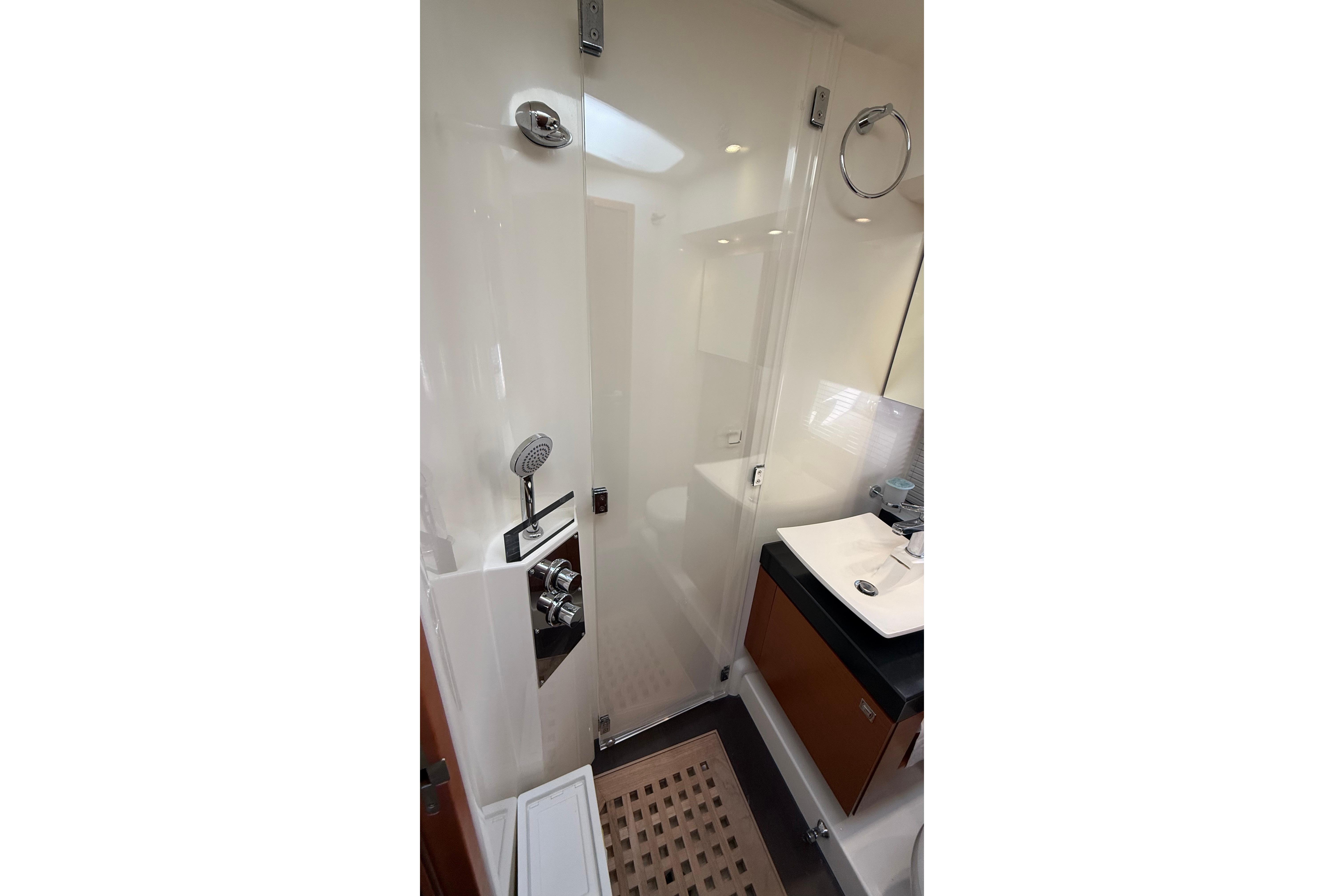 Her full-beam owner's suite is located amidships, featuring large windows, excellent storage, and a spacious bathroom. The VIP cabin forward and the convertible twin cabin to port are equally well designed, making this yacht ideal for family cruising or owner-operator use.
