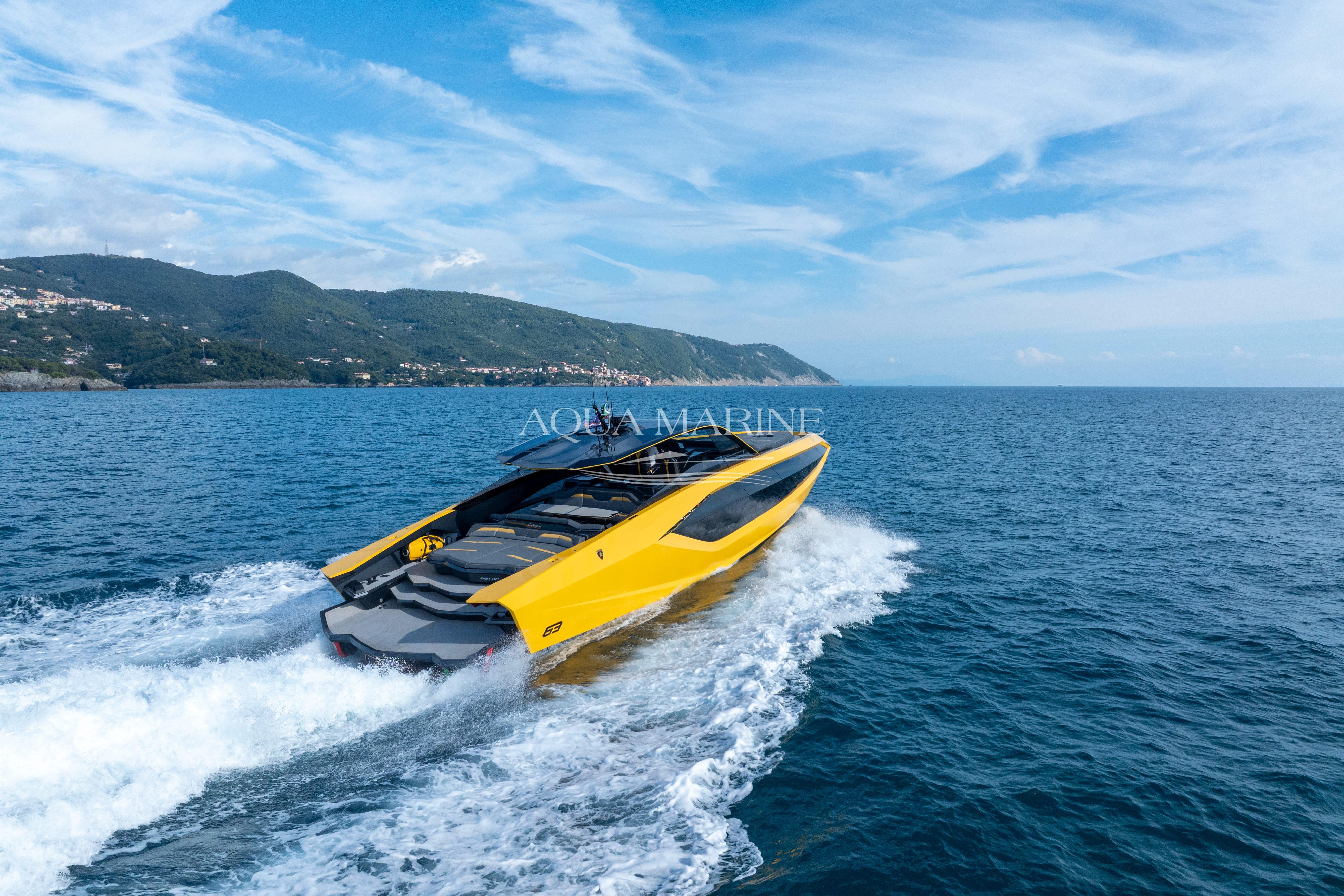 Lamborghini Performance on Water. Delivered in 2023, M/Y FAST TOY is the ultimate fusion of Lamborghini's speed and luxury yachting. Powered by twin MAN V12 – 2000HP engines, it reaches an exhilarating 60 knots, with a lightweight carbon fiber build ensuring agility at just 24 tons for 63 feet.