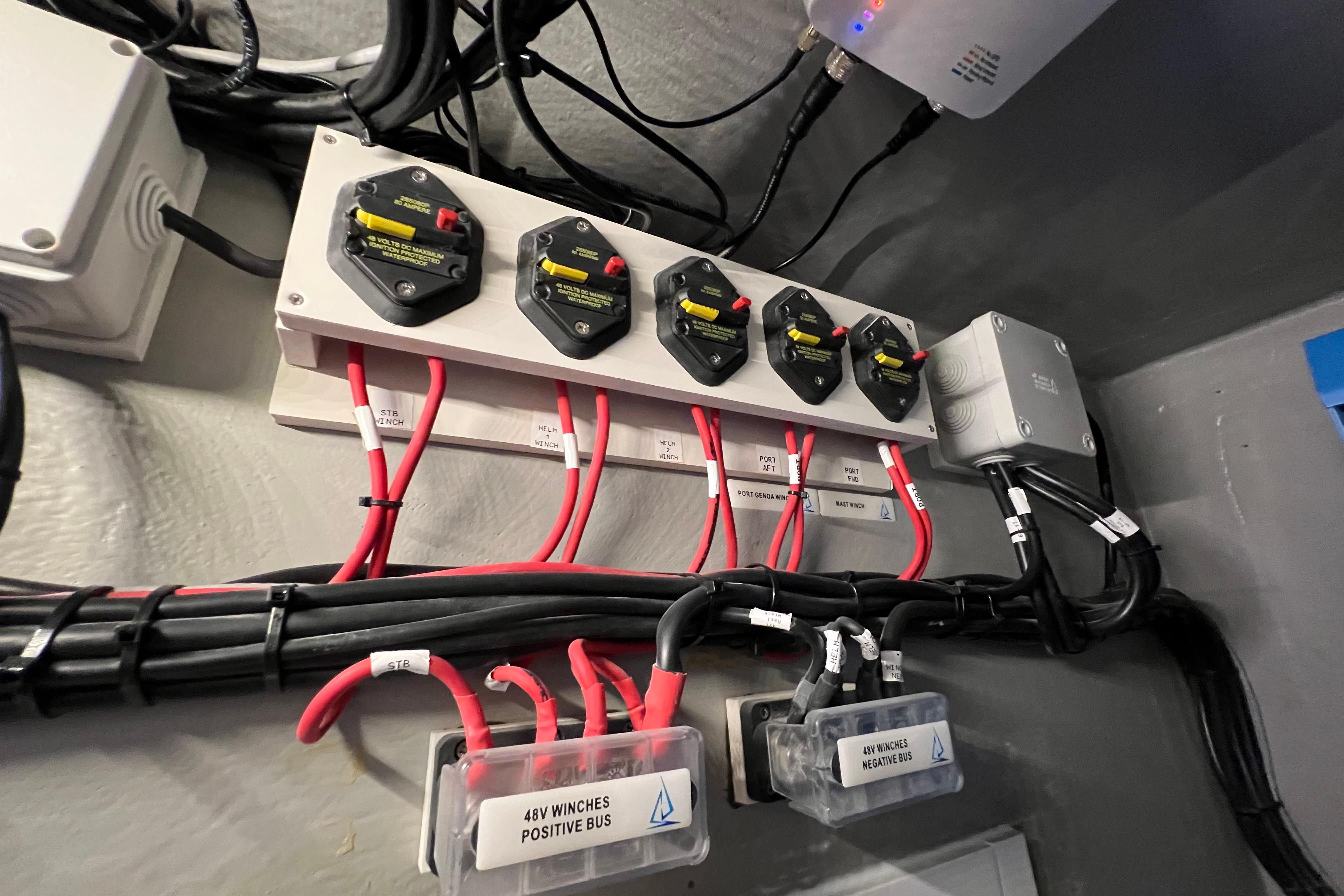 - 2 x Harken 50 48V electric 2 speed winches at helm