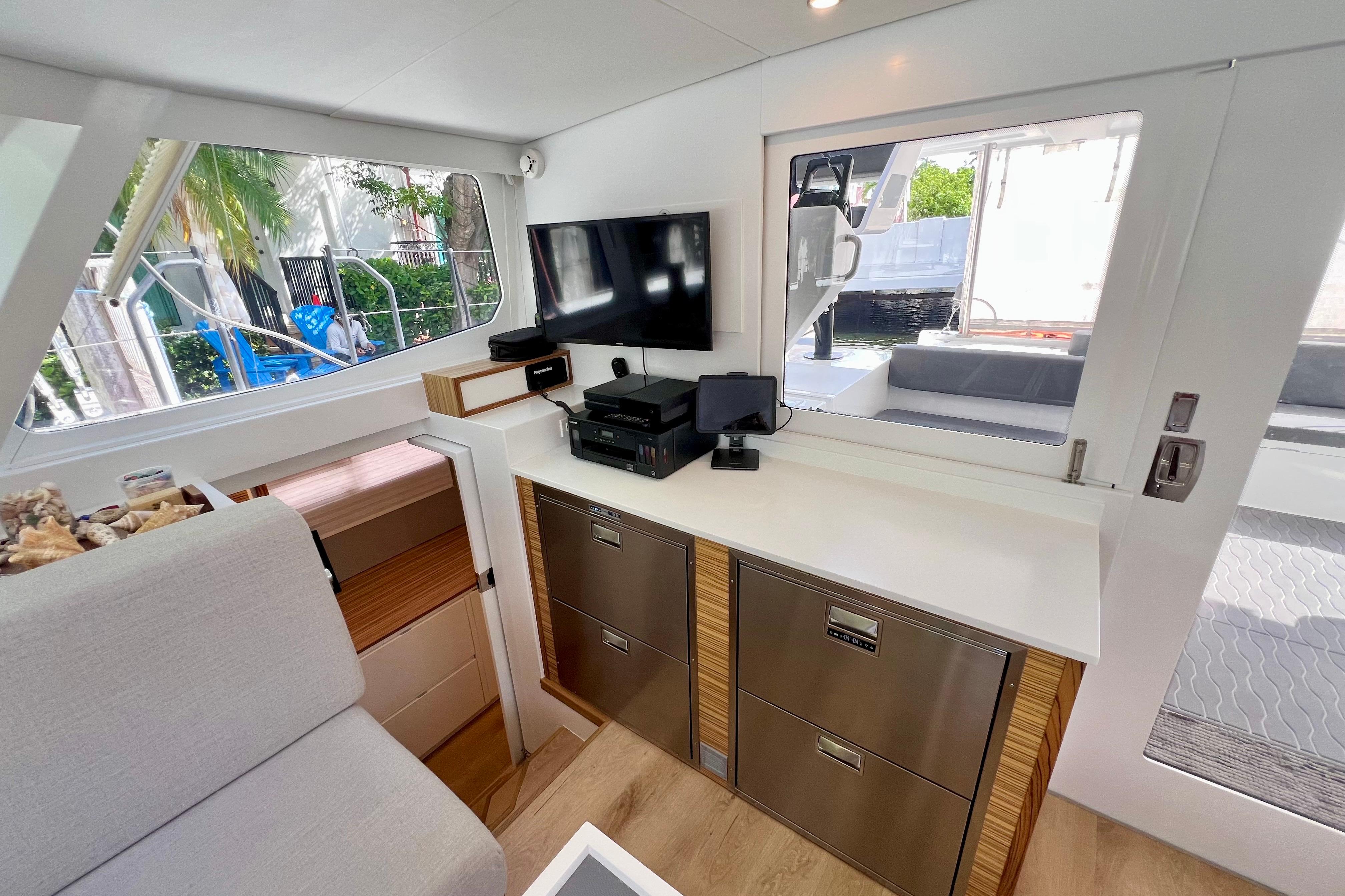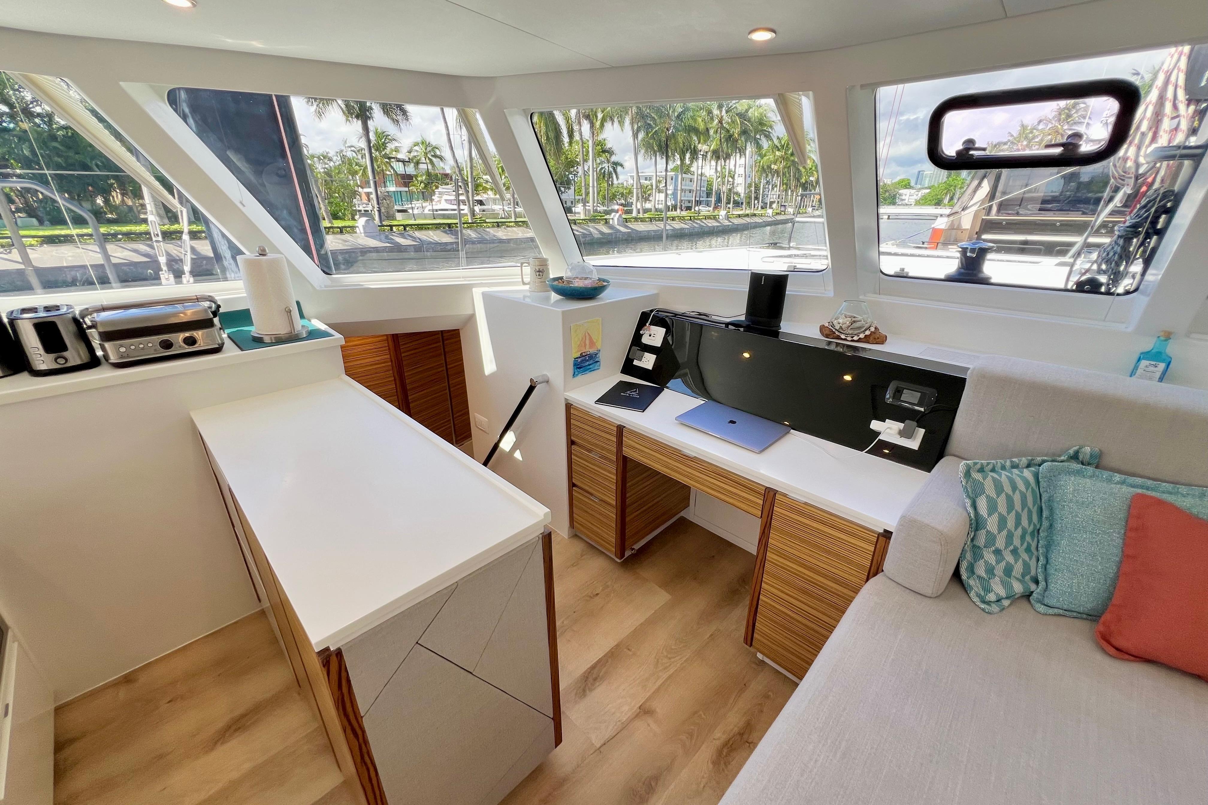 Ke'Ala is a pleasure to move about on whether sailing alone or entertaining friends and family. Her ample payload capacity means there is a place to store everything on the 482. Seating and lounge areas are strategically located throughout the cockpit and accommodation areas to ensure a fantastic hosting platform. With the innovative Balance VersaHelm - the helm station swings up and down with ease which revolutionized all weather sailing. You can pilot her up top in the sunshine and breeze or swing the helm down for full foul weather protection in the comfort of the cockpit - both positions offer unobstructed 360 degree visibility and comfortable seating.