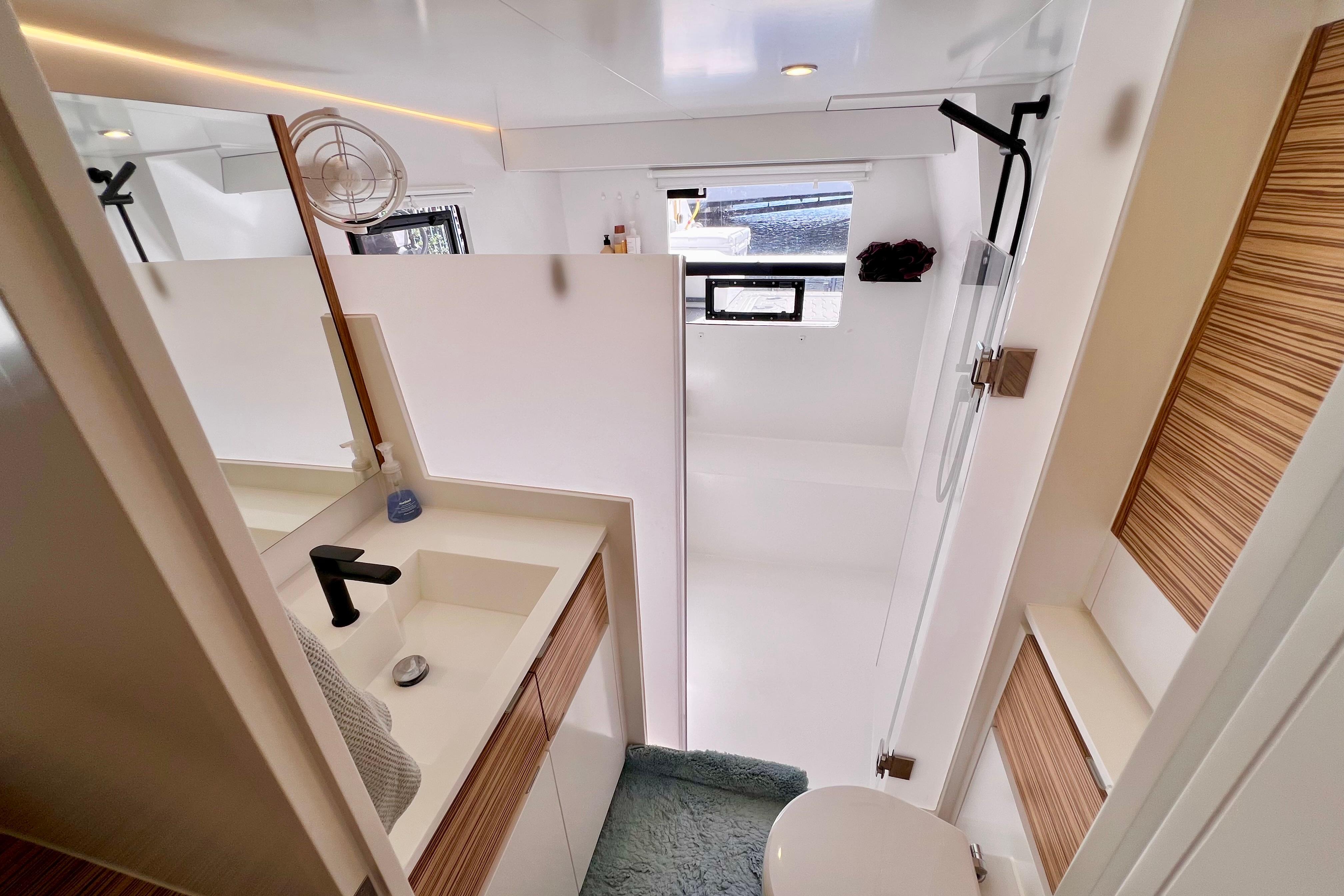 Balance Catamarans are well known for their stunning designs, exceptional build quality, and gorgeous fit and finish. They feature industry leading technology such as their signature VersaHelm steering system, Integrel charging technology, carbon fiber reinforced daggerboards, Ullman ASDL tri-radial laminate sails, state-of-the-art electronics suites, etc. The build process for these fantastic vessels incorporates Balance’s “Carbon Cross” design and construction techniques which utilizes E-glass fiberglass with significant Carbon Fiber reinforcement in the high load areas of the hulls and decks. Every Balance 482 is hand laminated and vacuum bagged with vinylester outer skin resin over closed cell foam cores. The end result is a lightweight, stiff, and robust vessel built for world voyaging.