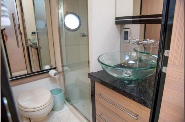 - Storage drawers: (2) under berth, designer stainless steel handles