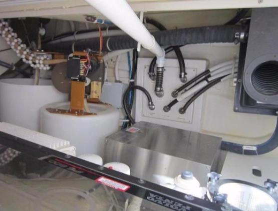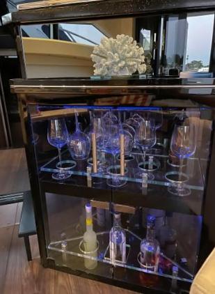 - Wet bar: port side, standard with sink, ice maker. refrigerator and storage cabinet below; polished stainless steel covers for sink and BBQ grill