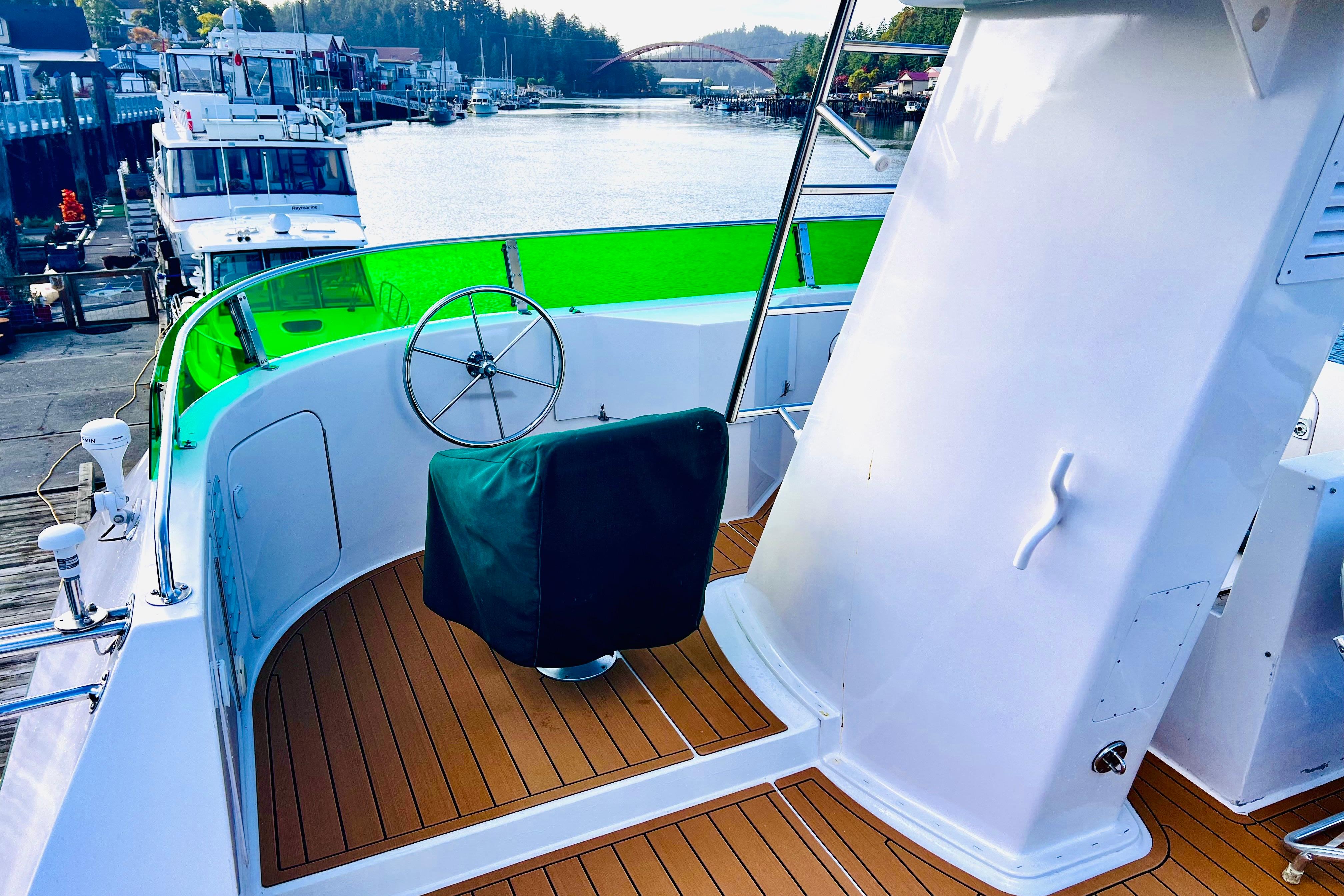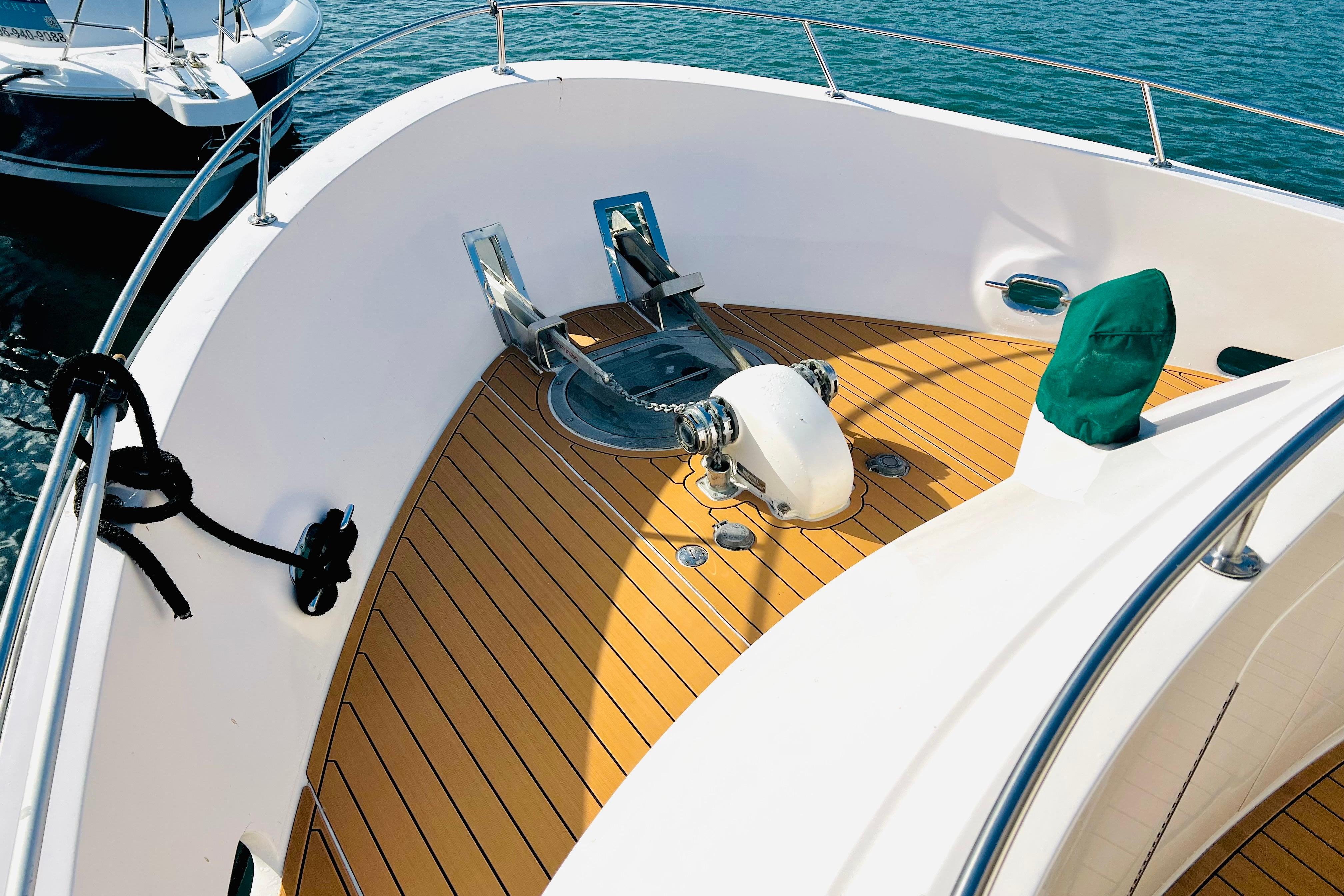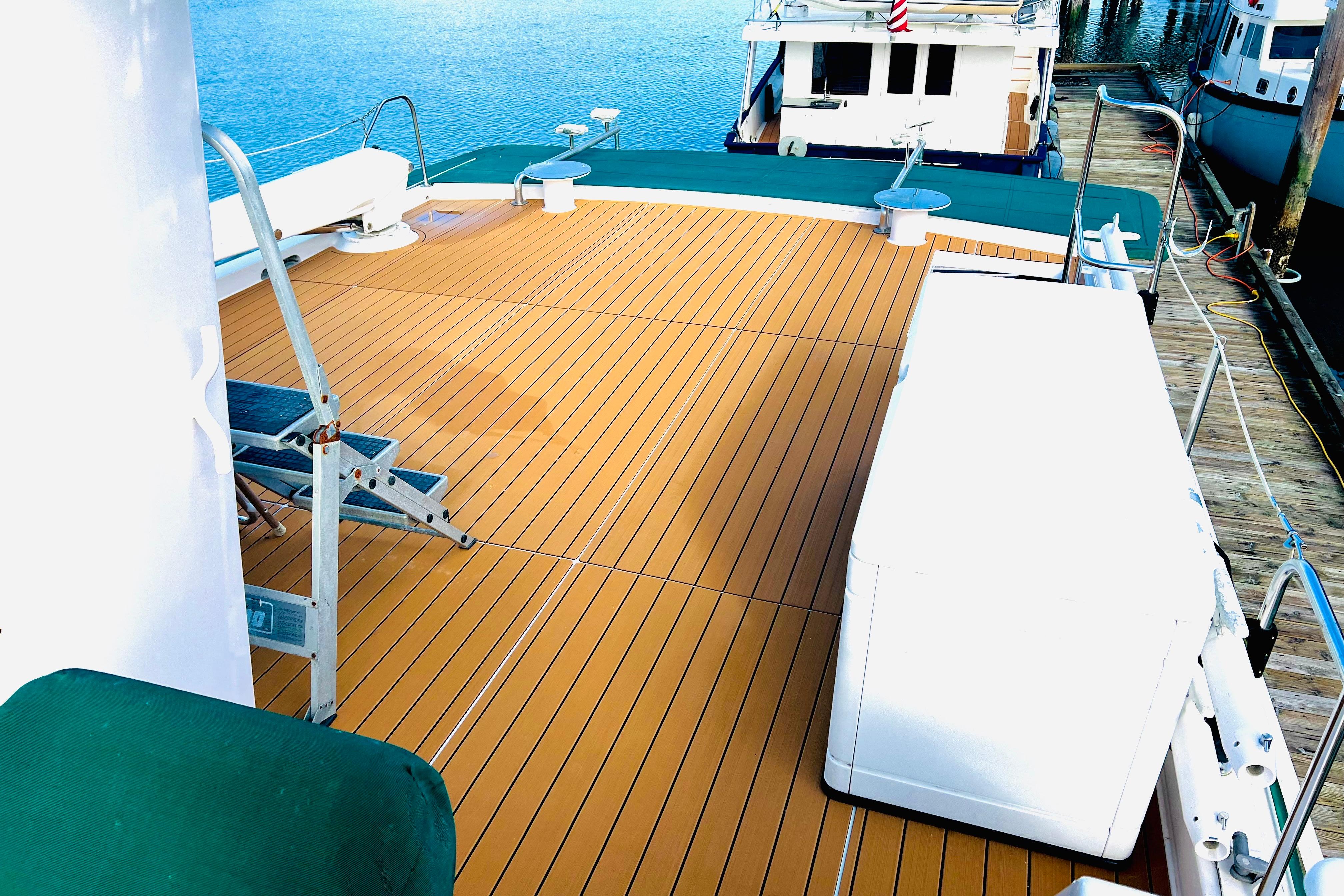 - Large boat deck aft of the flybridge that accepts the 12’ tender.