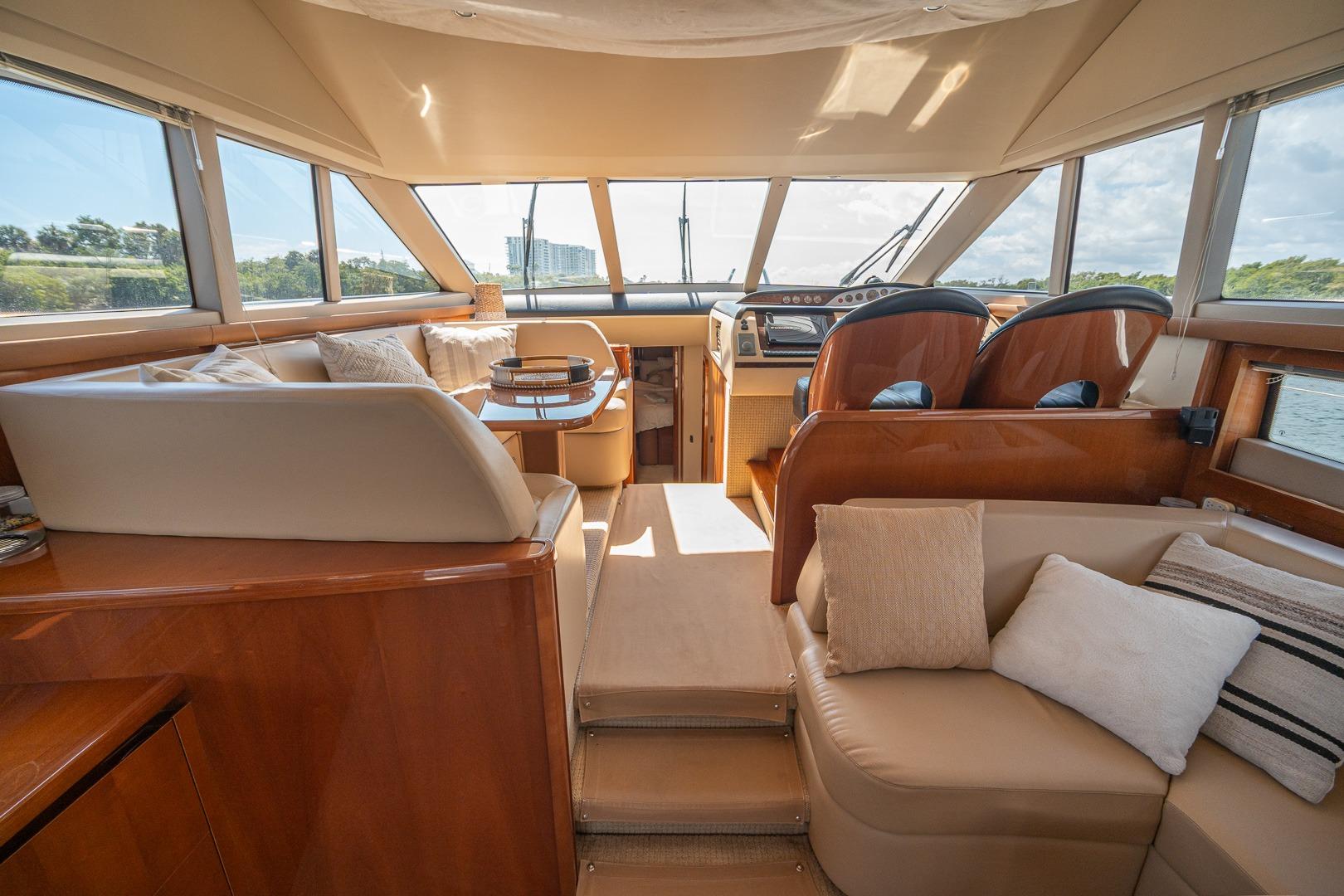 - Integral stairway to flybridge with teak treads