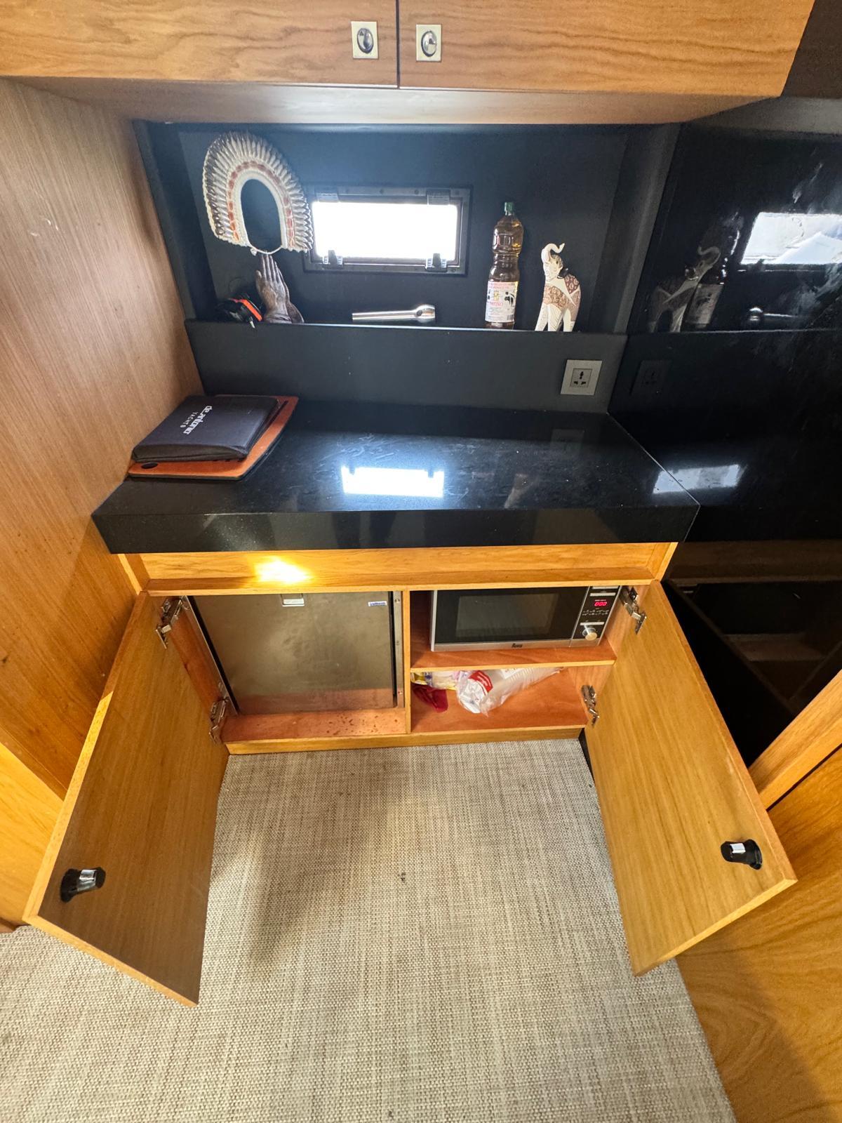 Cocina con fregadero, frigorífico y microondas