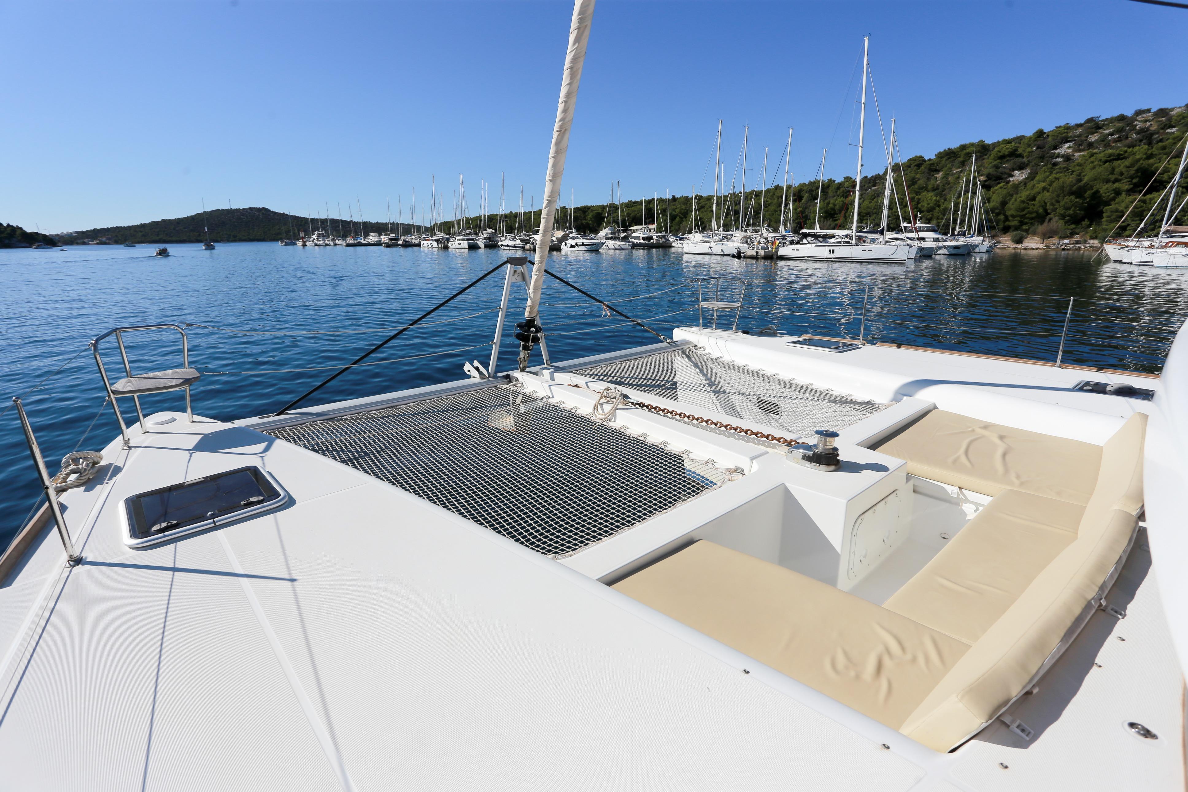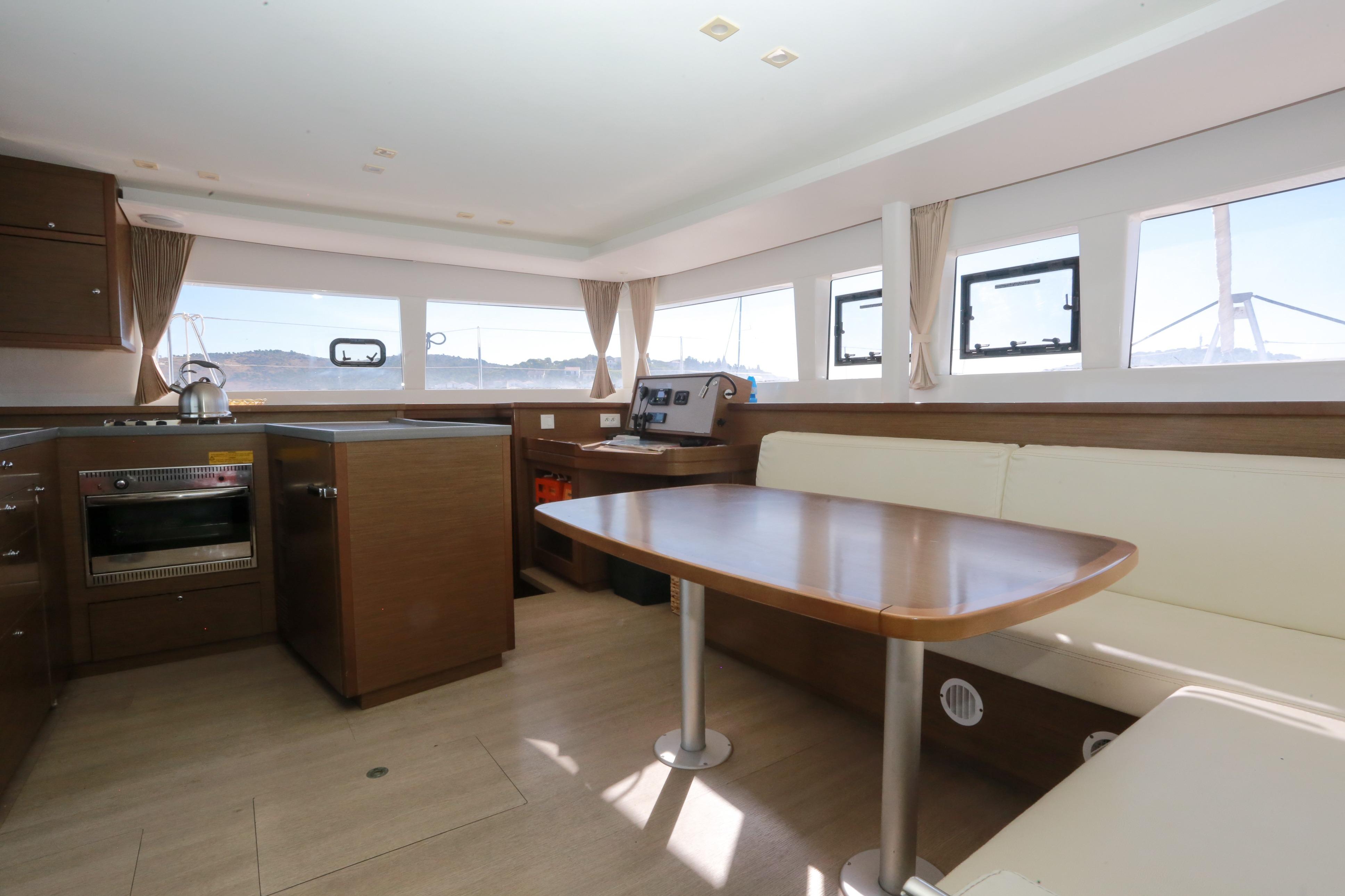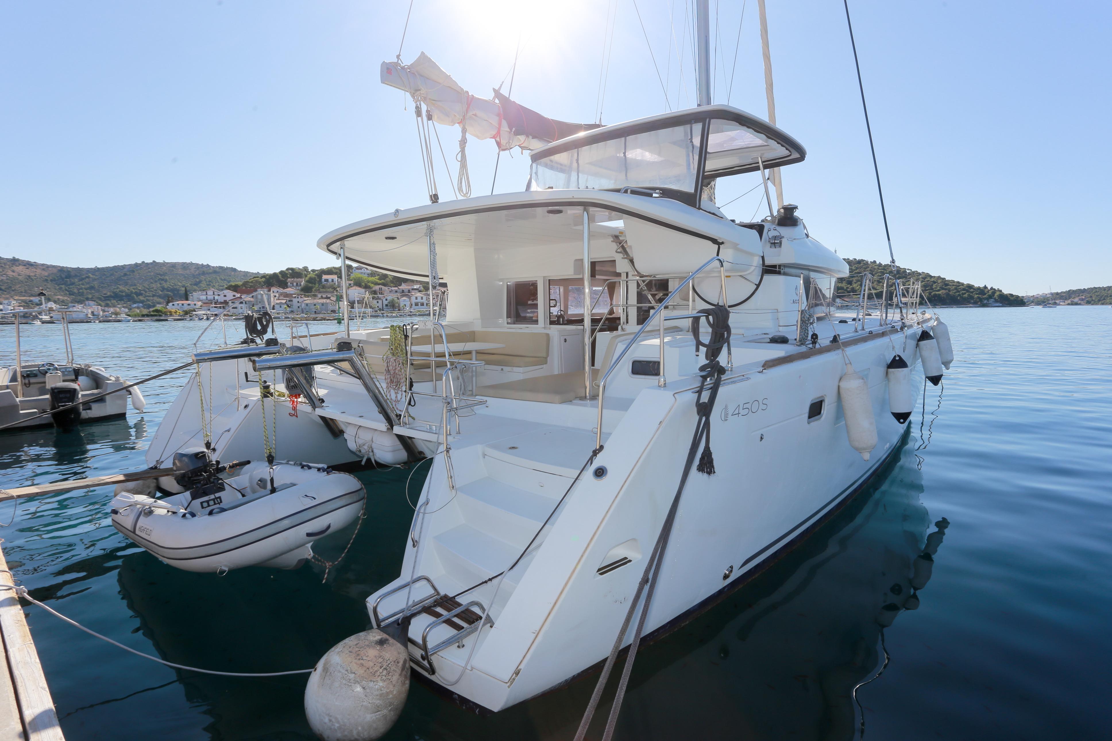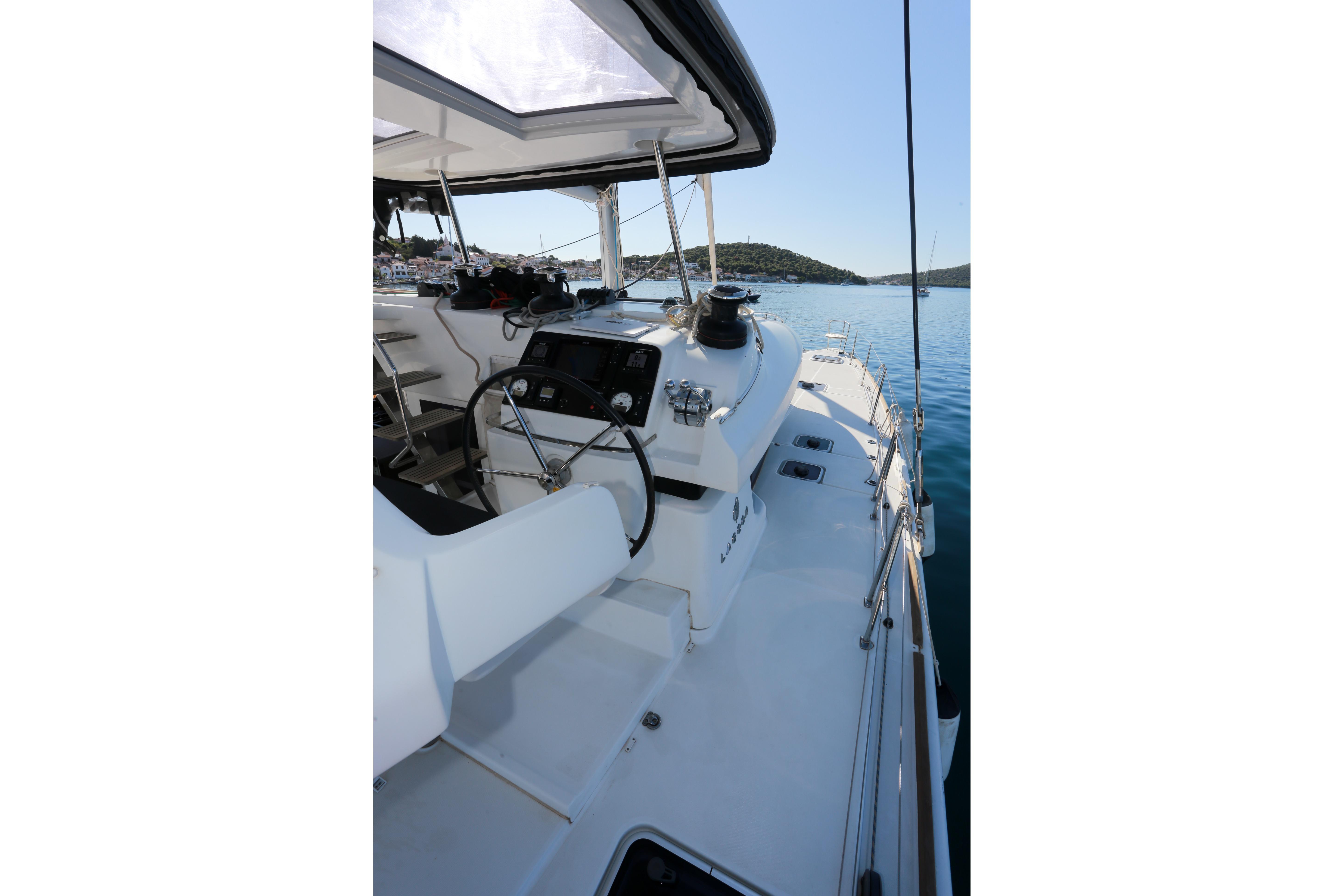 The SporTop version of the 450 allows boaters who wish to enjoy the comfort of a catamaran of 45 feet in a more conventional version, with a helm post on bulkhead in place of the flybridge.