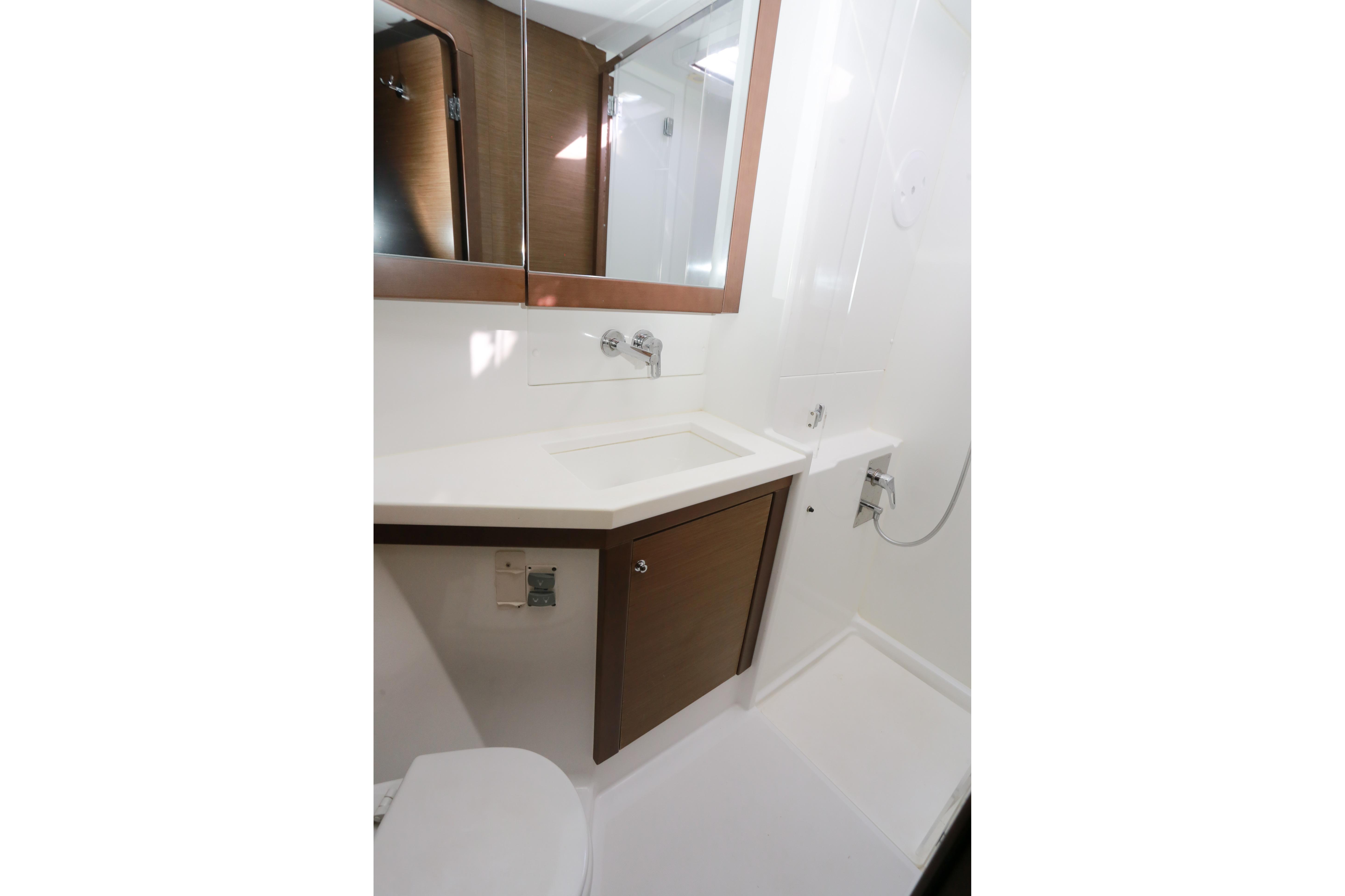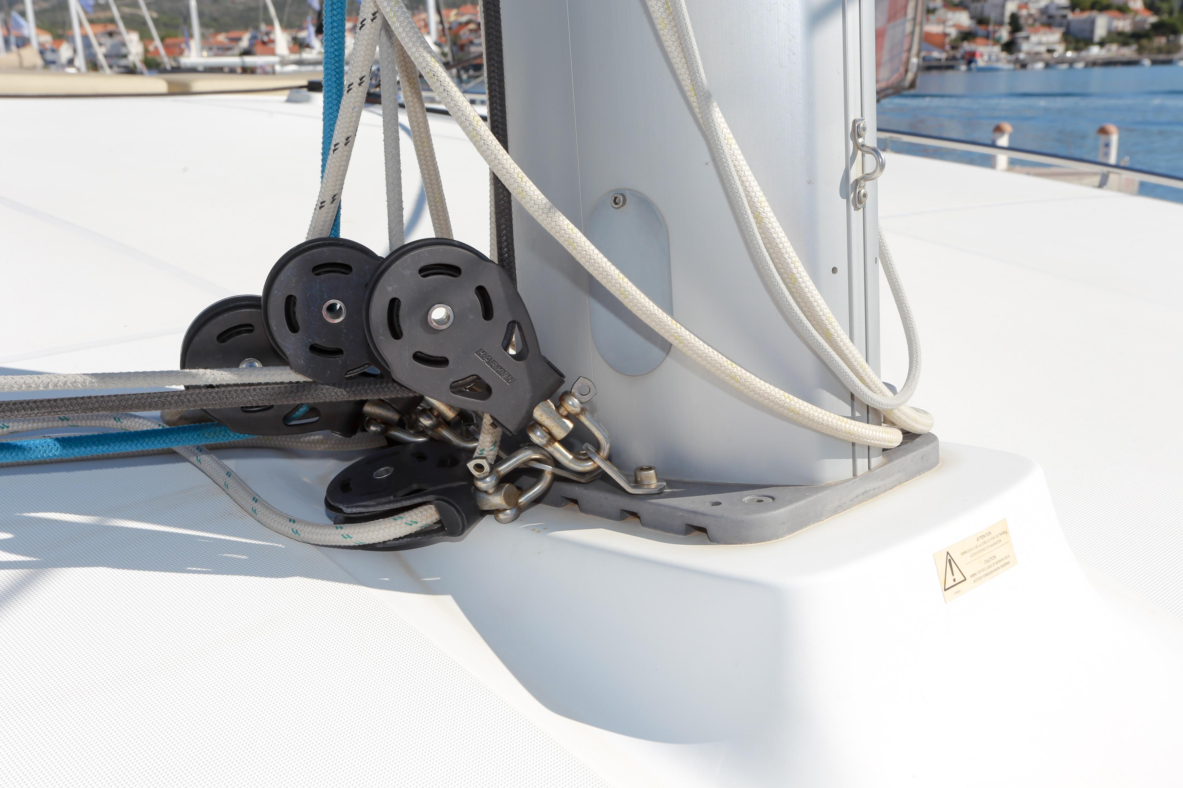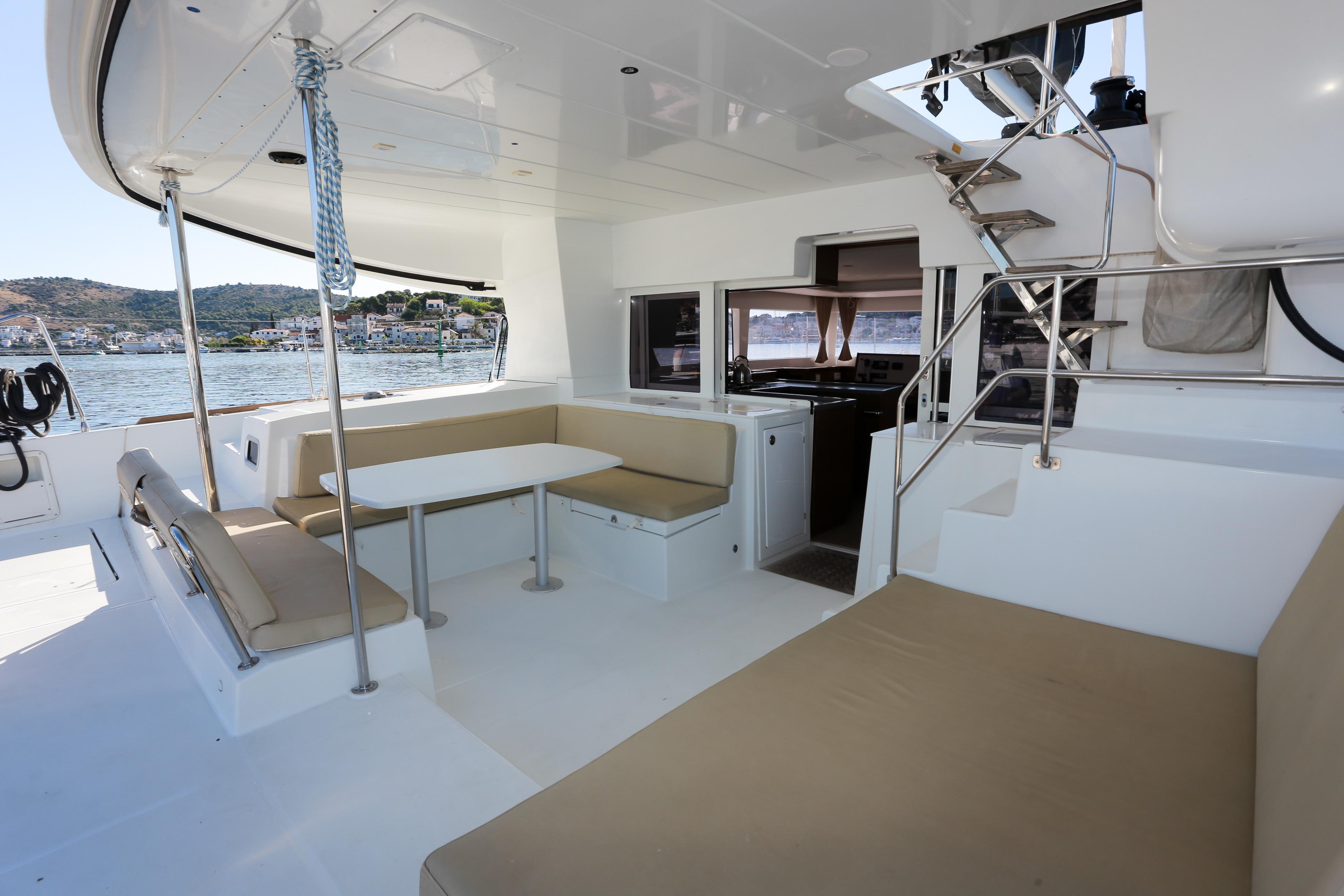 The SporTop version of the 450 allows boaters who wish to enjoy the comfort of a catamaran of 45 feet in a more conventional version, with a helm post on bulkhead in place of the flybridge.
