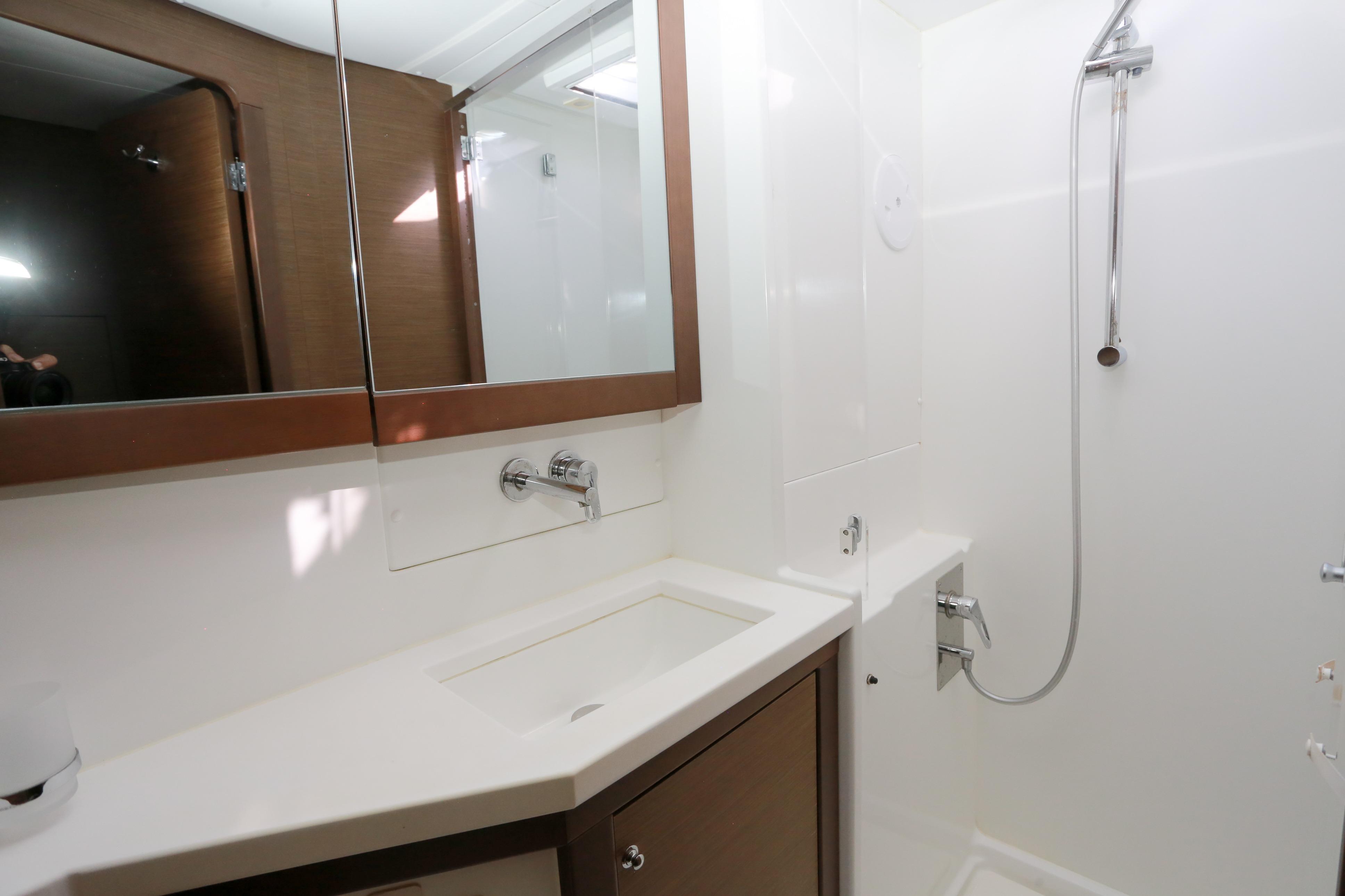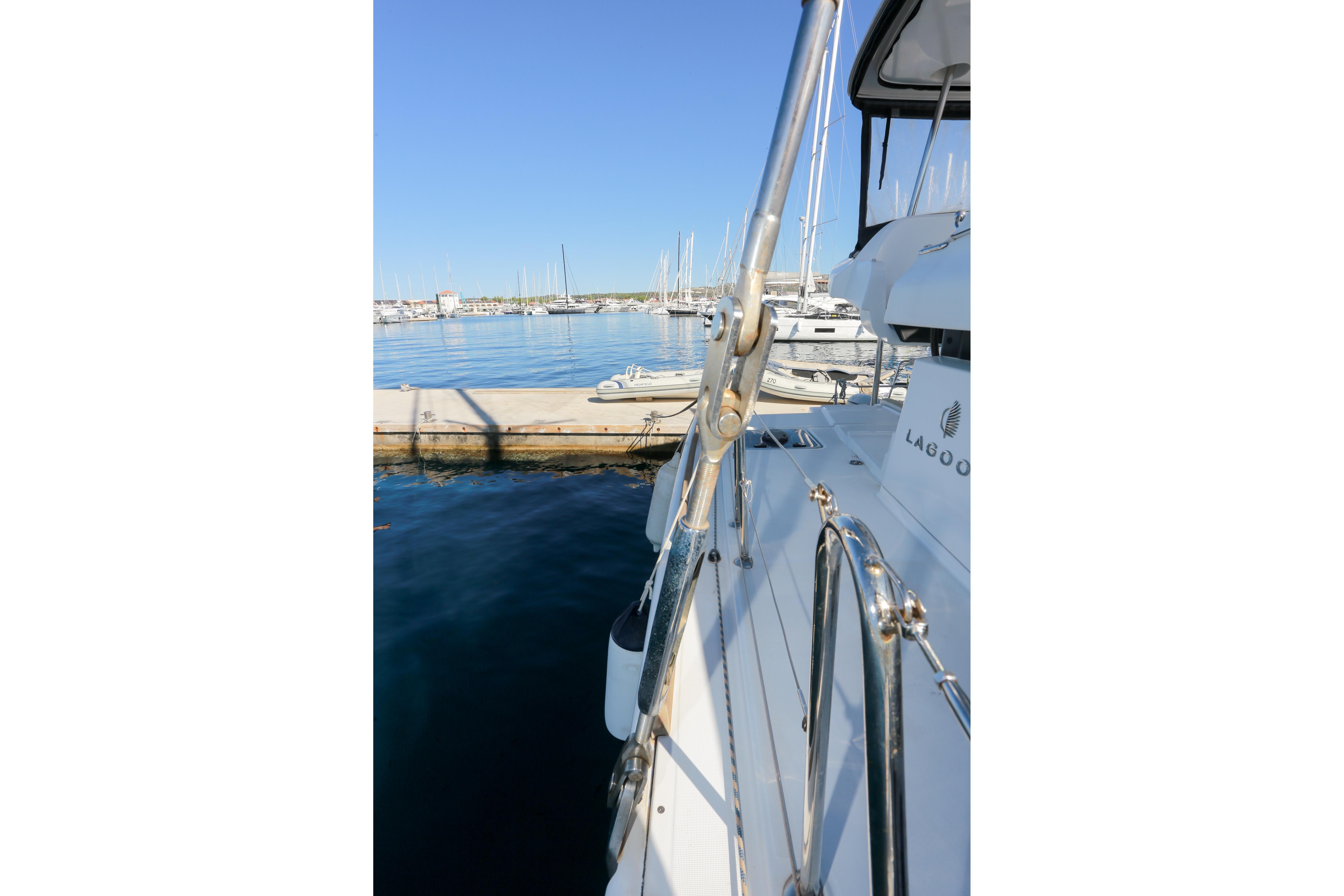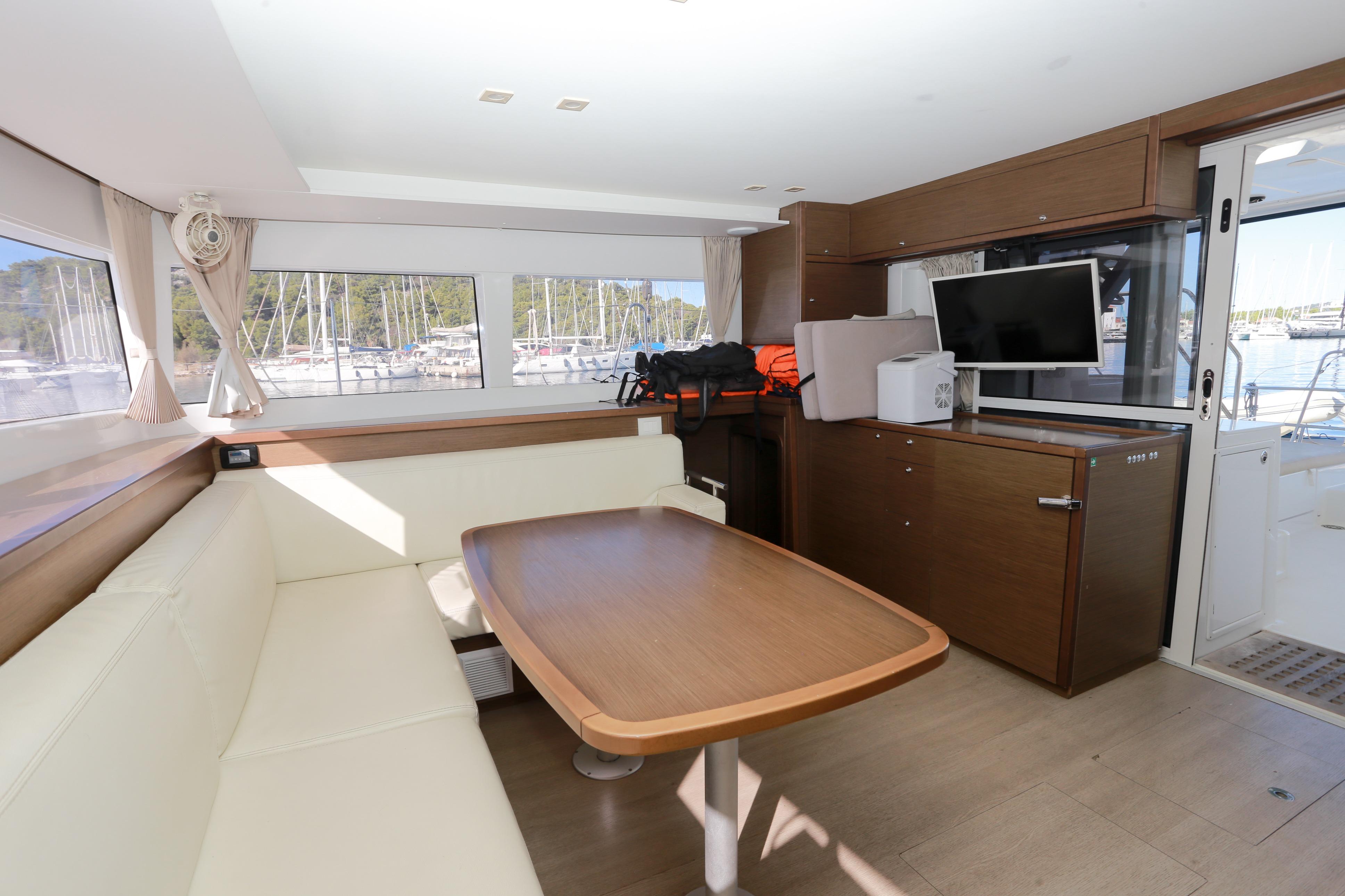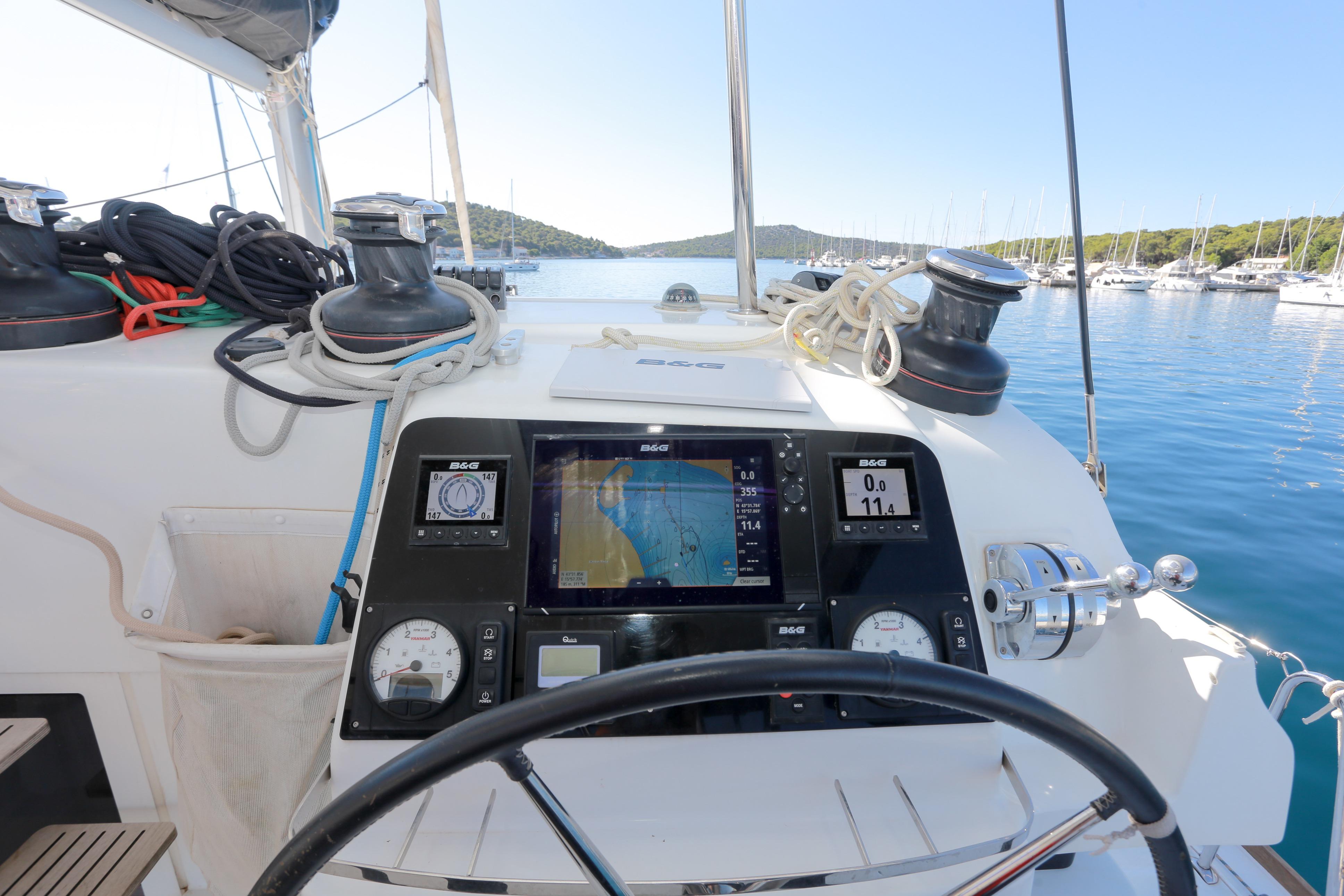 The SporTop version of the 450 allows boaters who wish to enjoy the comfort of a catamaran of 45 feet in a more conventional version, with a helm post on bulkhead in place of the flybridge.