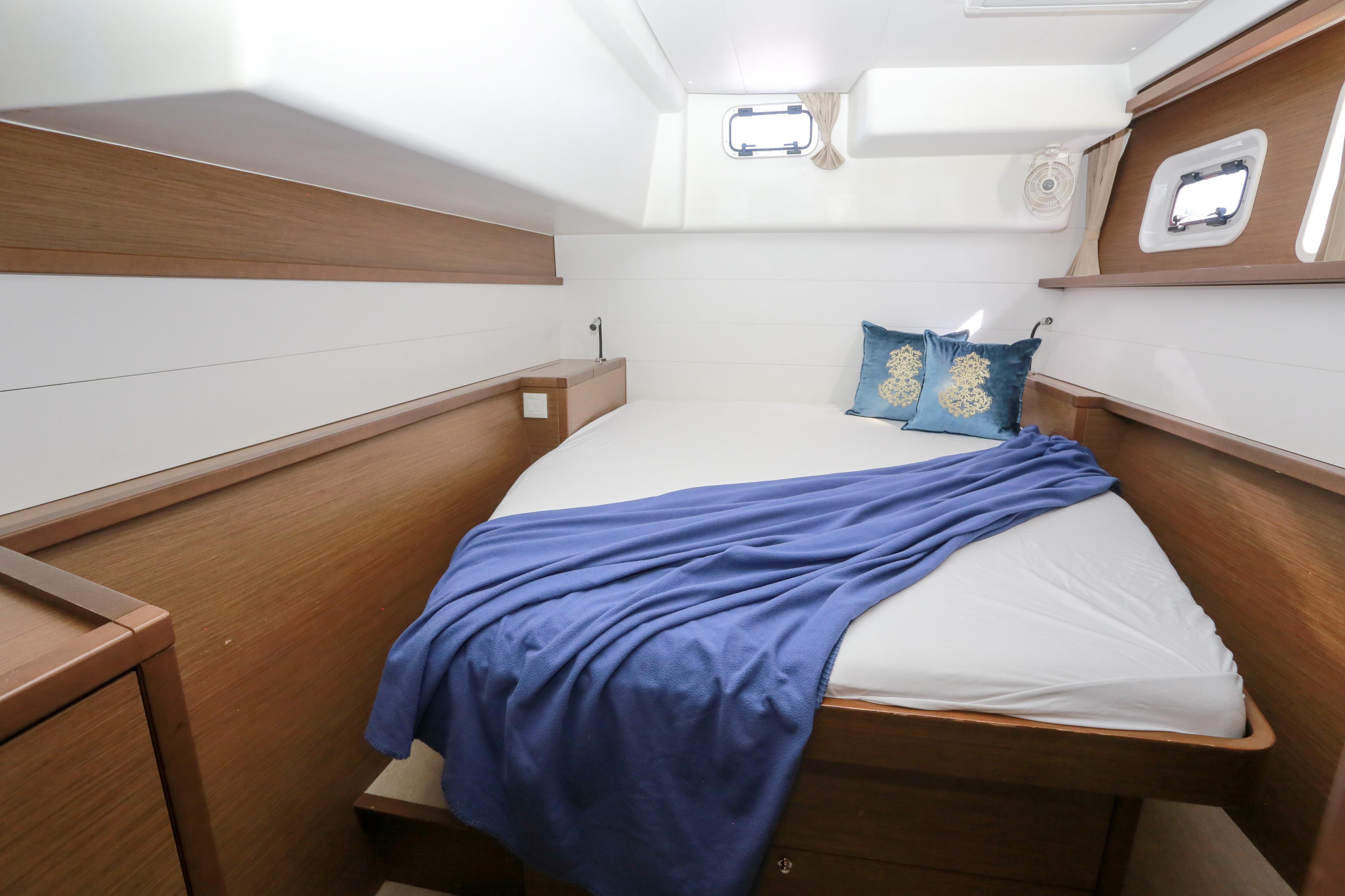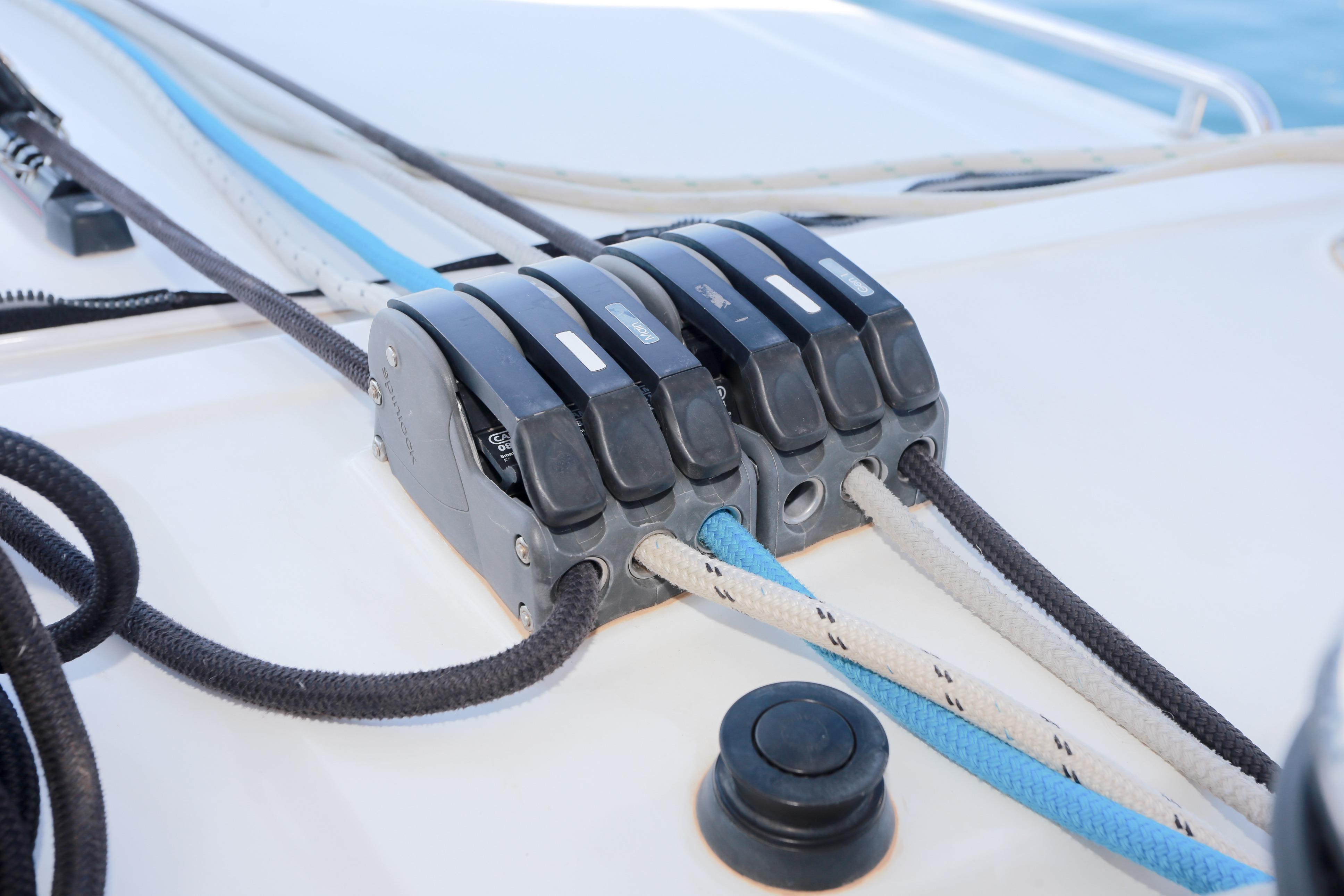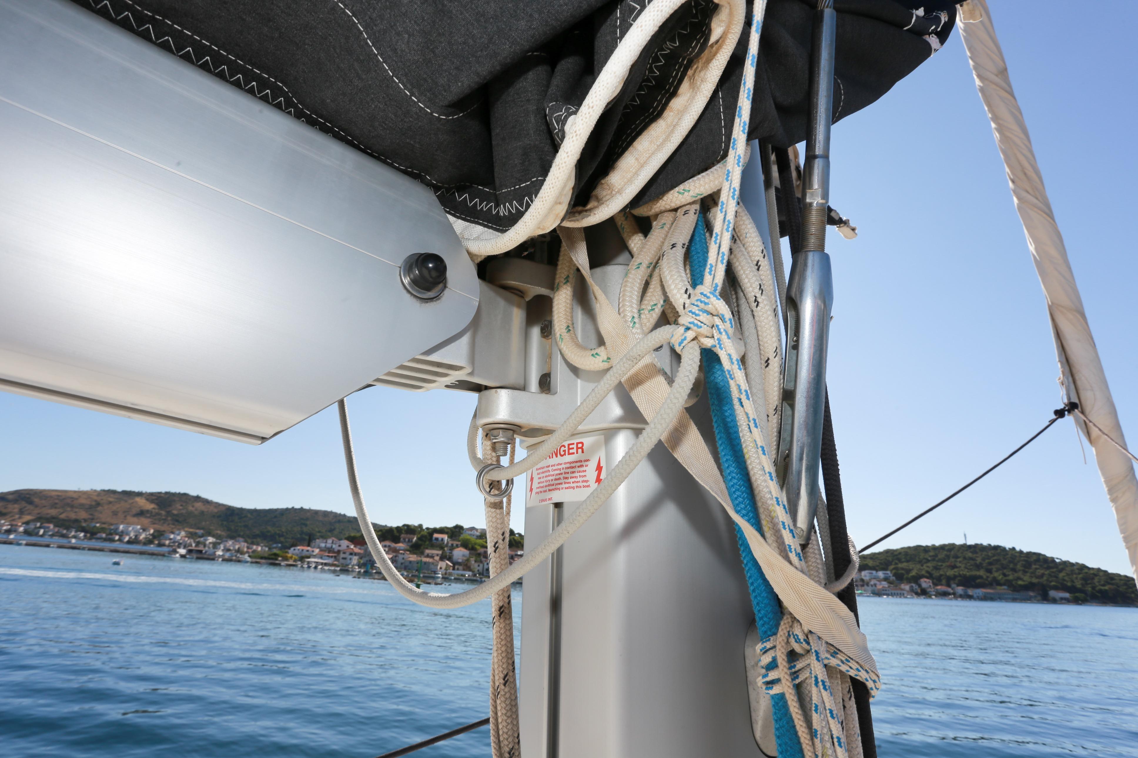 The cabin-top design creates a more elegant and punchier roof outline a large sunbathing area on the cabintop the sail areas are the same with the FlyBridge version. However, the lower mast and boom: