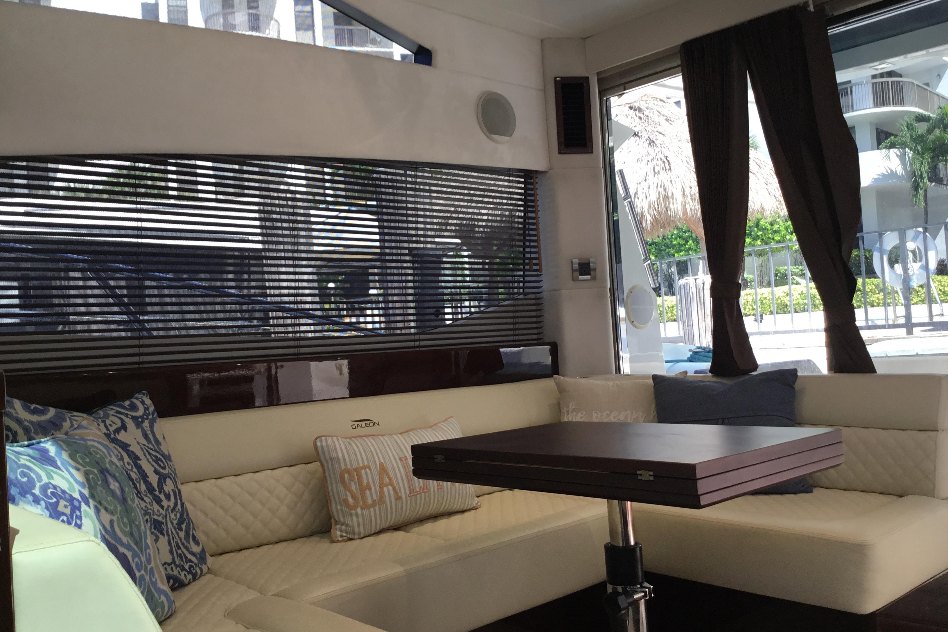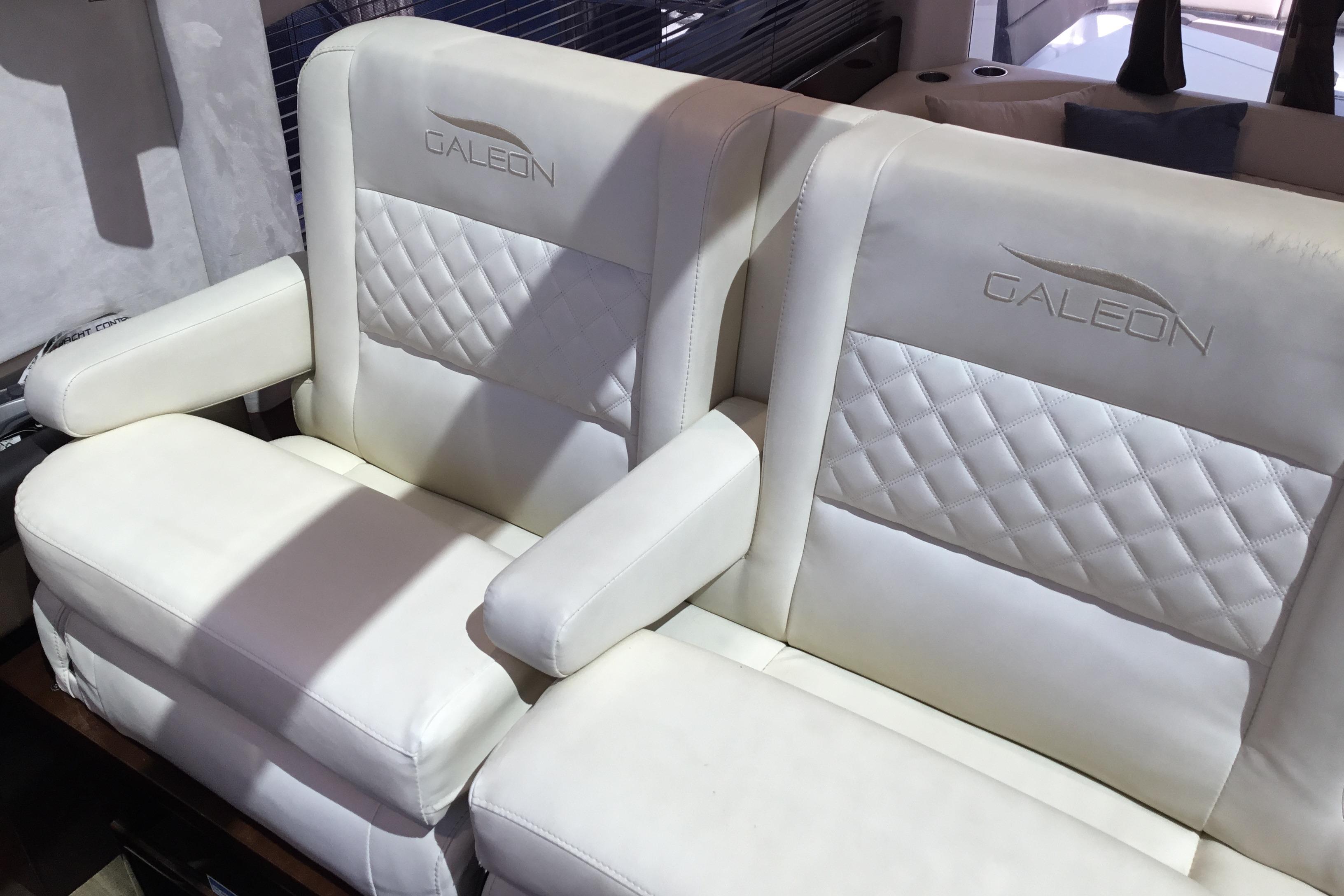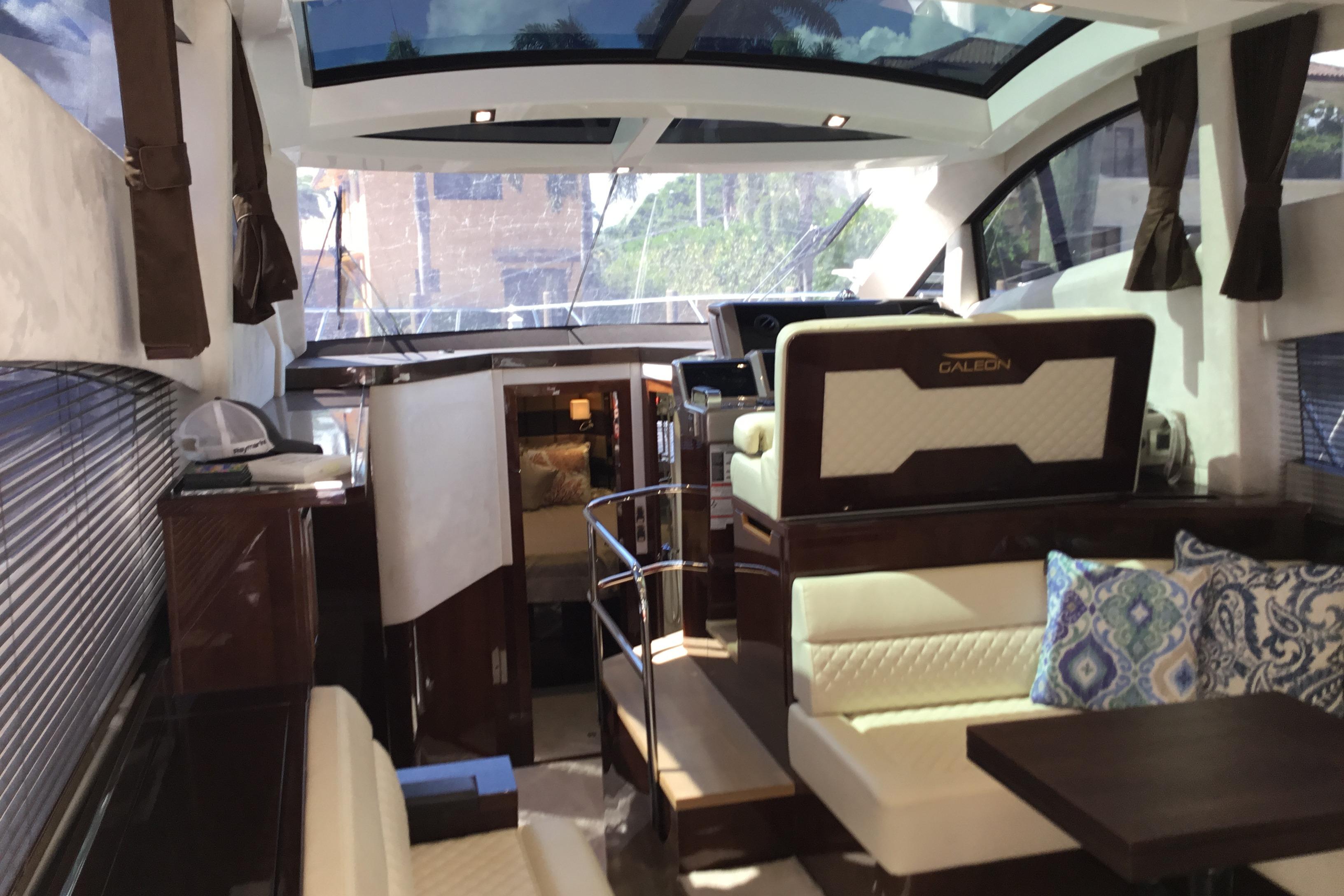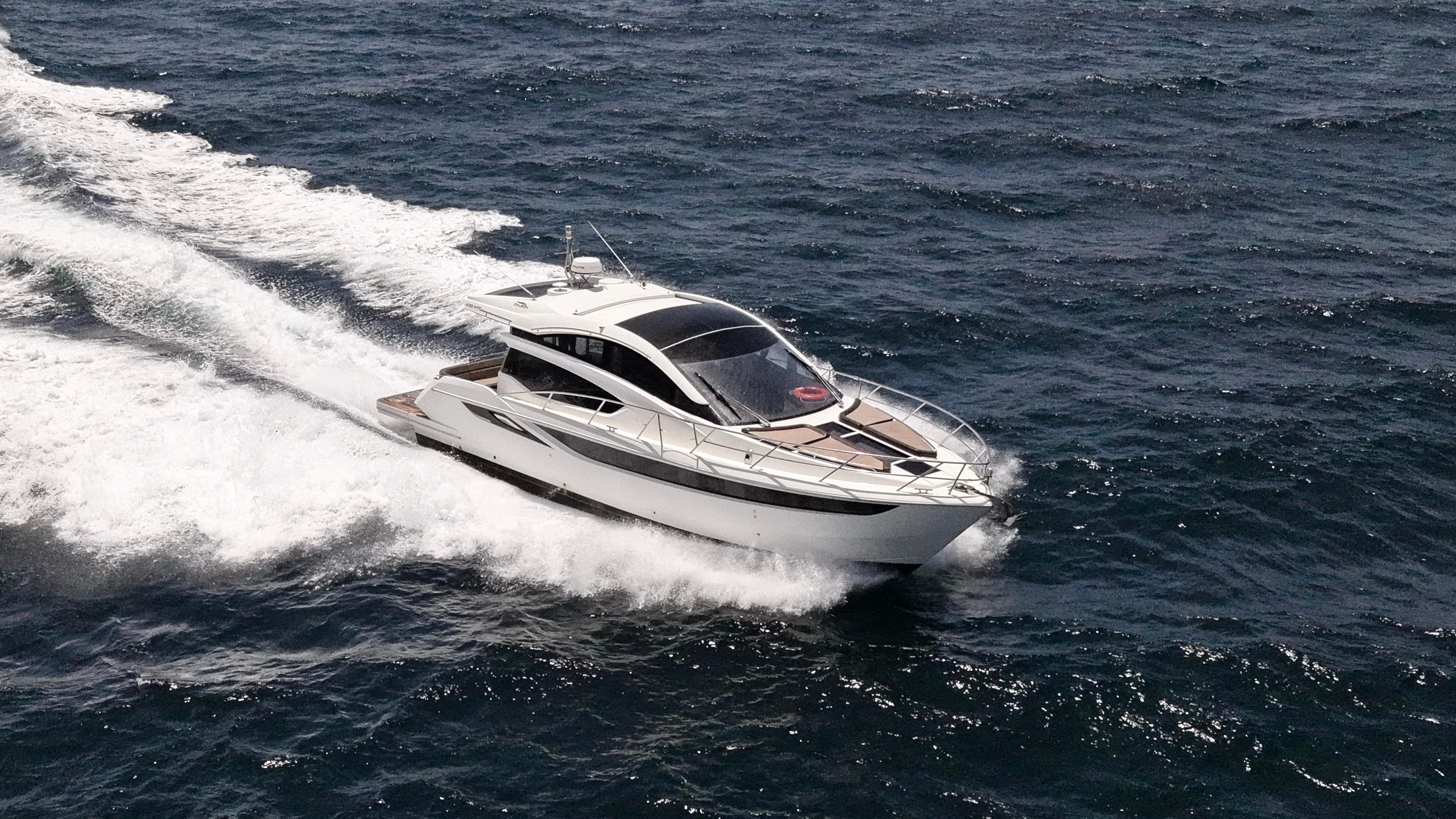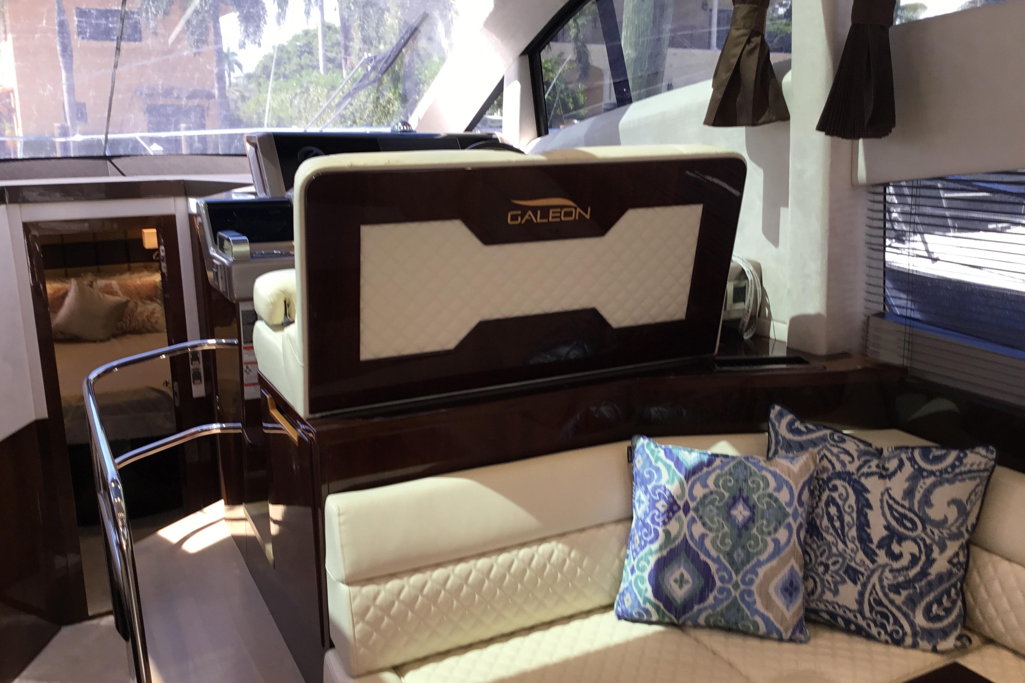 Galeon extended and refreshed its mid-range segment with a hardtop variant of the acclaimed 420 FLY. The main focus of the design was to flawlessly integrate a bright and welcoming interior with the sporty and dynamic character of the 430. The forward-facing glass roof effortlessly slides back yet is quick to close if the weather gets harsh.