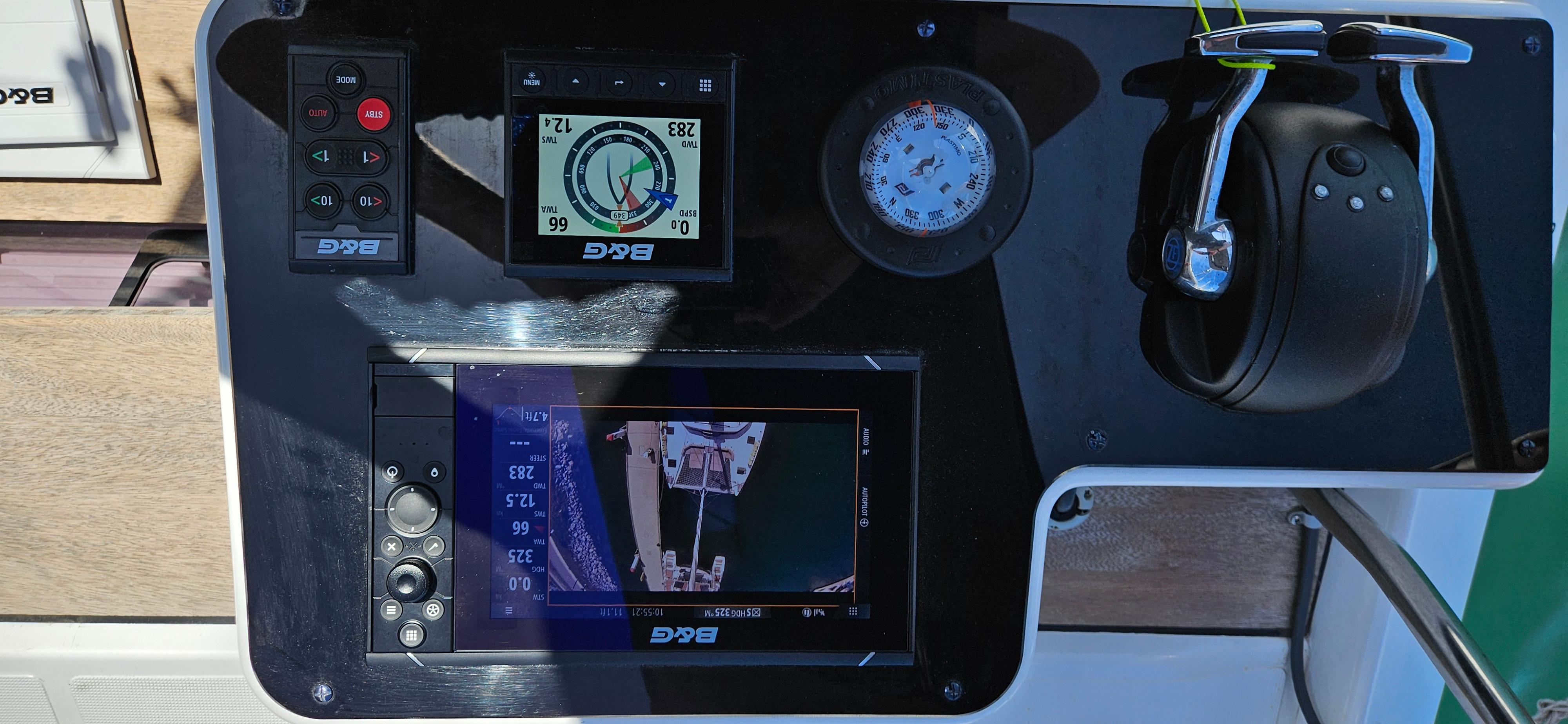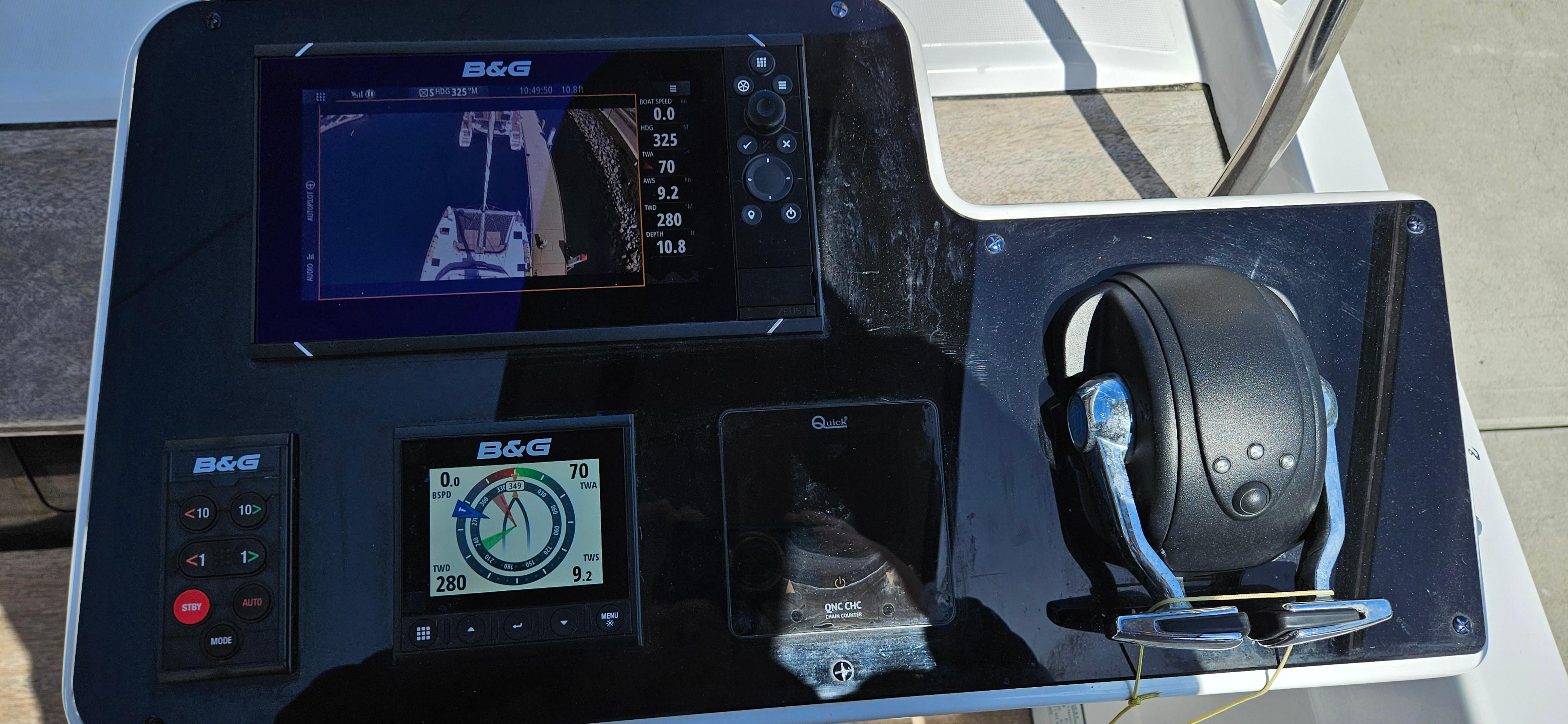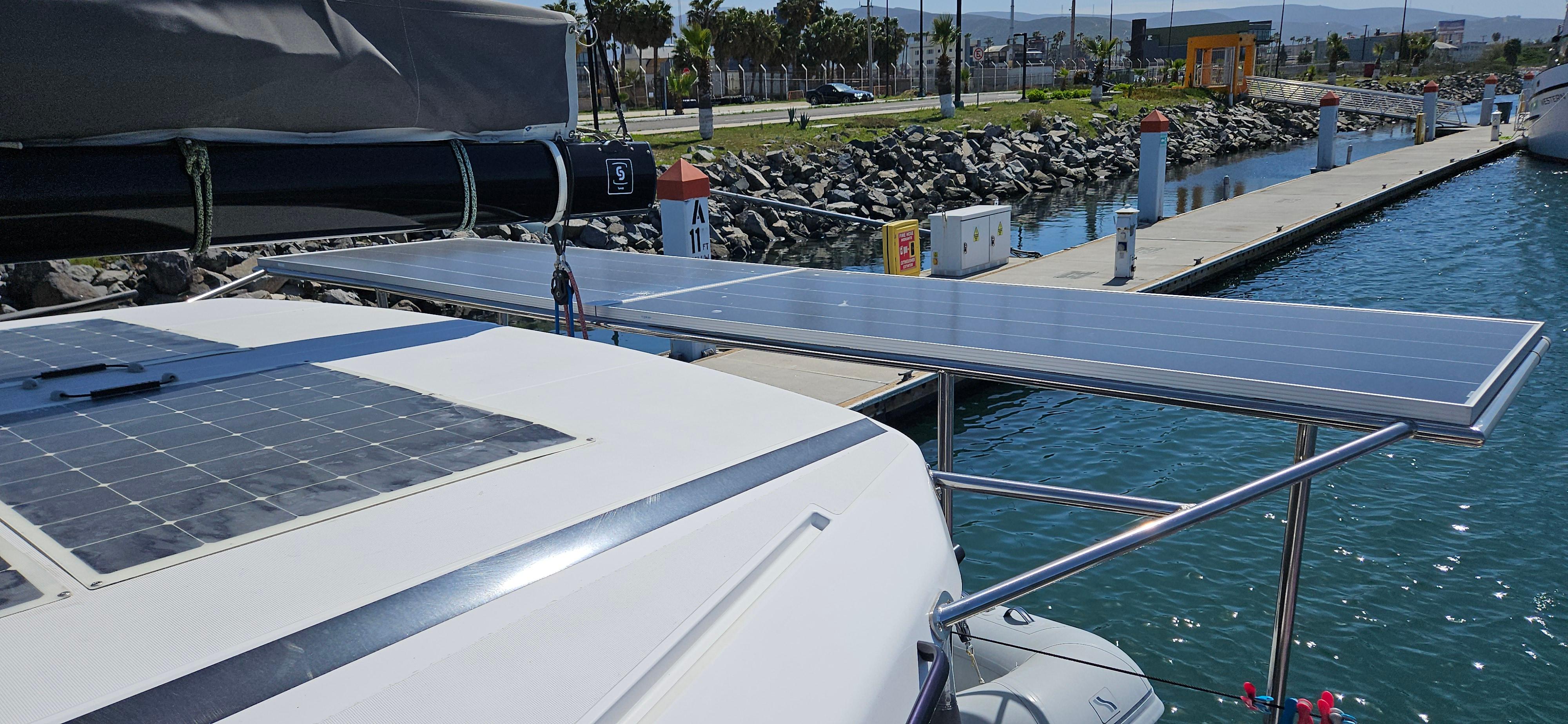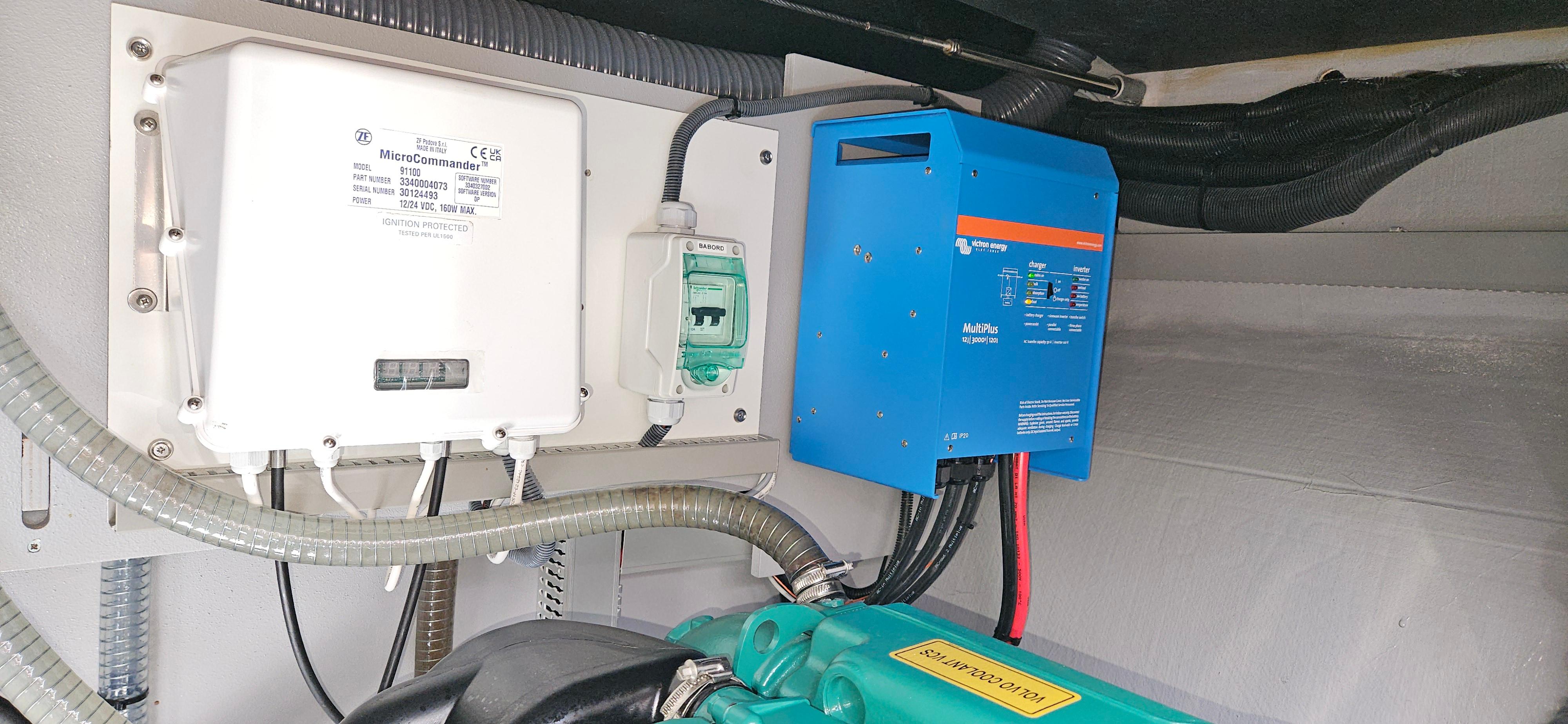 Each helm has been upgraded to have all controls at your ready. The vessel has a custom solar tower built over the dinghy davit and on the house, providing tons of power for the vessel. She also has a generator to top off the systems when needed. She has a water maker for staying off grid as well as a washer/dryer combo unit built to Euro specs that provides enough power to actually dry your cloths.