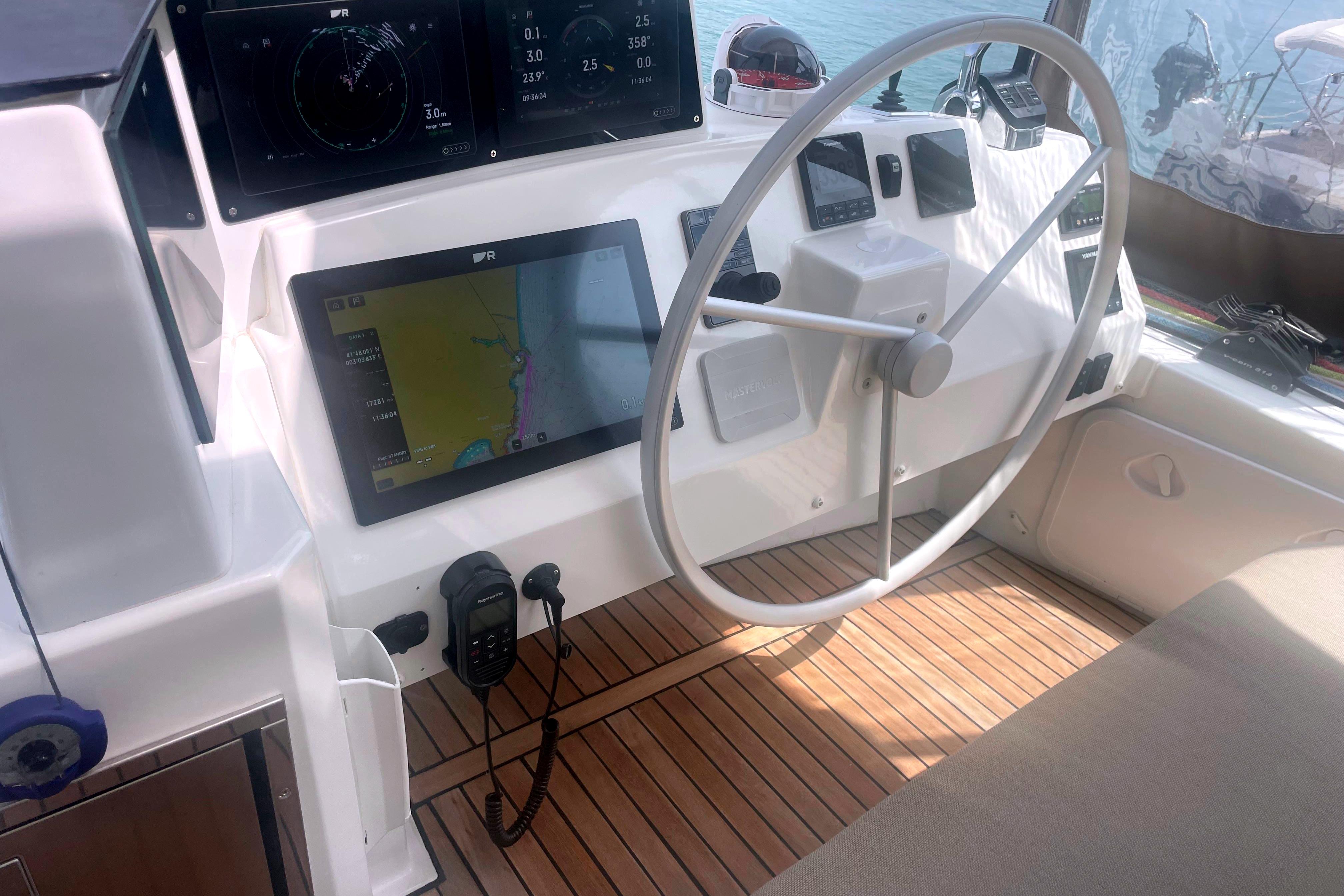 Extensive navigation suite: Raymarine AXIOM2 XL, radar, sonar, AIS