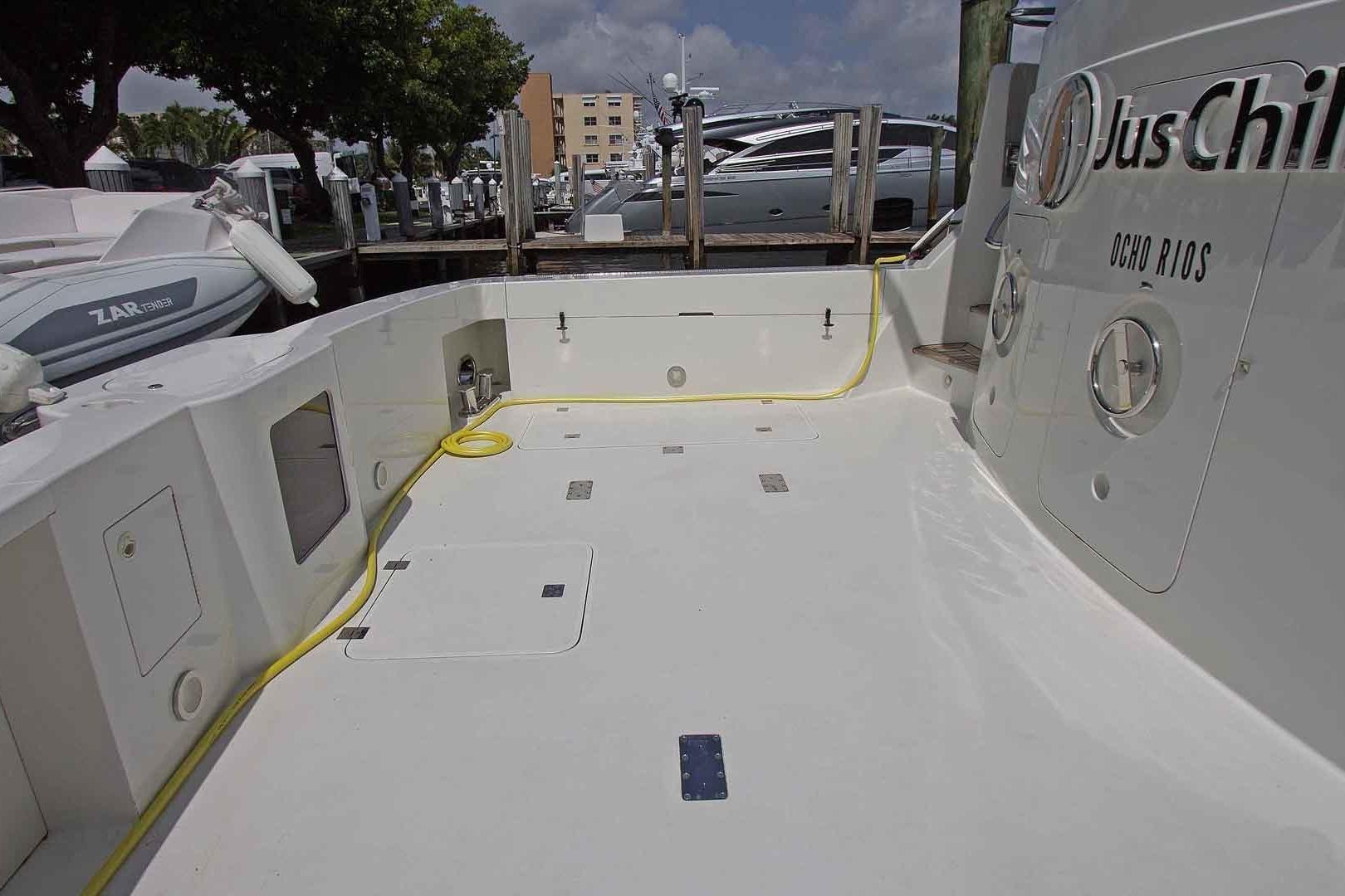 Starting aft on the transom you'll find the TNT lift which holds a 15' ZAR tender with 90HP outboard. The spacious factory built cockpit has an aquarium style livewell, chilled storage, and a prep station. This area can be shaded by adding a canopy and really compliment this space and close to the water for swimming and boating activities .