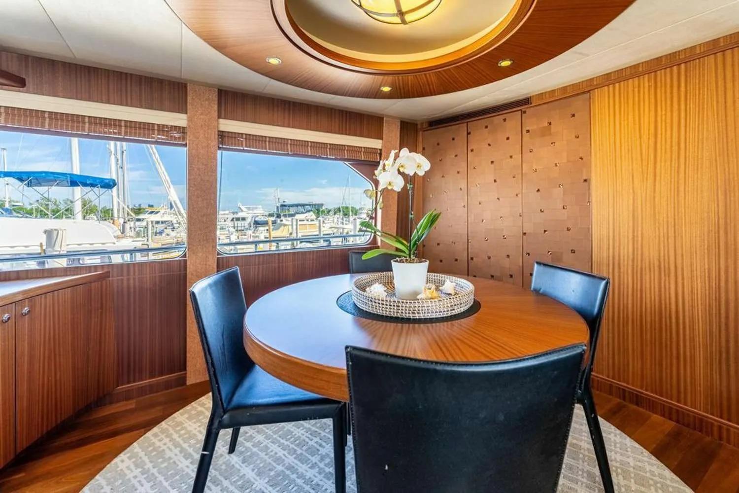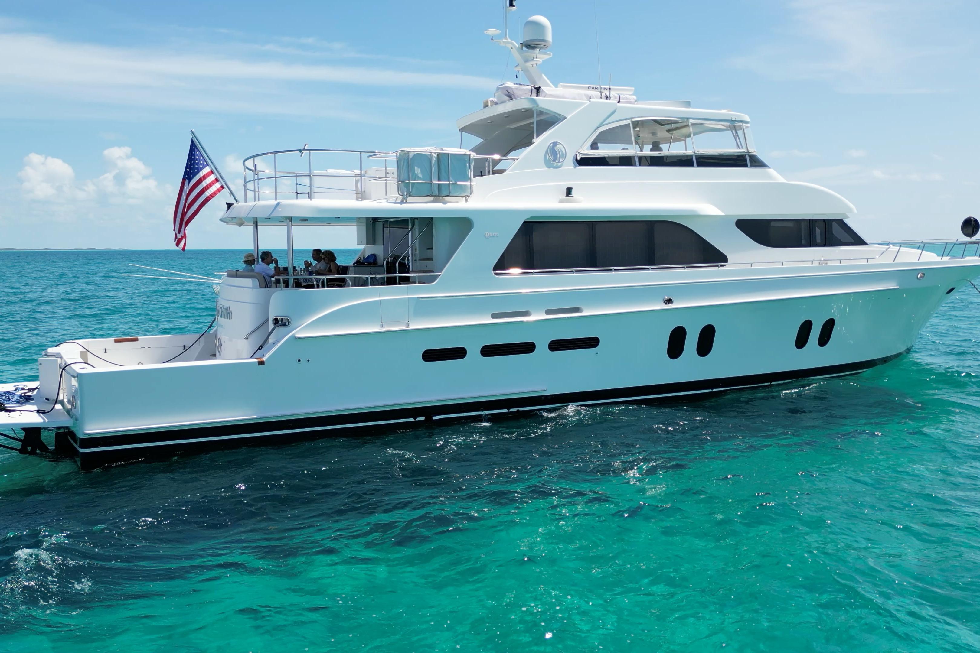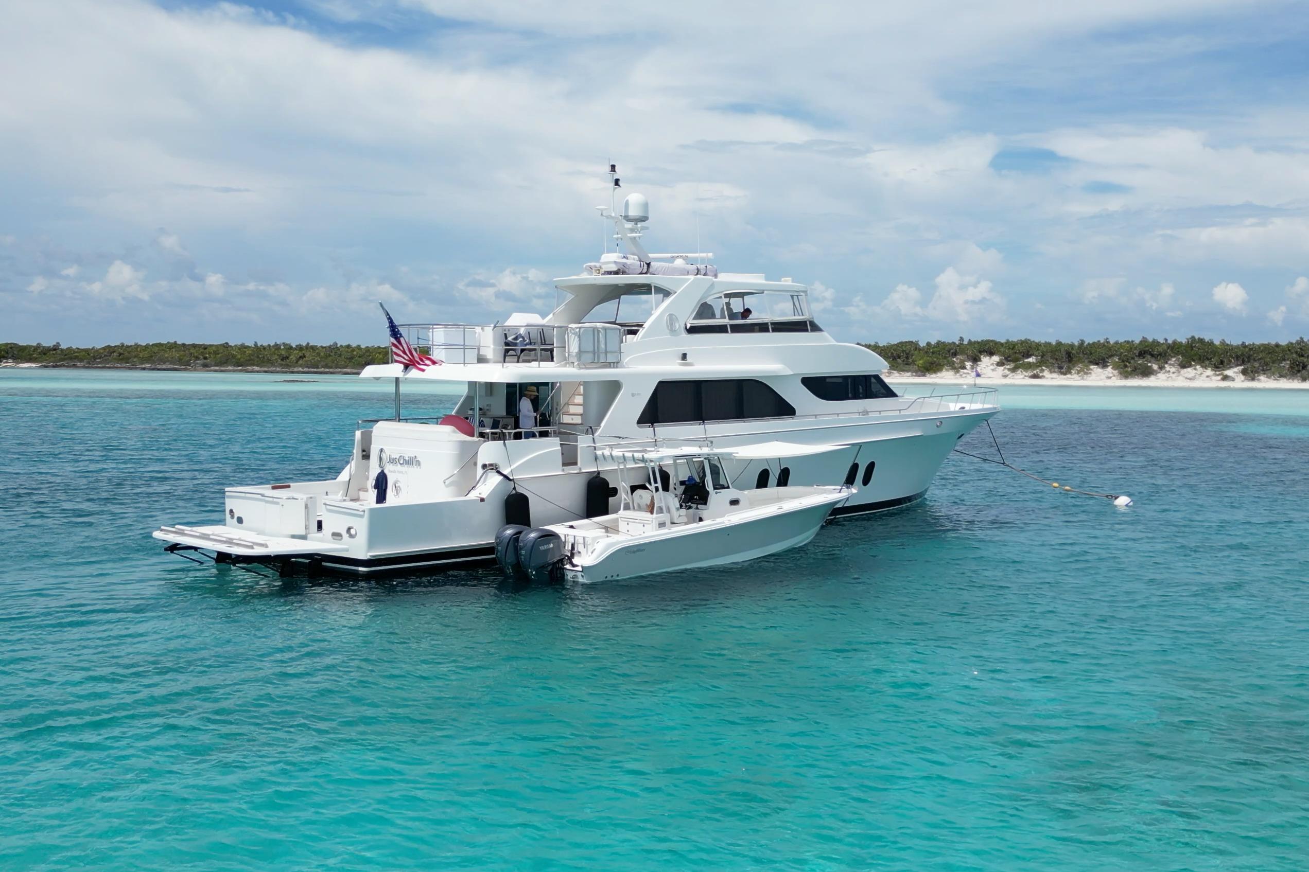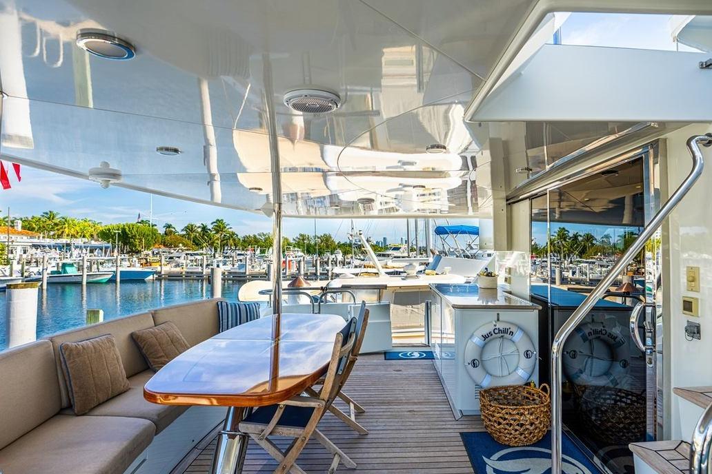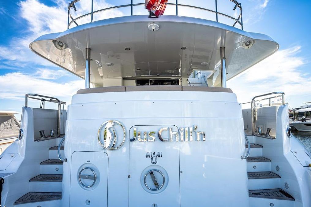JUS CHILL’N is an impressive 84’ Cheoy Lee Bravo 2012 that has been professionally maintained by captain and crew. She is a must-see vessel in this size/price range due to many unique features like a country kitchen, spacious factory-built cockpit with stowed davit, a TNT lift, wide walkaround side decks, a high volume interior, air-conditioned flybridge with enclosure, and great performance with a 20kt cruise. The vessel features a three-stateroom layout with two full-beam king berths and one VIPqueen berth. The crew quarters are located aft with two staterooms and a crew lounge.