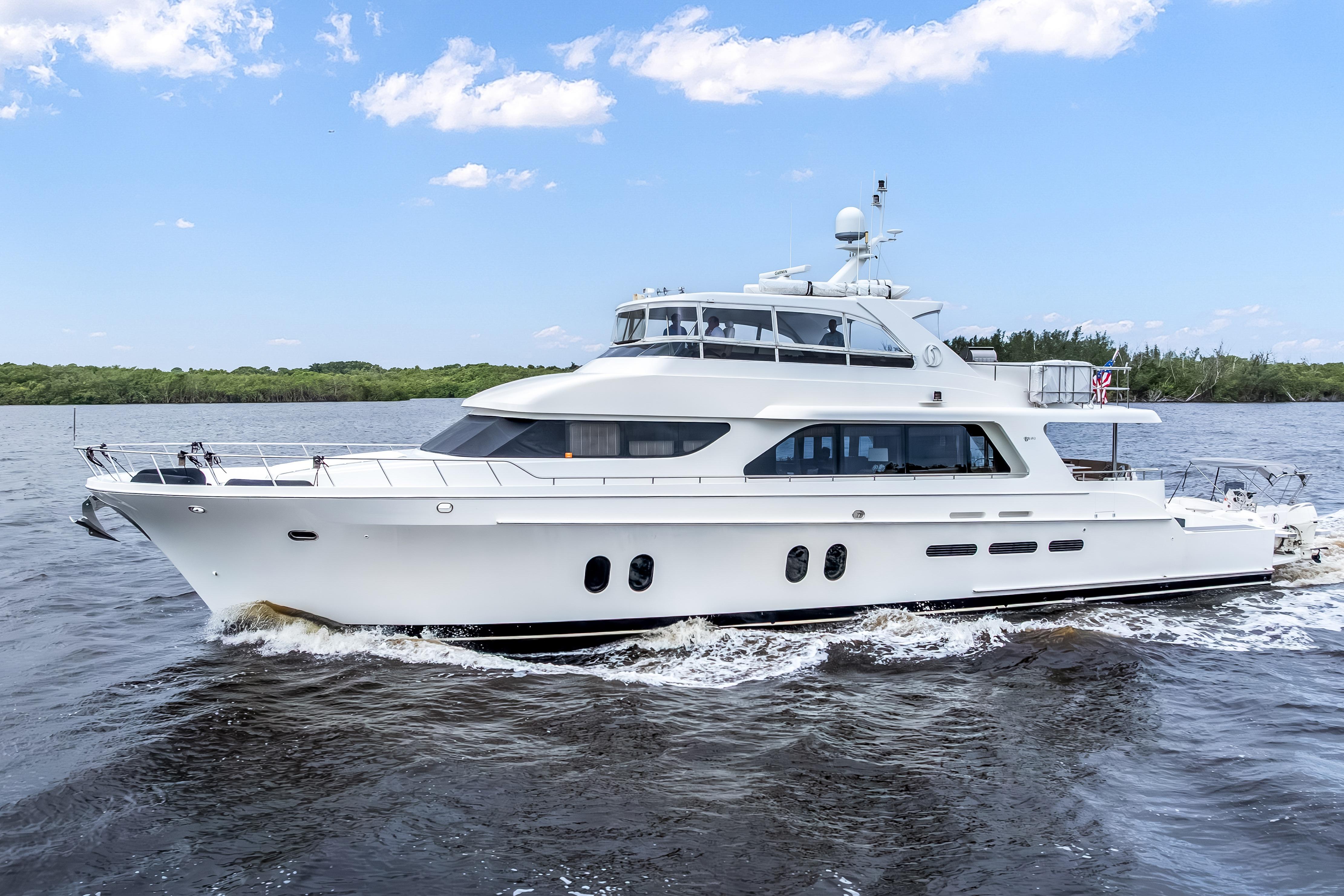 "JUS CHILL’N" is an impressive 84’ Cheoy Lee Bravo 2012 that has been well-maintained. She is a must-see vessel in this size/price range due to many unique features like a country kitchen, spacious factory-built cockpit with stowed davit, a TNT lift, wide walkaround side decks, a high volume interior, and air-conditioned flybridge with enclosure.