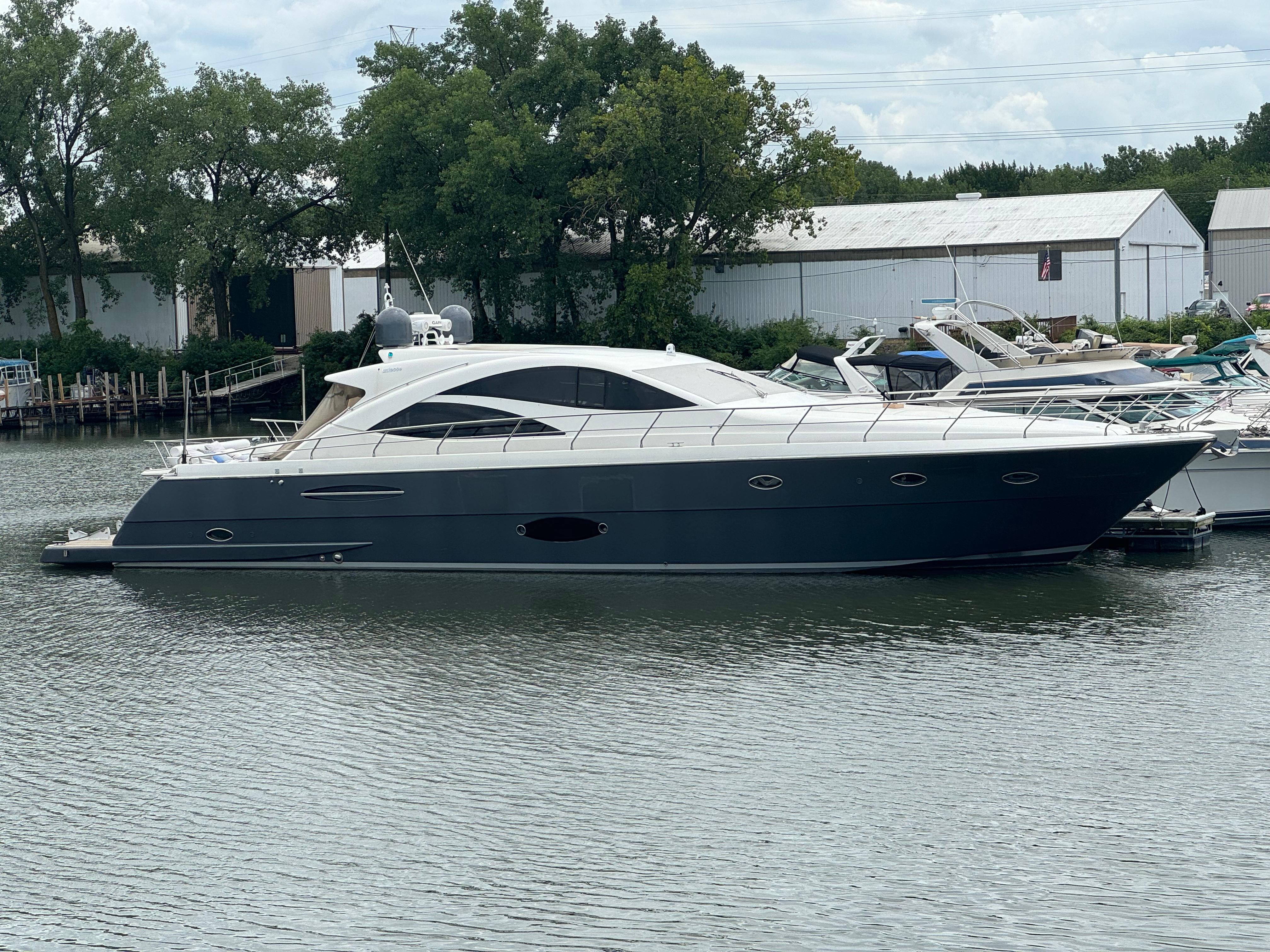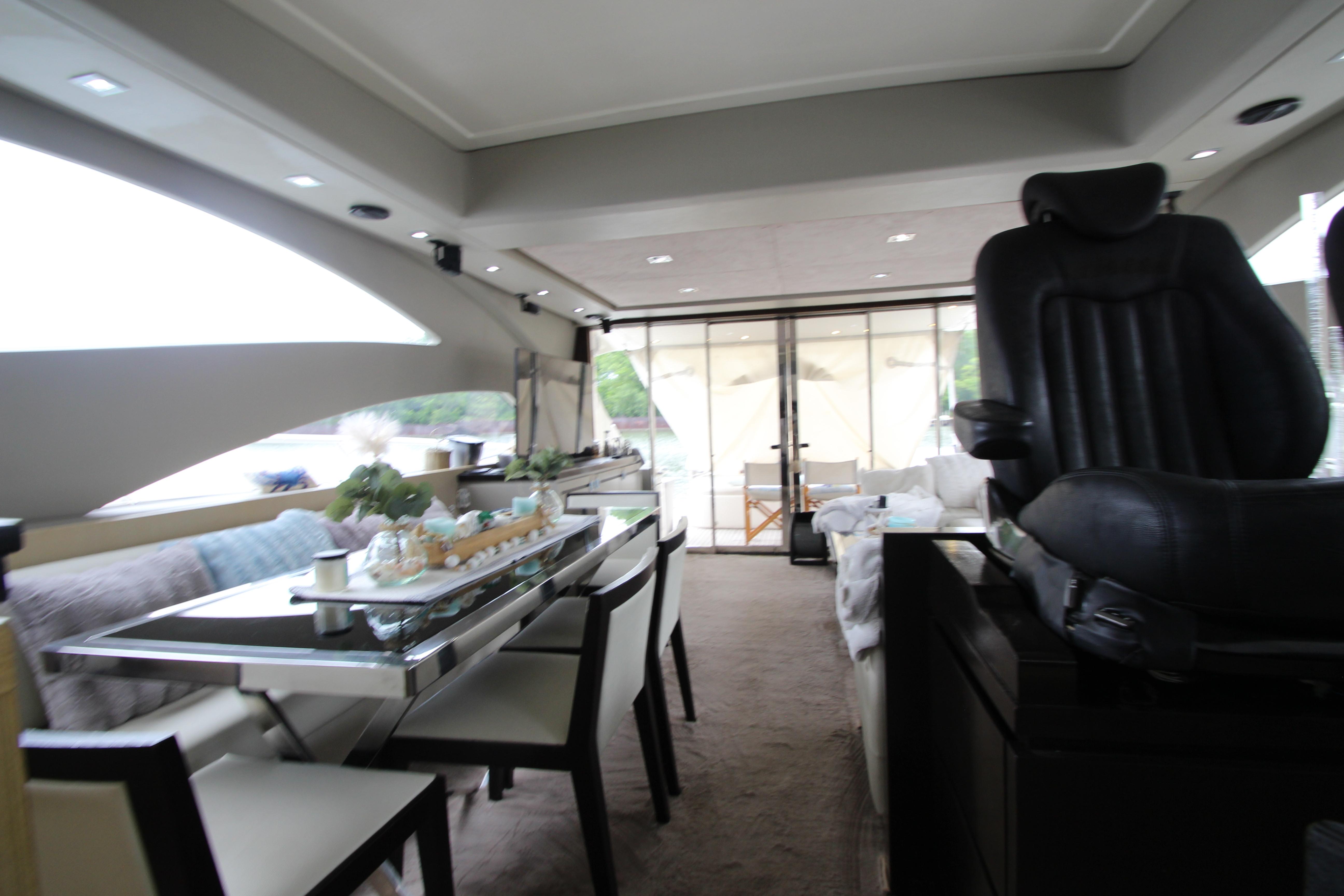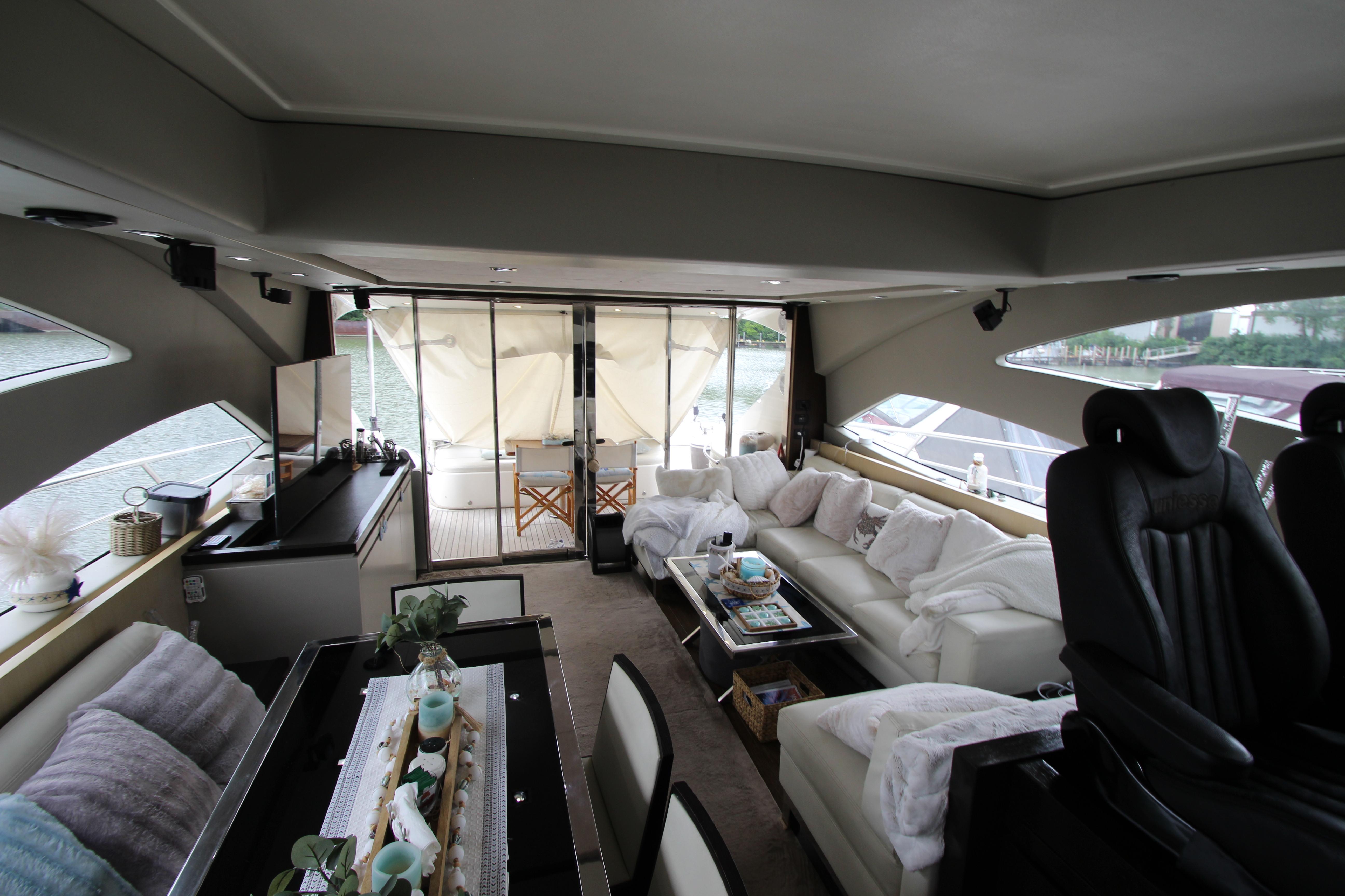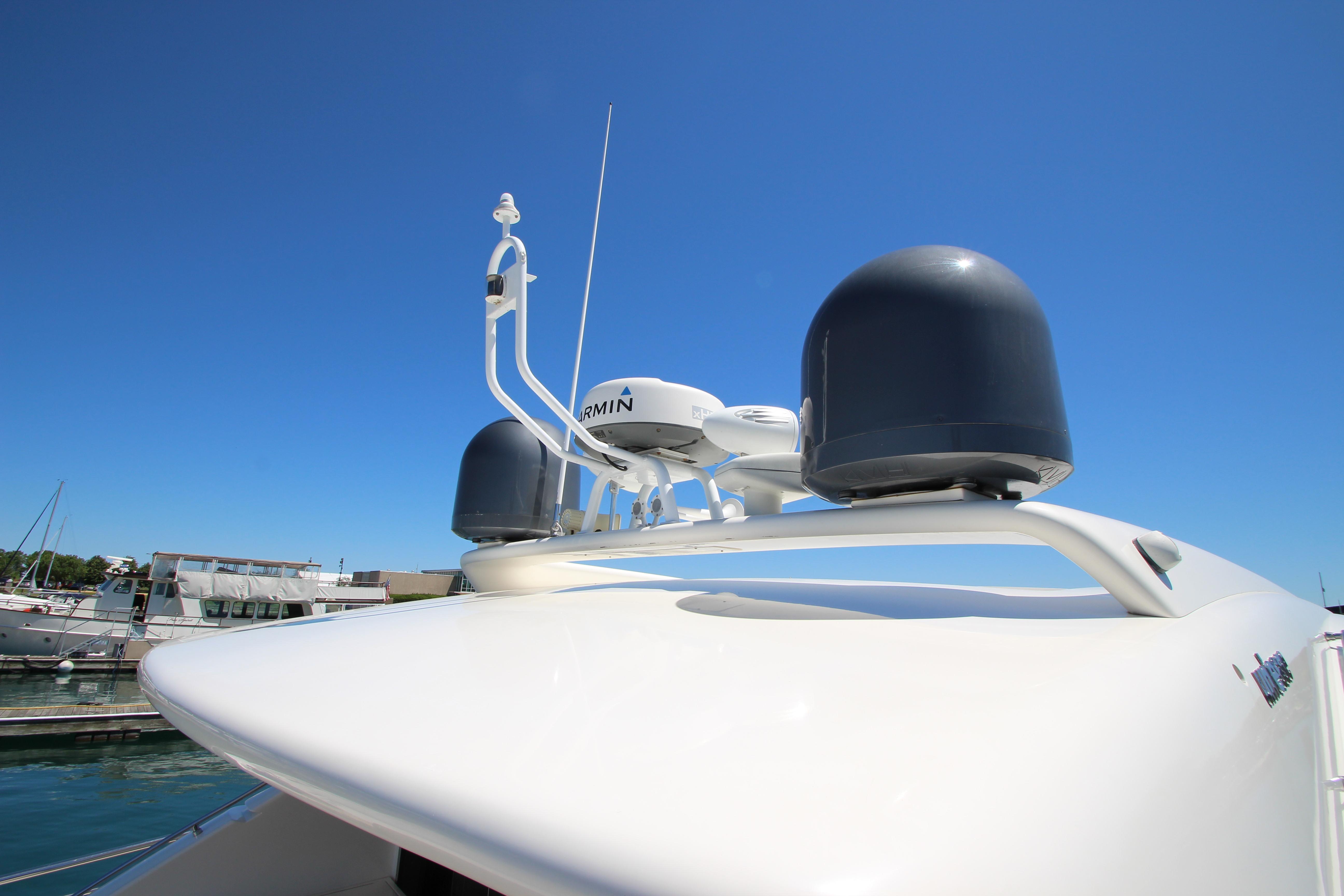Our 2007 Uniesse 70 Sport is an excellent example of Italian styling and craftsmanship. The Uniesse hulls are well-built and perform beautifully. Uniesse is a 30-year old company with all the pedigree of the best pleasure craft builders in Europe. They are known for their interior and exterior finishes, use of space, advanced engineering, and their efficient, smooth running hull. This 70' Uniesse has a four-cabin, three-head layout, with crew aft and large living areas that are not typical of most Euro-style vessels in her class. The Owner's cabin and VIP have ensuite heads. the roof over the helm and dining areas is retractable, and the sliding doors at the aft end of the salon allow the breeze to flow throughout the vessel. There are two large sunning areas, one in the cockpit, and the other on the bow. There is a garage in the stern for storage of paddle boards, and other water sports equipment along with a hydraulic davit recessed into the deck. The large dive platform can carry a dinghy or jet ski.