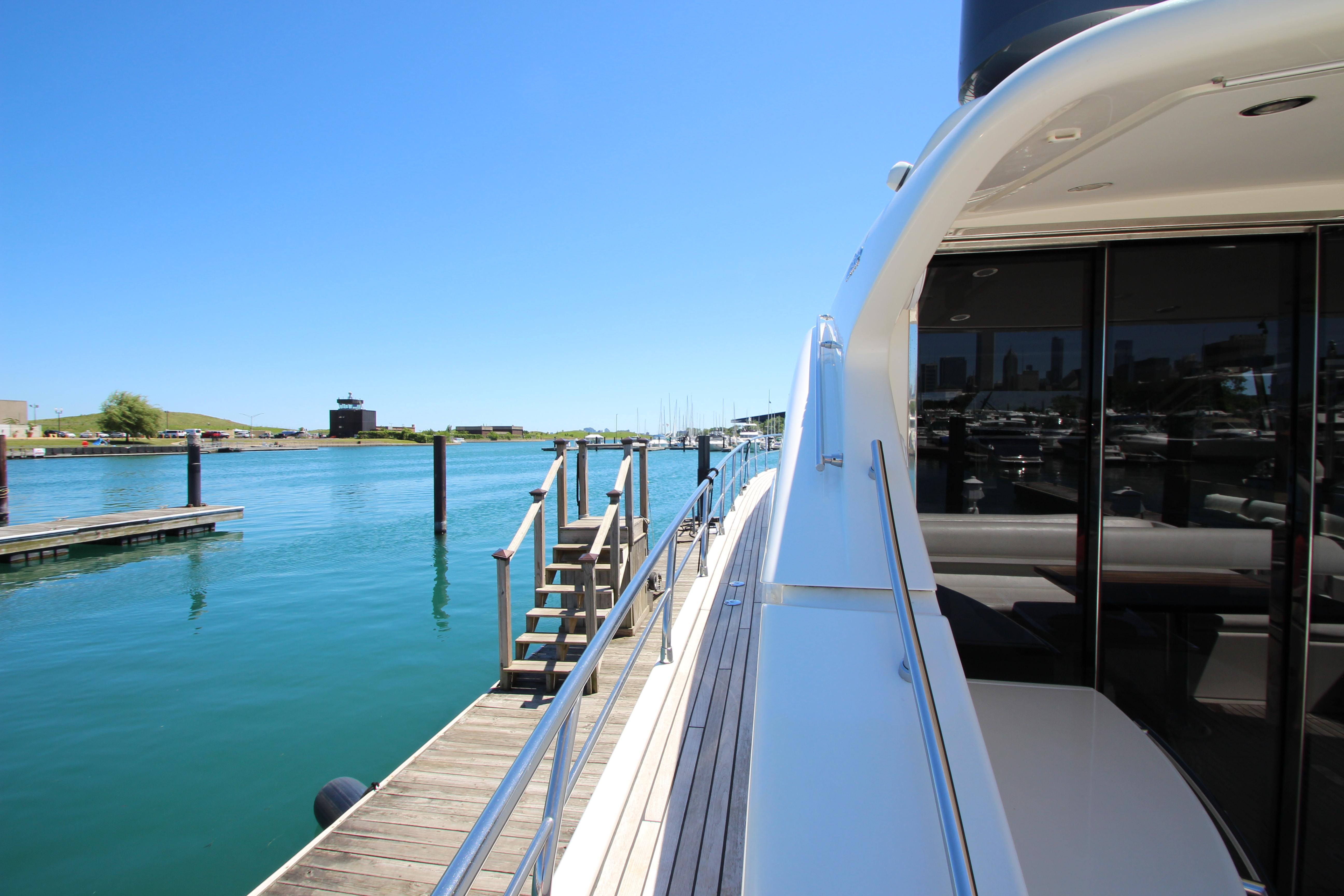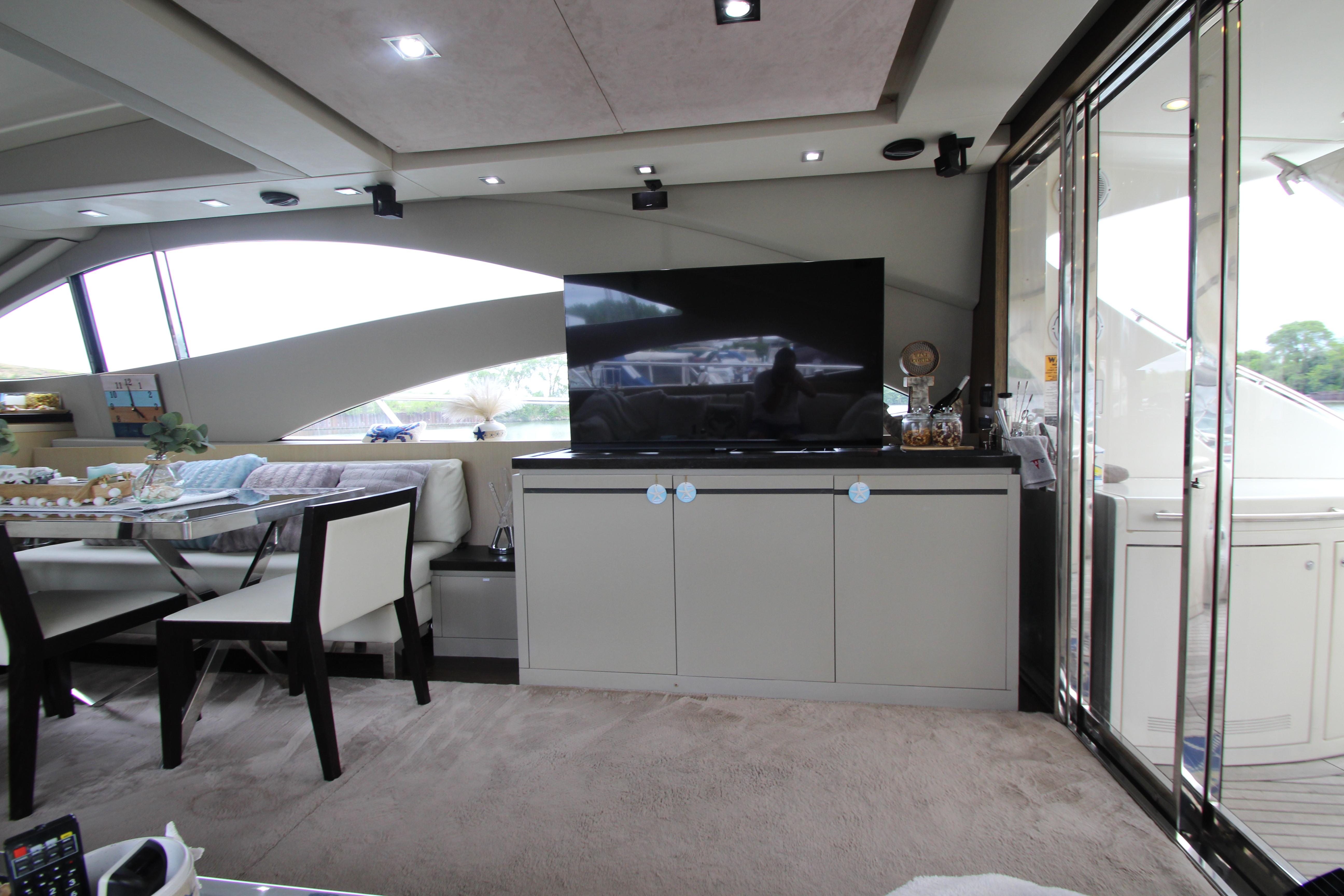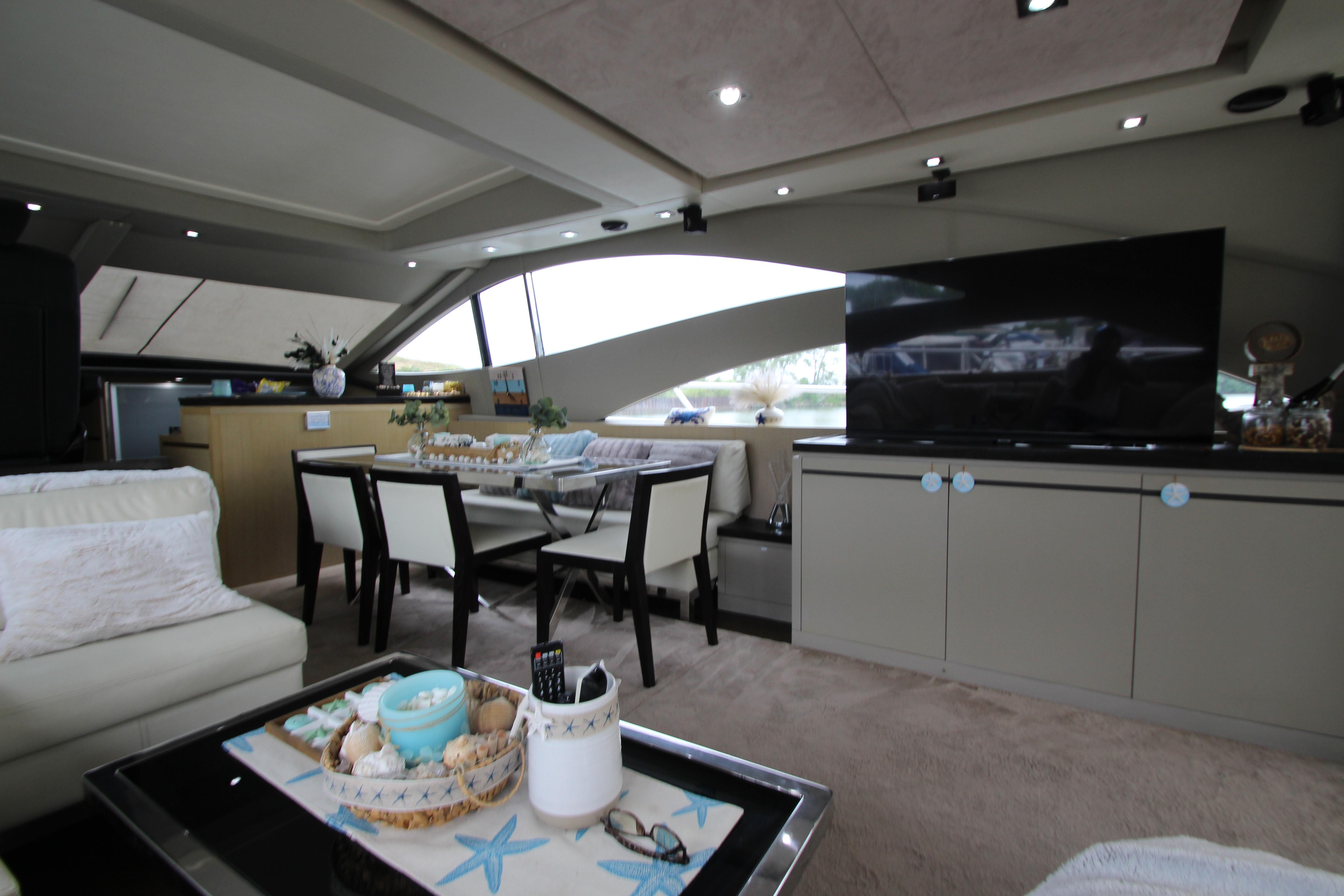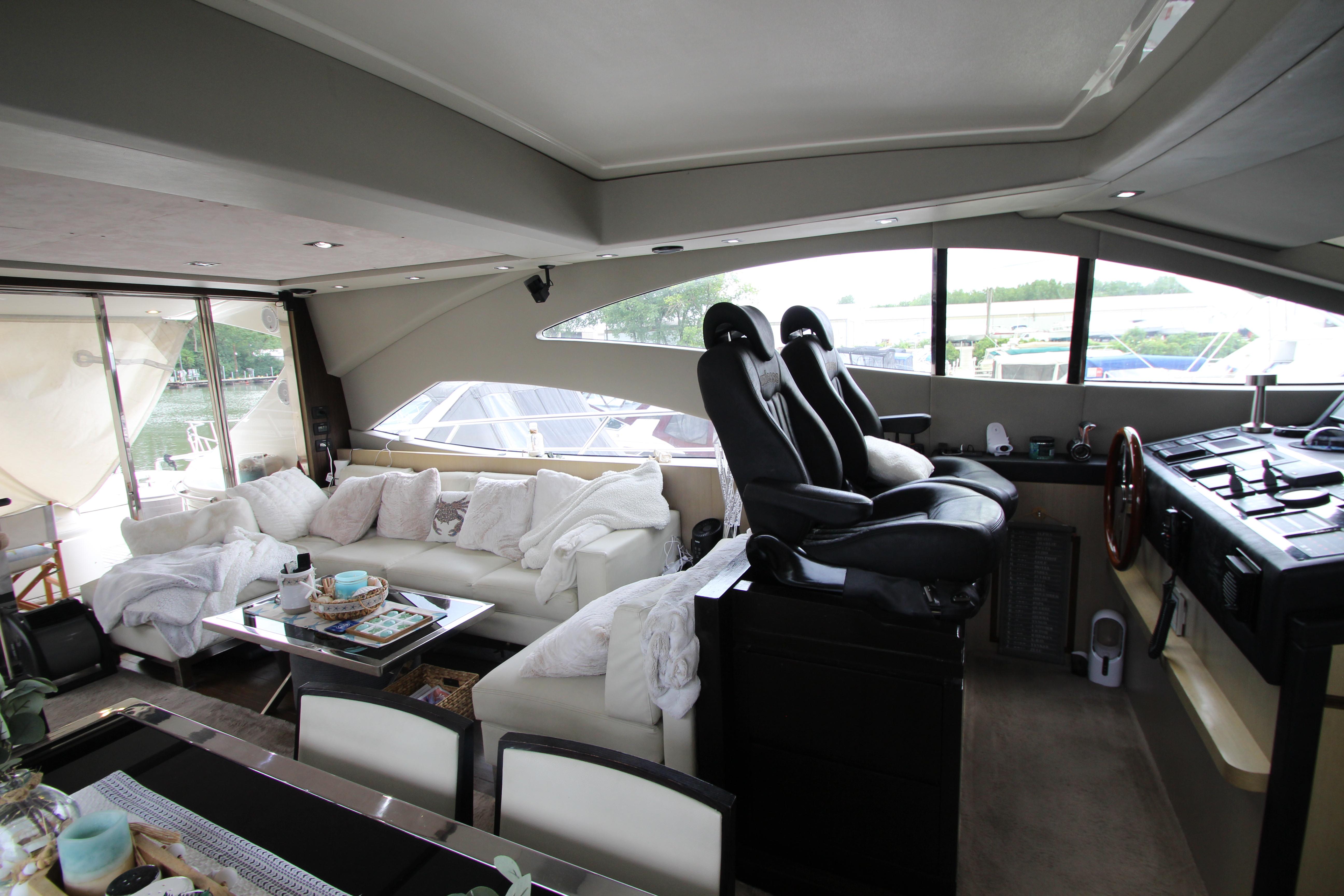 Our 2007 Uniesse 70 Sport is an excellent example of Italian styling and craftsmanship. The Uniesse hulls are well-built and perform beautifully. Uniesse is a 30-year old company with all the pedigree of the best pleasure craft builders in Europe. They are known for their interior and exterior finishes, use of space, advanced engineering, and their efficient, smooth running hull. This 70' Uniesse has a four-cabin, three-head layout, with crew aft and large living areas that are not typical of most Euro-style vessels in her class. The Owner's cabin and VIP have ensuite heads. the roof over the helm and dining areas is retractable, and the sliding doors at the aft end of the salon allow the breeze to flow throughout the vessel. There are two large sunning areas, one in the cockpit, and the other on the bow. There is a garage in the stern for storage of paddle boards, and other water sports equipment along with a hydraulic davit recessed into the deck. The large dive platform can carry a dinghy or jet ski.