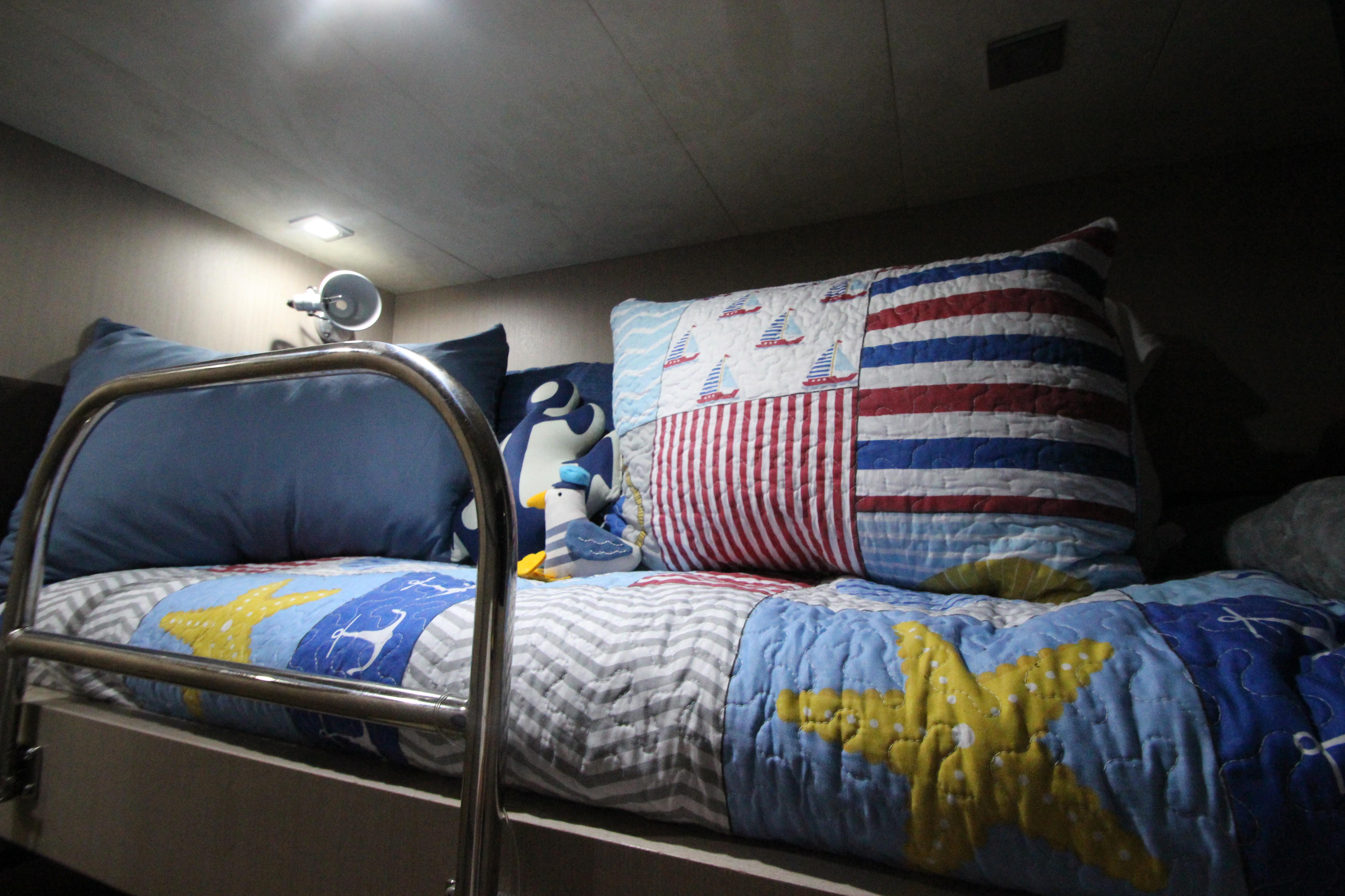 - Bunk bed with pillows and bedspread