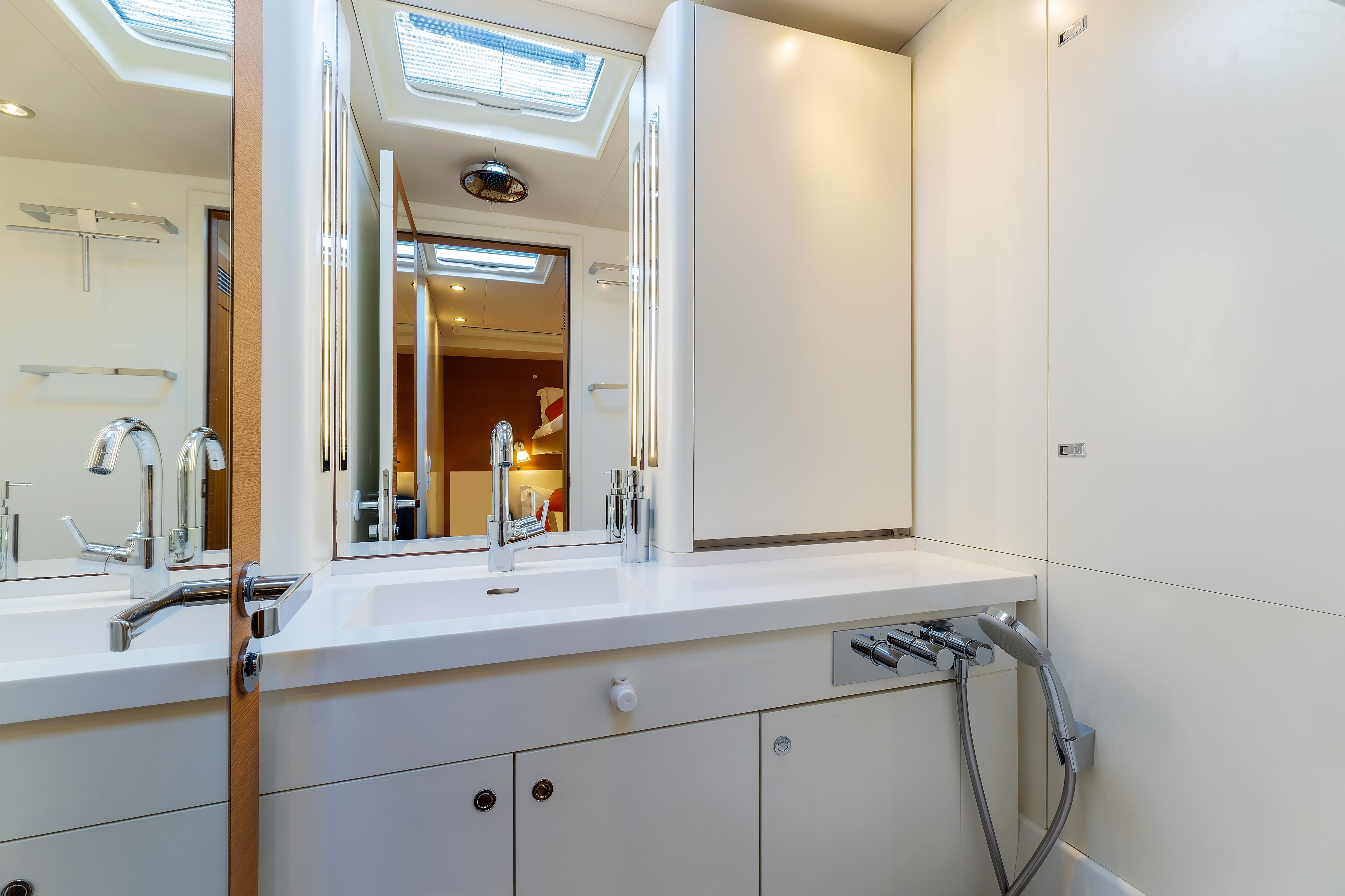 Aft port side double cabin with en-suite head and separate shower, for guest or crew use. Also with panoramic hull window and finished the same standard as the rest of the interior.