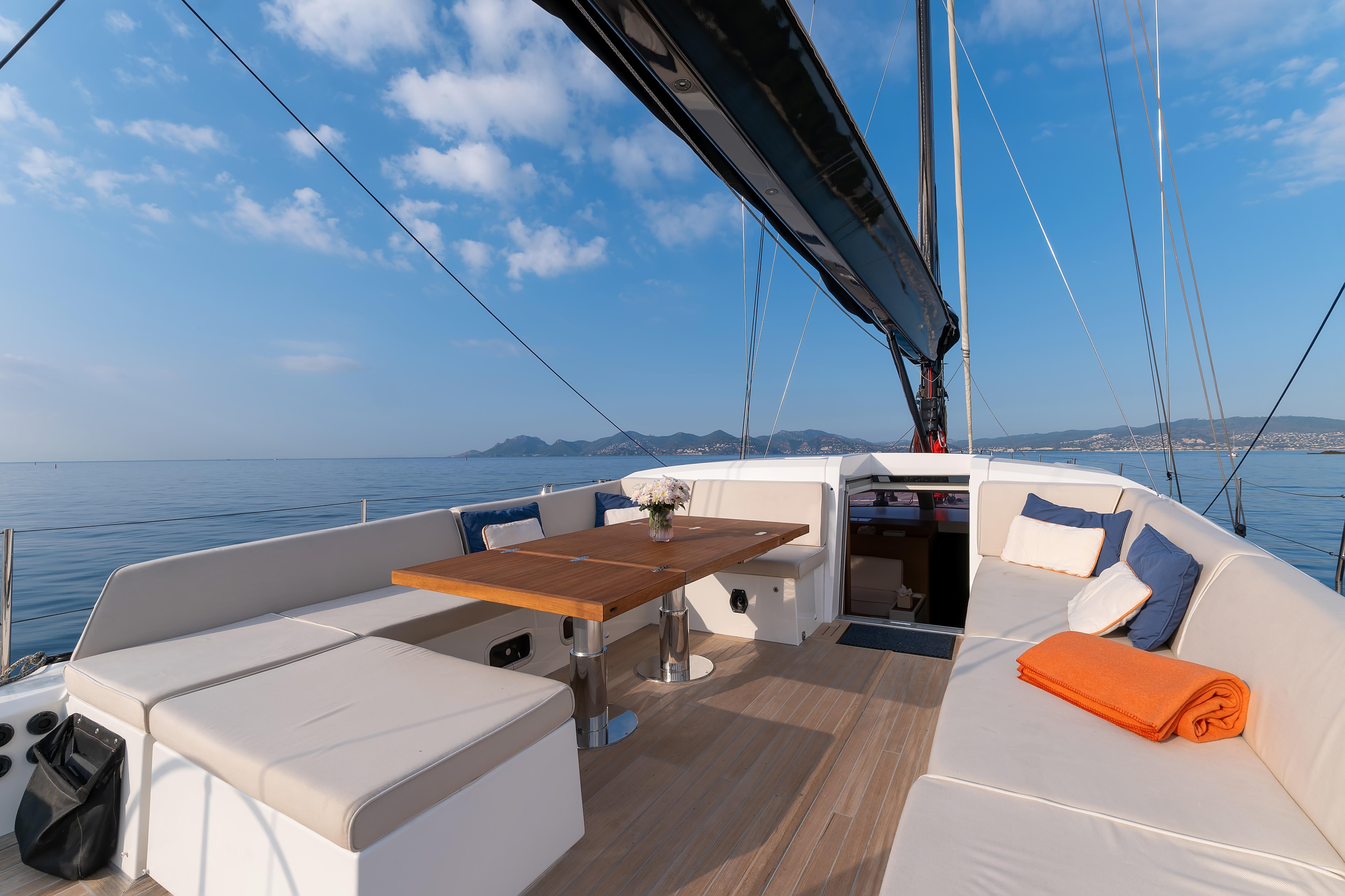 CLOUDY NIGHT was designed and equipped to comfortably and safely circumnavigate the globe. Holding an array of features that make her particularly resilient and autonomous, CLOUDY NIGHT has sailed beyond and set new standards for this brilliant and incredibly popular Philippe Briand deck salon design.
