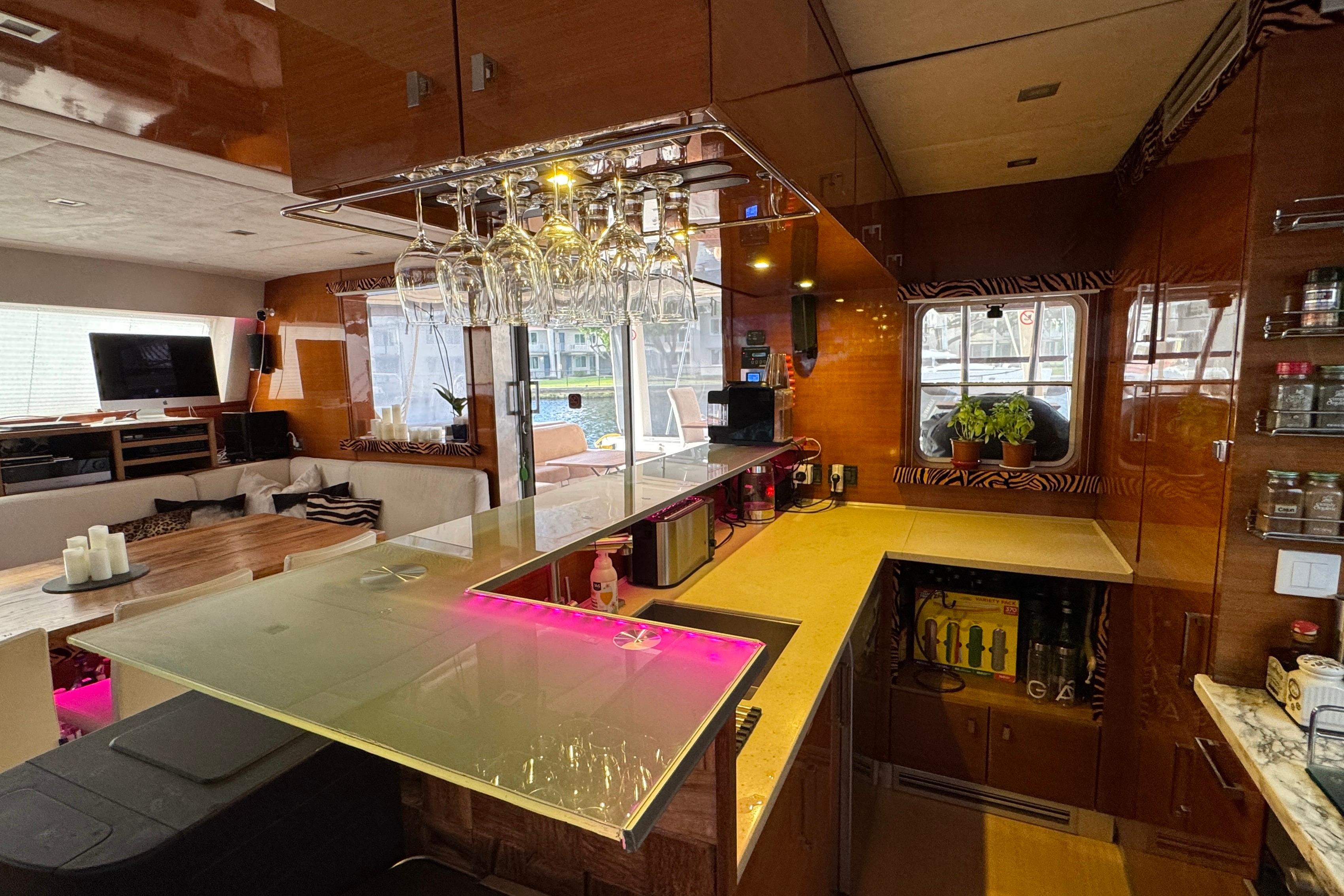 Full bar, glass countertops with LED accents