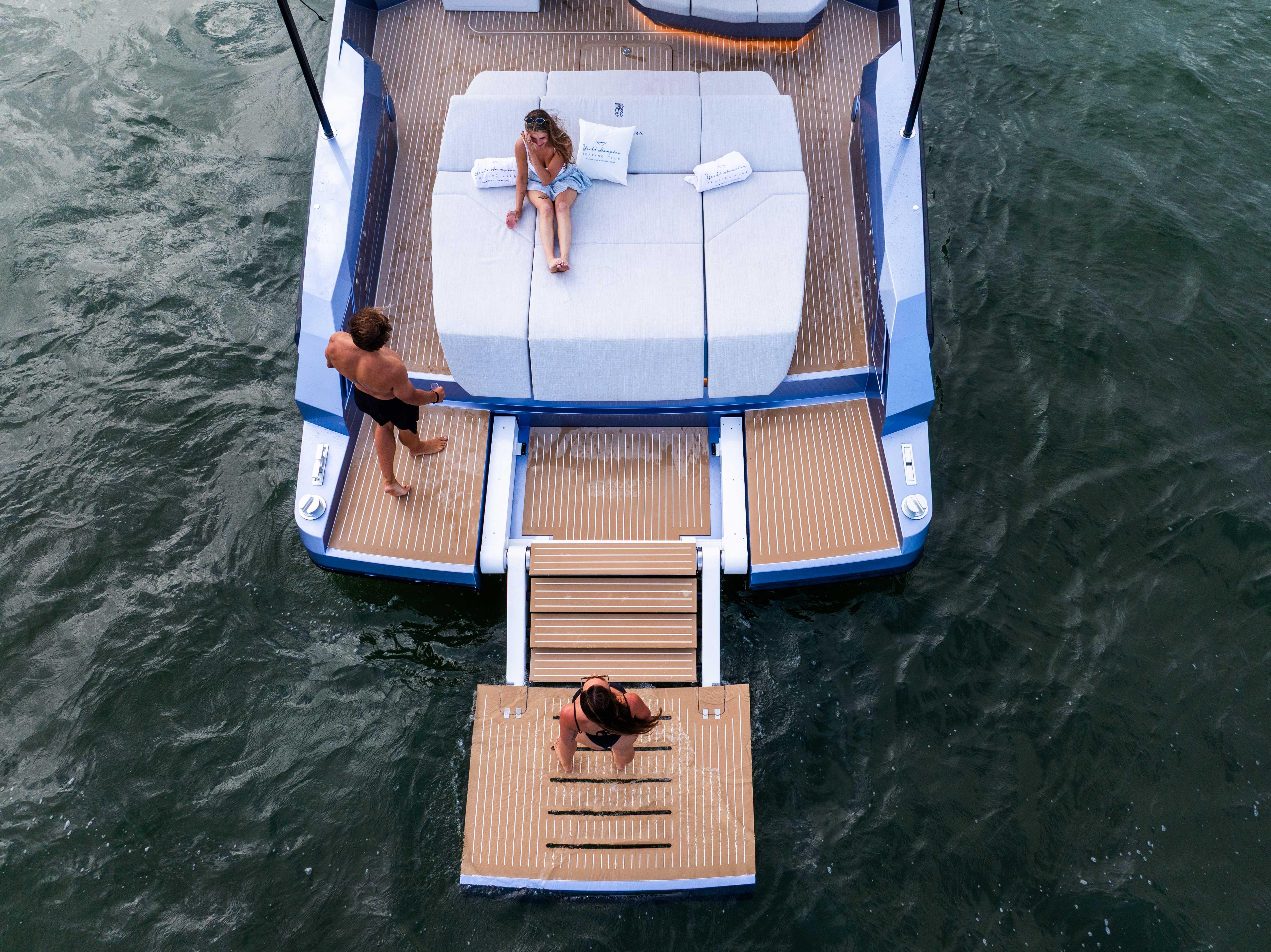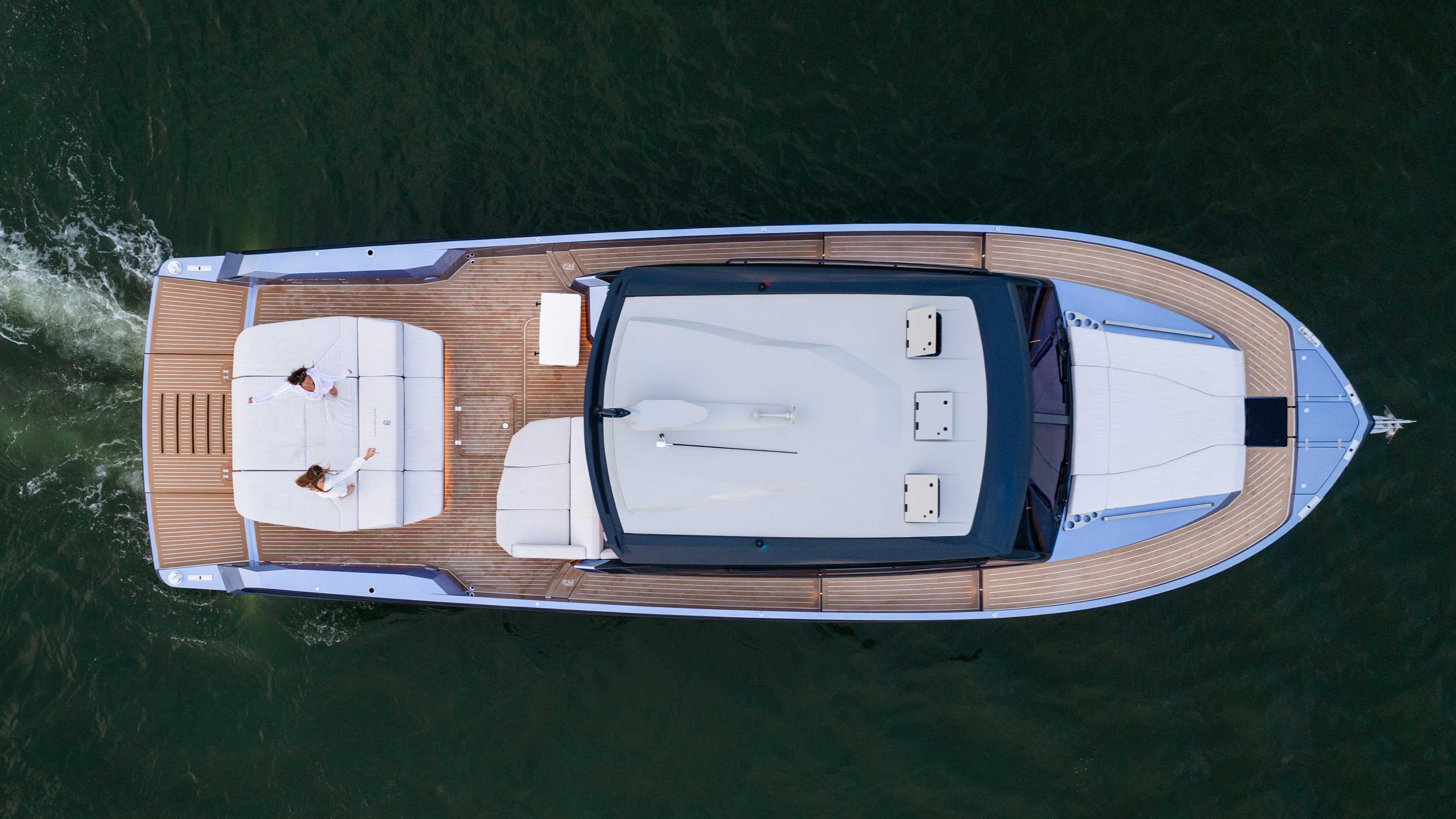 - Expansive deck layout, combining sun-exposed and shaded areas for ultimate versatility. Whether you prefer shelter from the wind and sun or relaxing close to the water, this yacht adapts to your needs—transforming into a private beach club on the sea.