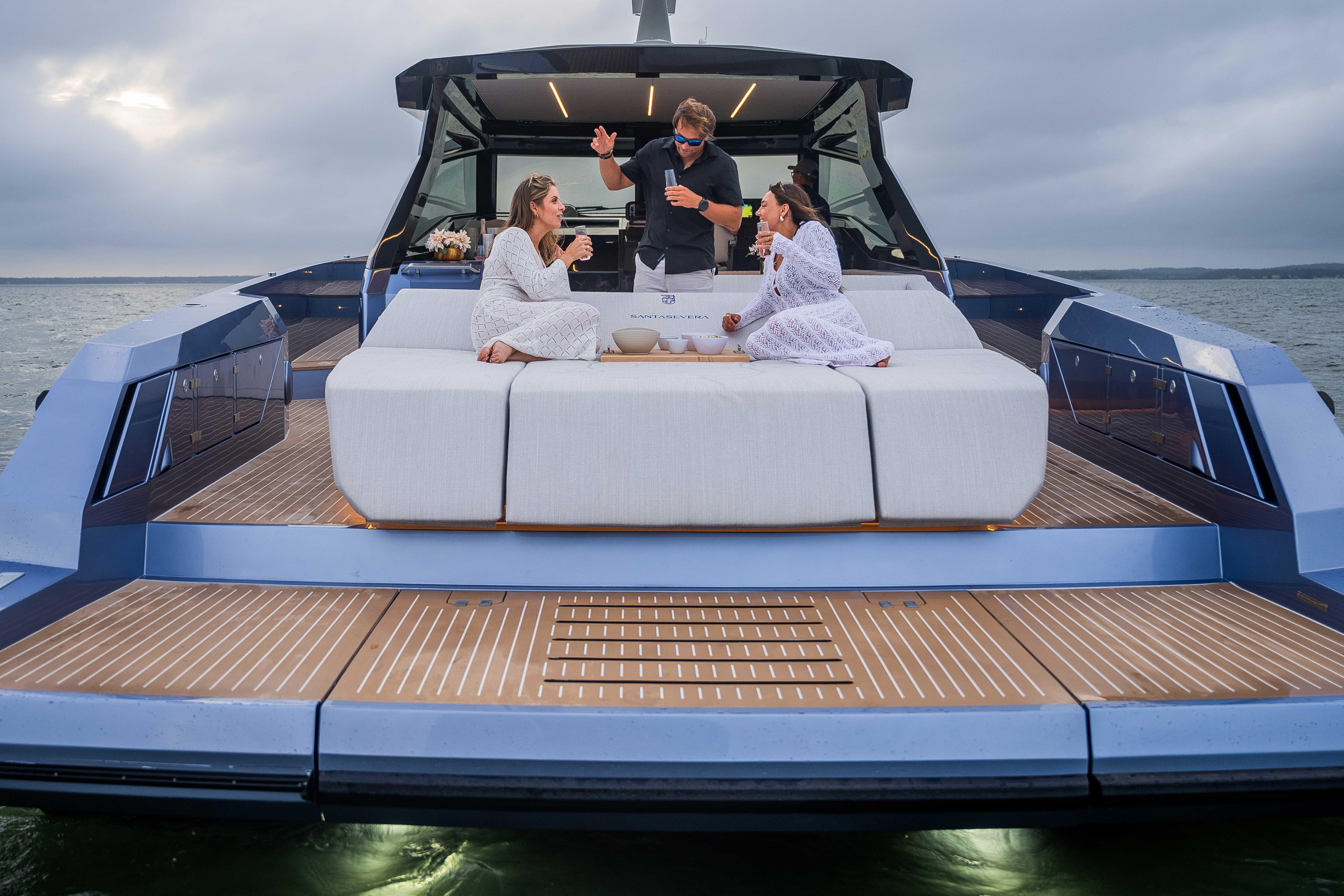 - With its innovative design, luxurious details, the Santasevera is set to redefine the day boat market—offering an unmatched connection to the sea in true style. Even owners of larger yachts will find themselves captivated by its ability to provide an intimate, seamless connection with the sea while maintaining the luxury and comfort they expect