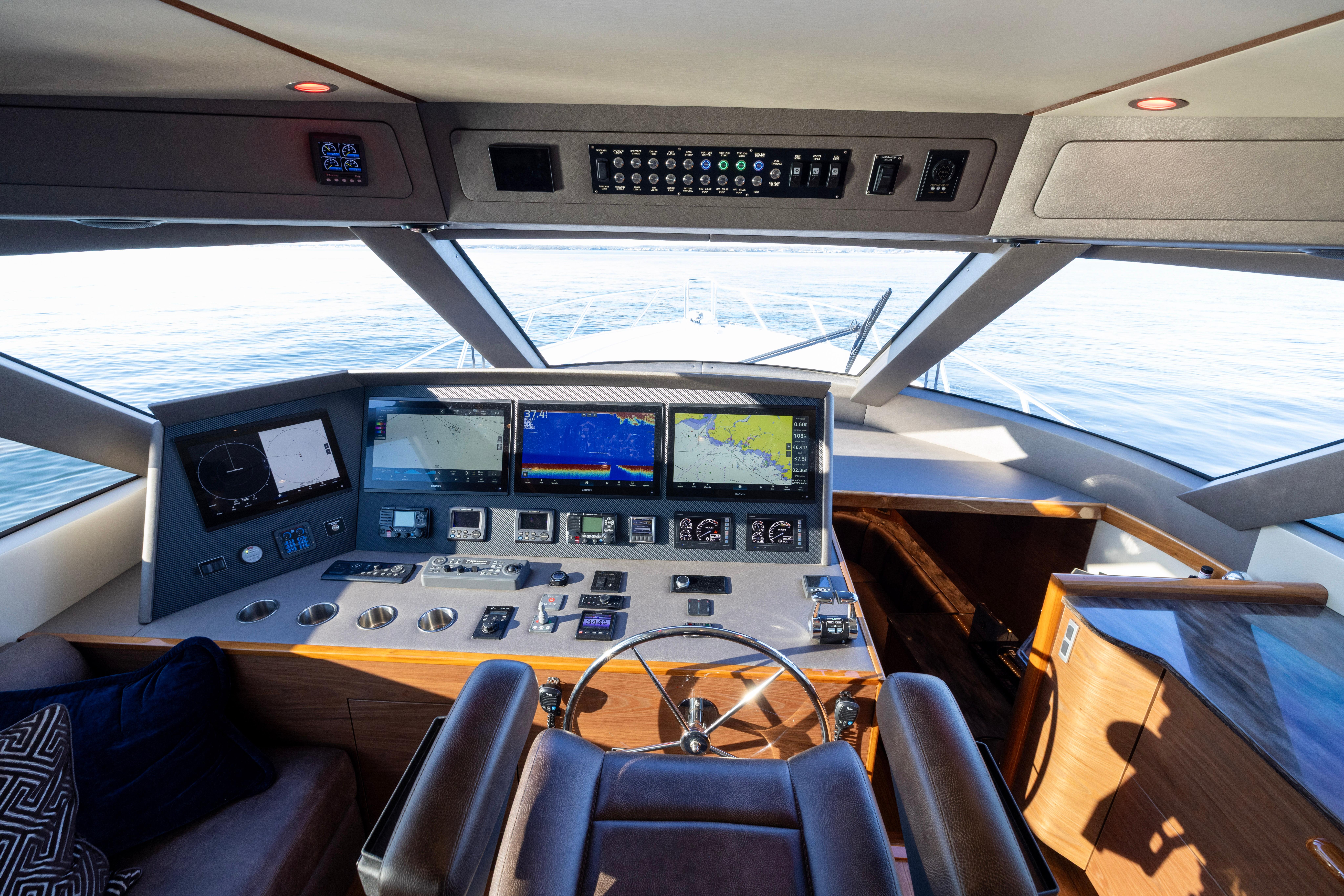 - Custom bow thruster controls at cockpit control station