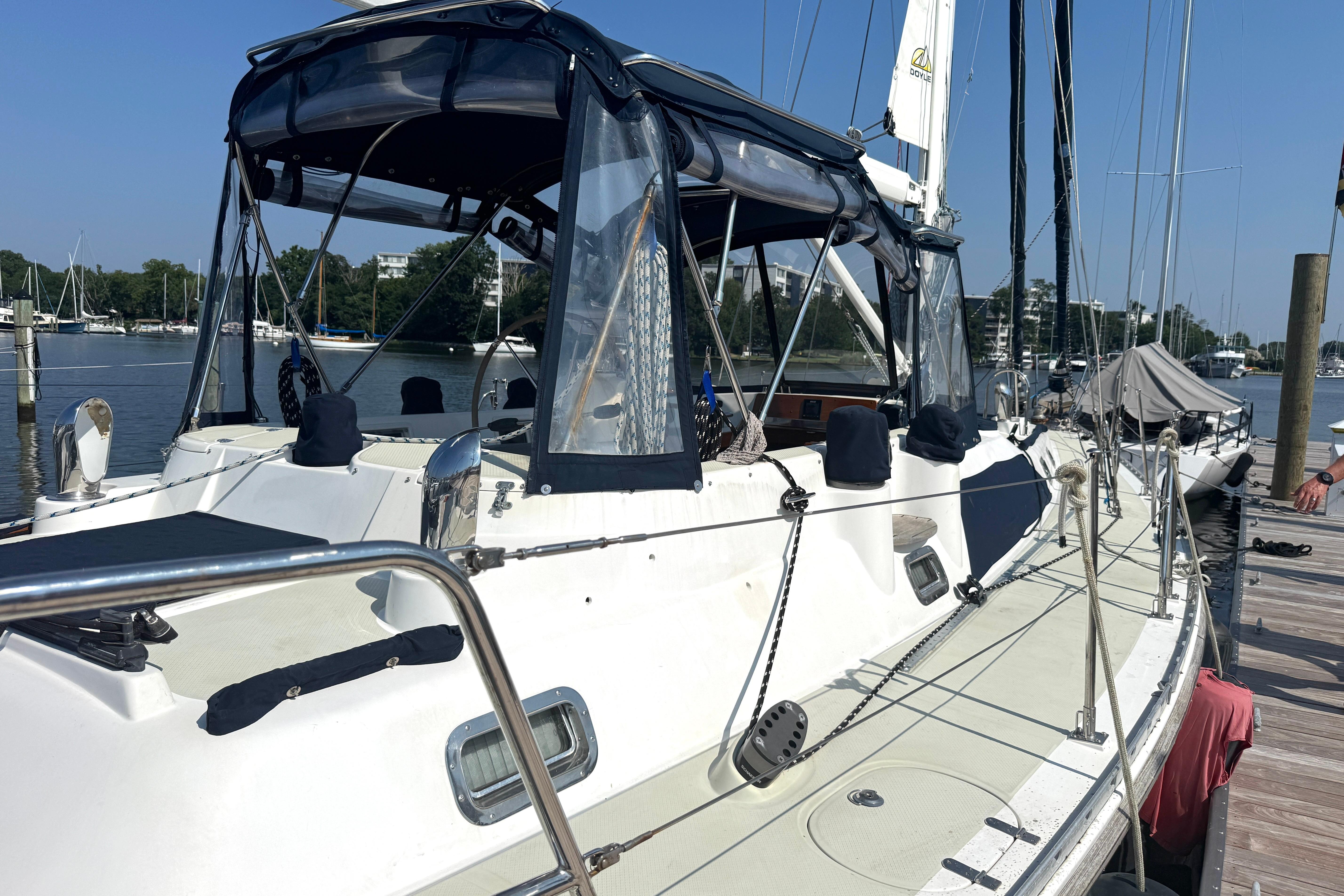 - Selden aluminum mast, double spreaders, electric in-mast furling