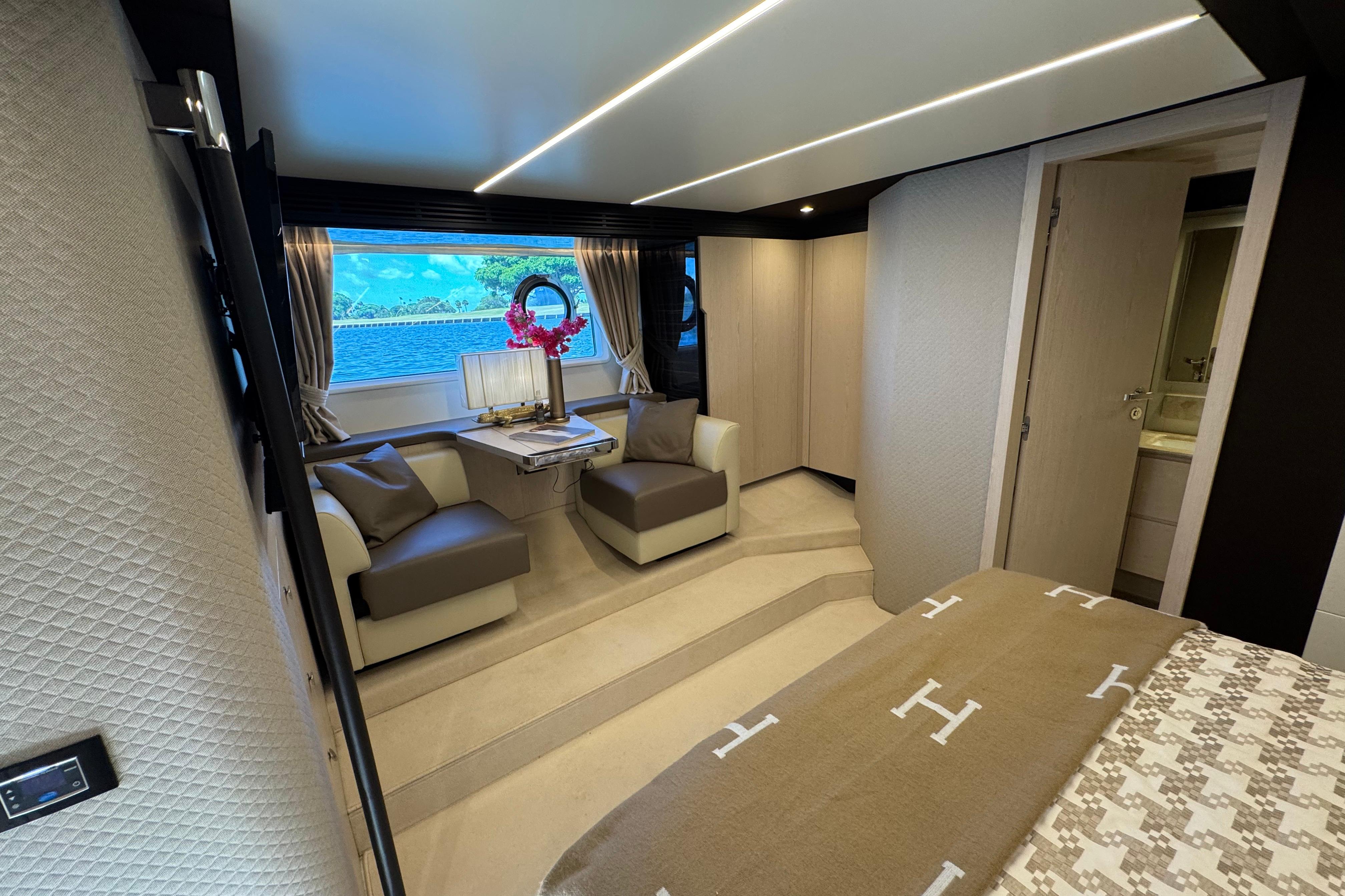 Below deck, four beautifully appointed cabins comfortably accommodate family and guests, including a full-beam master suite that’s your private retreat on the water. Whether you're cruising to the Bahamas, enjoying a weekend getaway, or hosting a sunset cocktail party, the Azimut 66 Fly delivers a first-class yachting experience from bow to stern.
