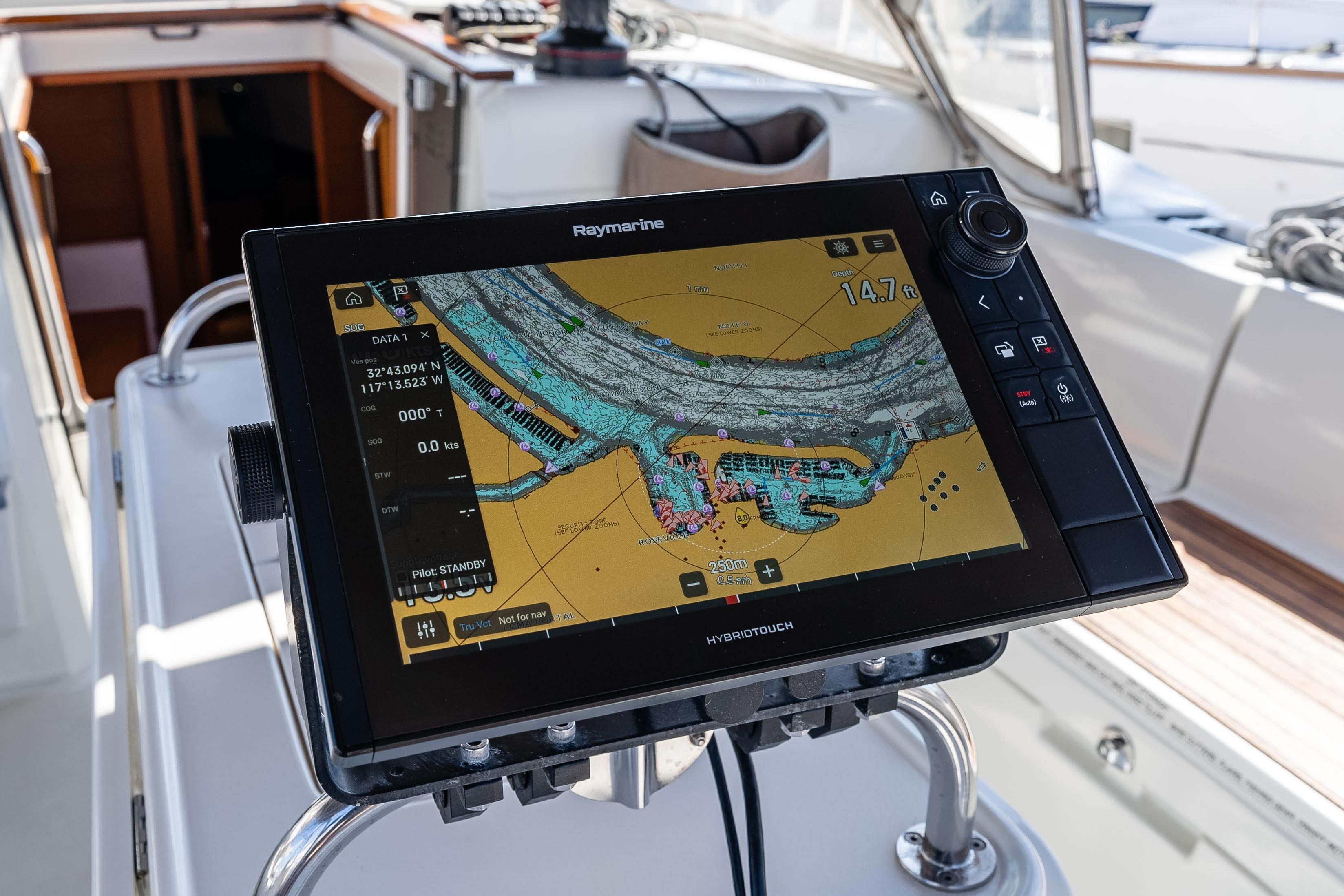 The Ocean Electronics Package is fully modern. It is a “smart boat”: three Raymarine Axiom Pro displays (new in 2023 and 2025), radar with collision avoidance, AIS transceiver, and a wireless autopilot remote. Starlink Gen 3 is installed and hardwired—giving you high-speed internet underway or at anchor, perfect for weather routing, remote work, or staying connected.