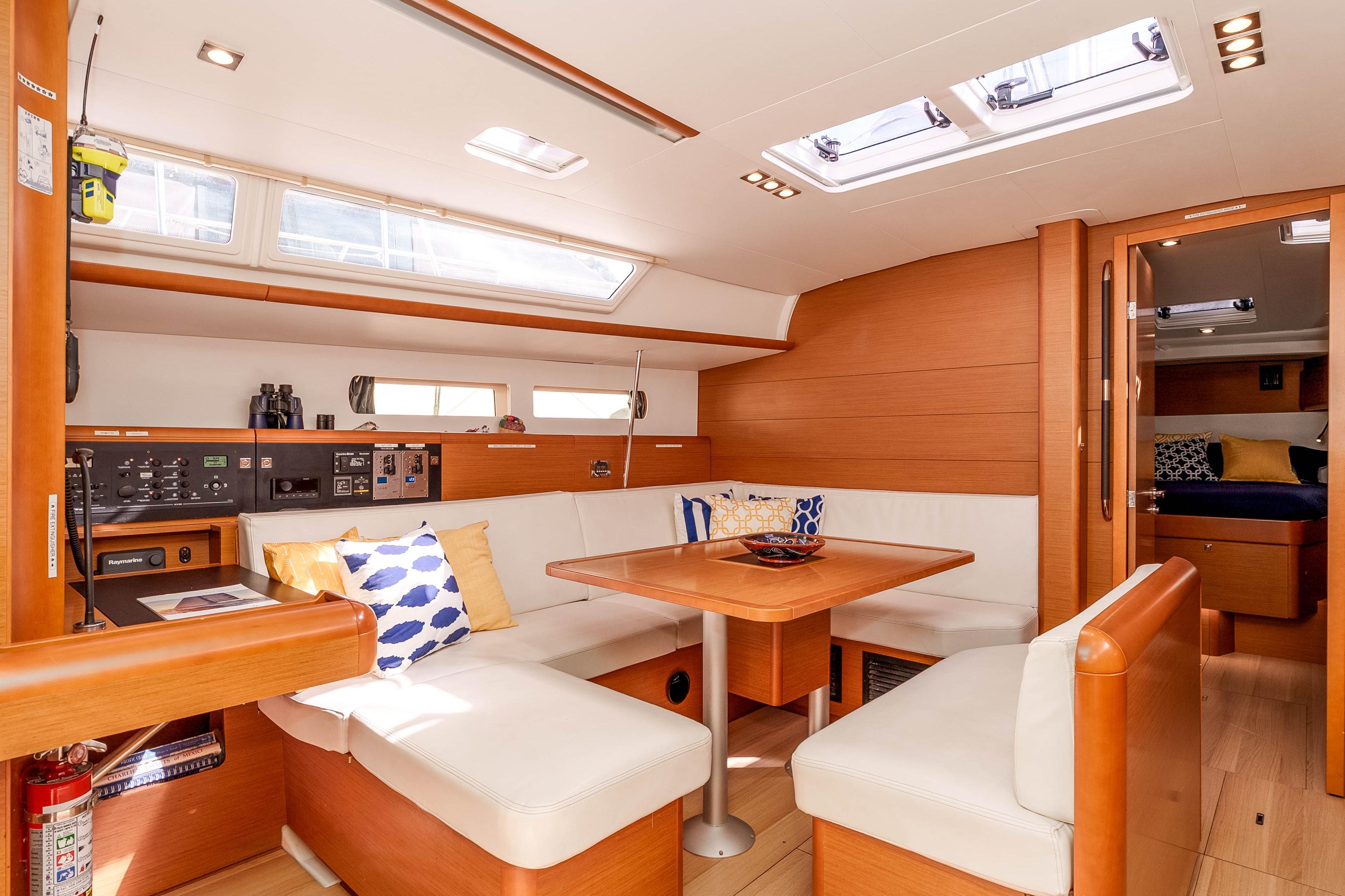 With a proven offshore design by Philippe Briand, a powerful sail plan, in-mast furling, electric winches, and all lines led to the cockpit, she’s easy to sail double-handed or even solo. The rig was updated in 2025, and all sails are in excellent condition, including a barely used Code 0.