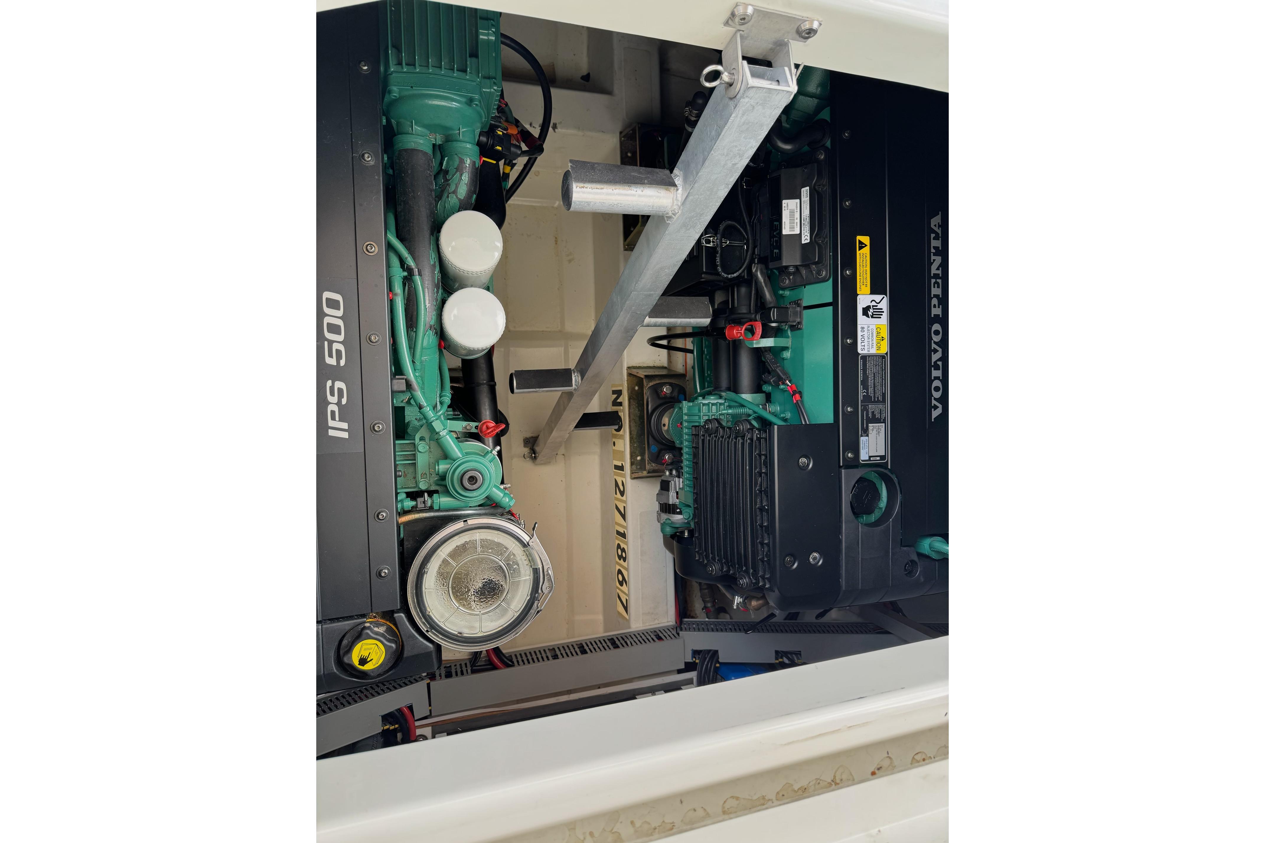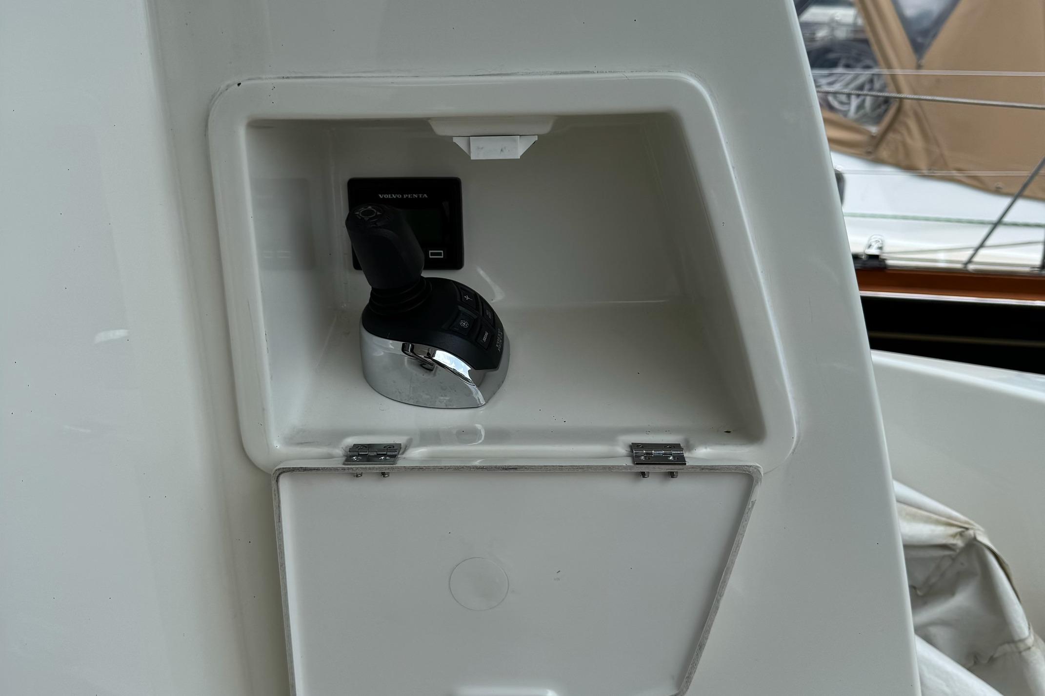 Step inside to discover the optional "Excellence Trim Package," featuring the warm elegance of Moabi wood interior, complemented by Devon Choco leather seating and sleek Ivory countertops. The inviting salon is bathed in natural light thanks to expansive panoramic windows and a fully opening sunroof, creating a bright and airy atmosphere. Electric side windows allow for refreshing natural ventilation, seamlessly blending the comfort of the indoors with the beauty of the open water.