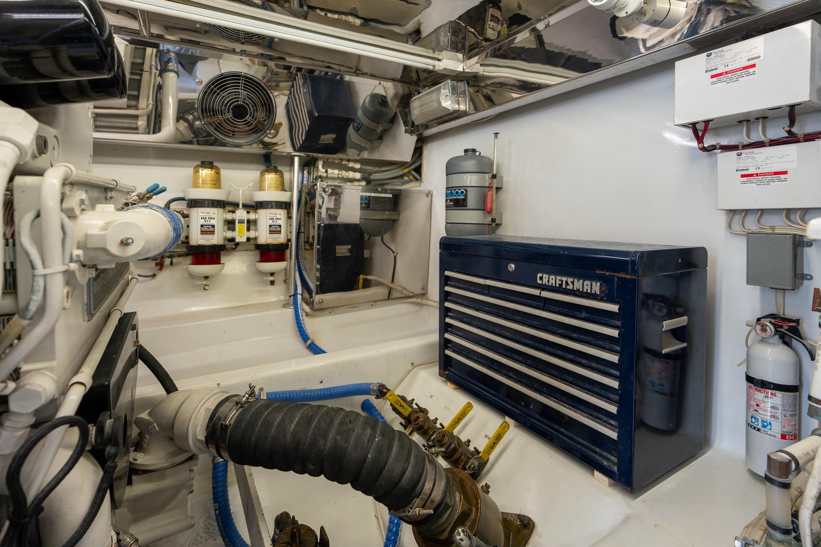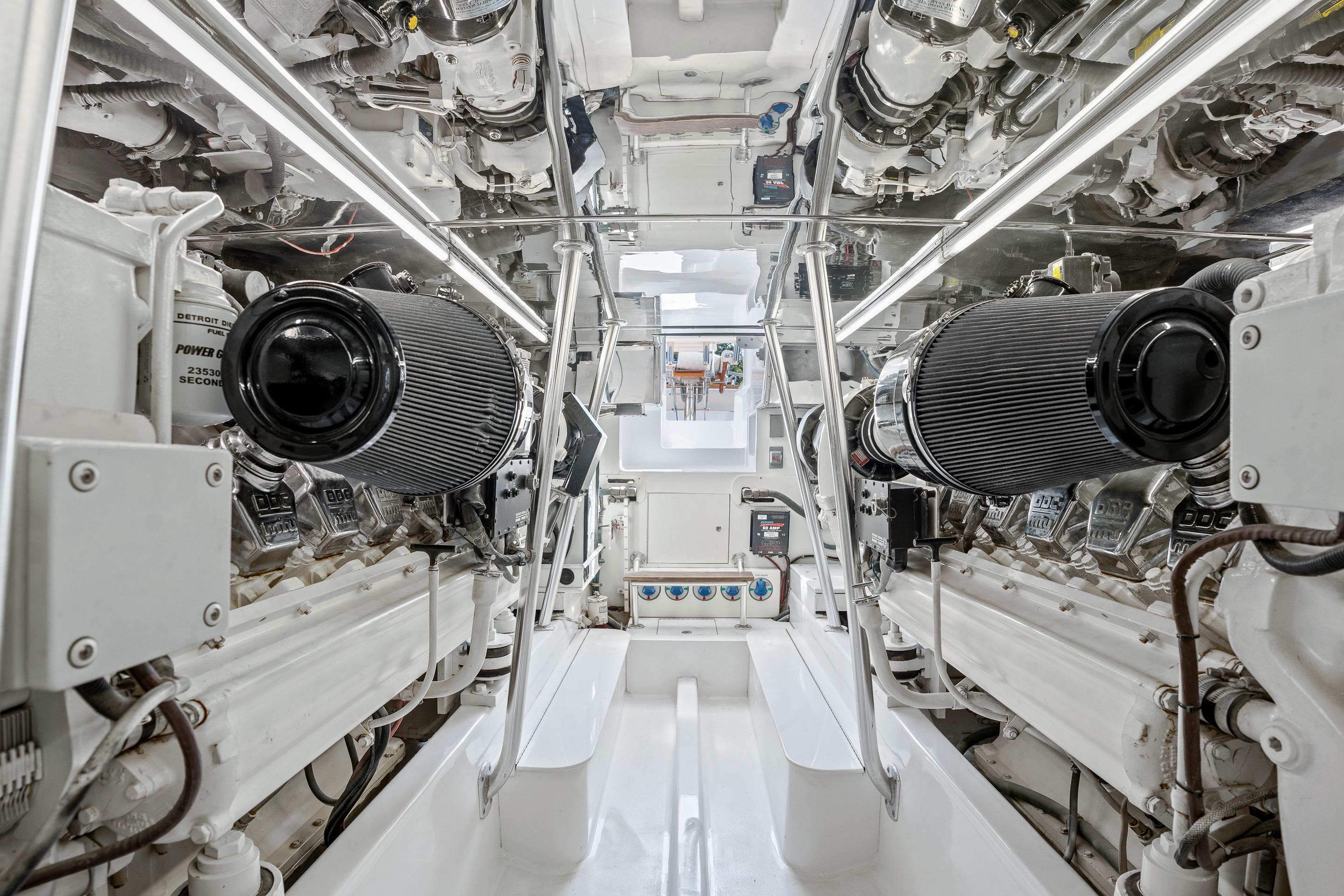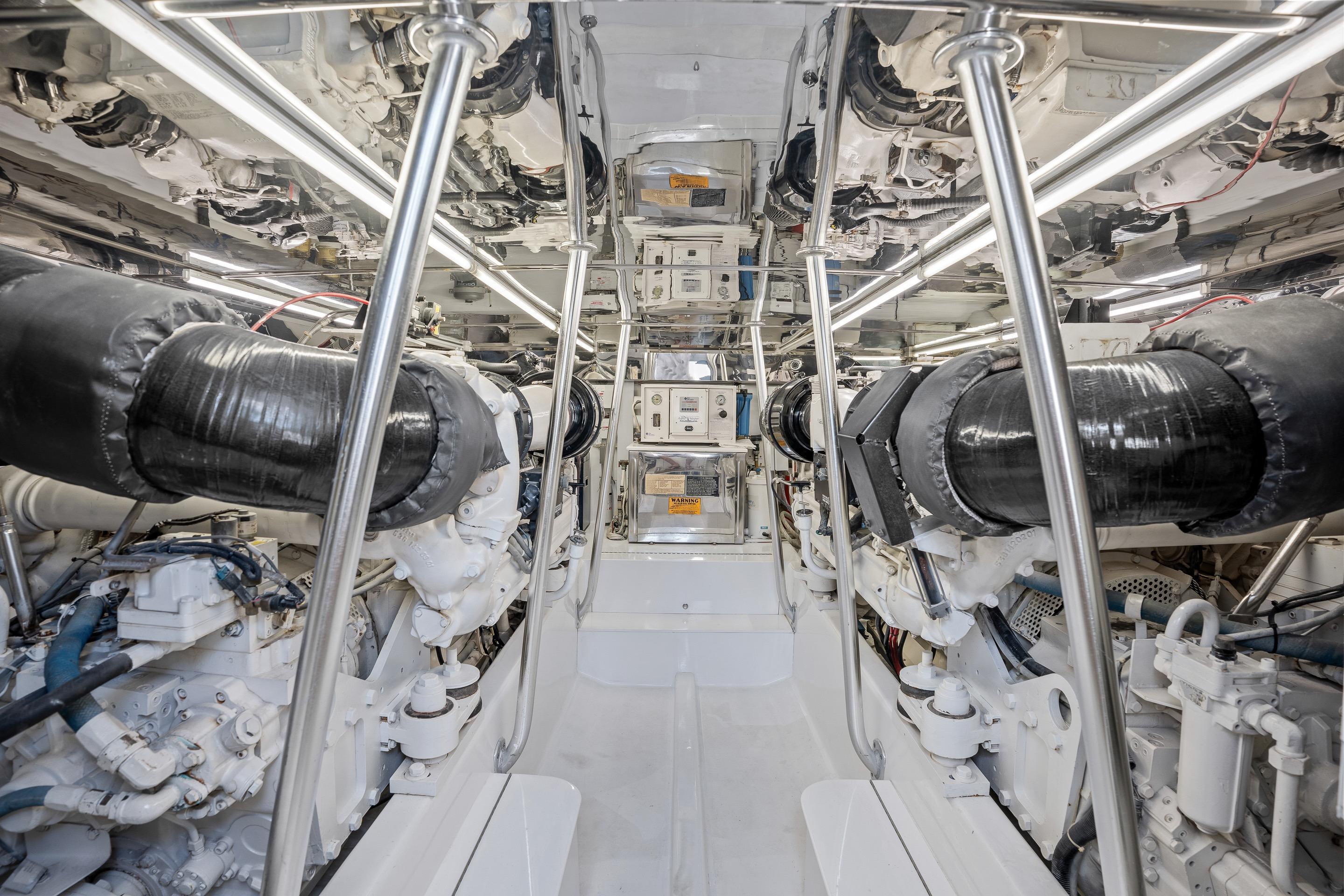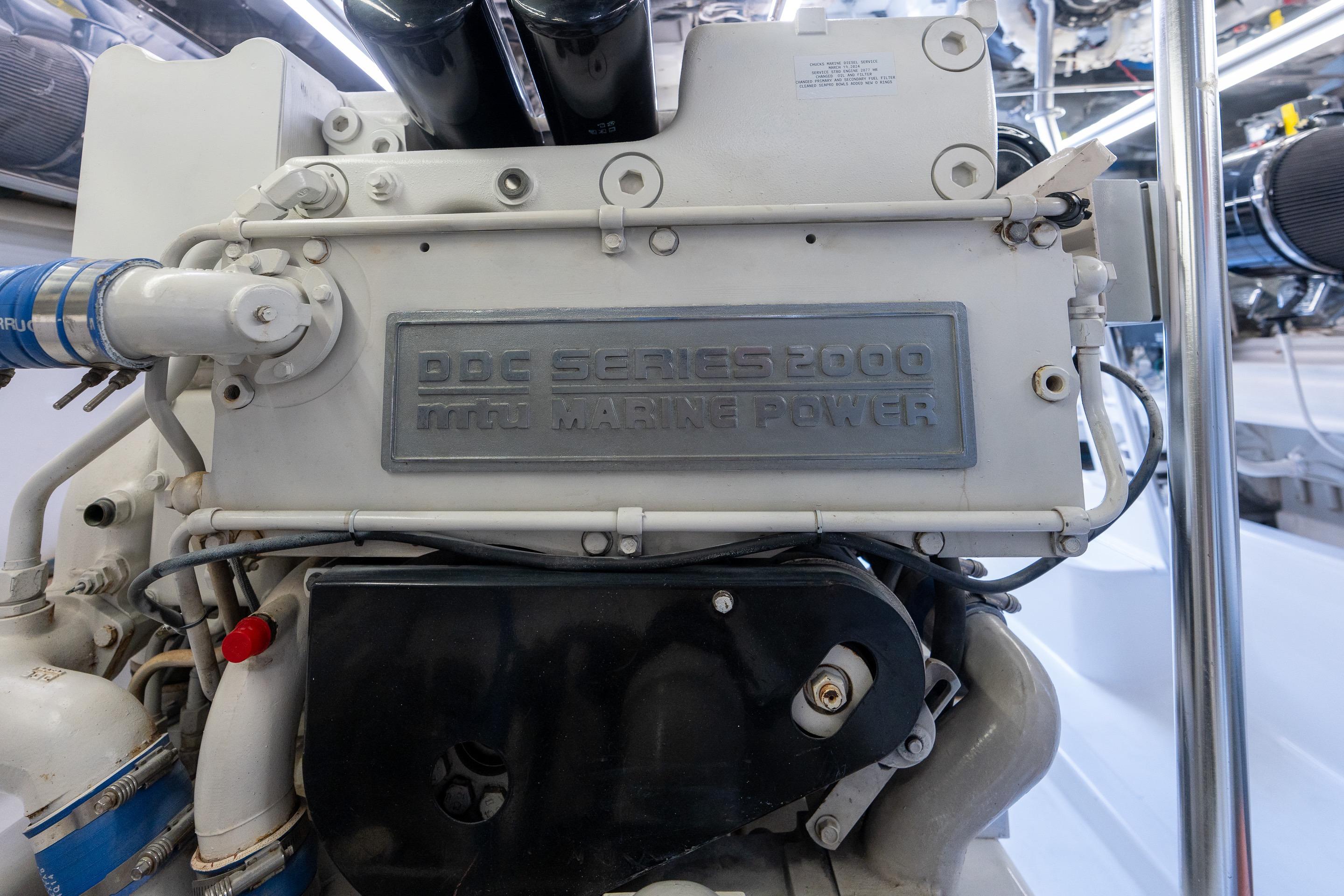 An extensive refit was completed in July 2025 by Island Boatworks. Work included: full paint job, custom mezzanine with an electric ER access, teak cover boards and coaming, teak deck at helm step pad, custom built-in hand rails on each side of the house for more modern look, Dometic 540 ice machine, Starlink system, electric grill in the cockpit, a wrap for the black mask, 50" light bar, (2) vhf antennas, SS hardware for the Release helm chairs and more! During the refit her MTUs received all new ECUs.