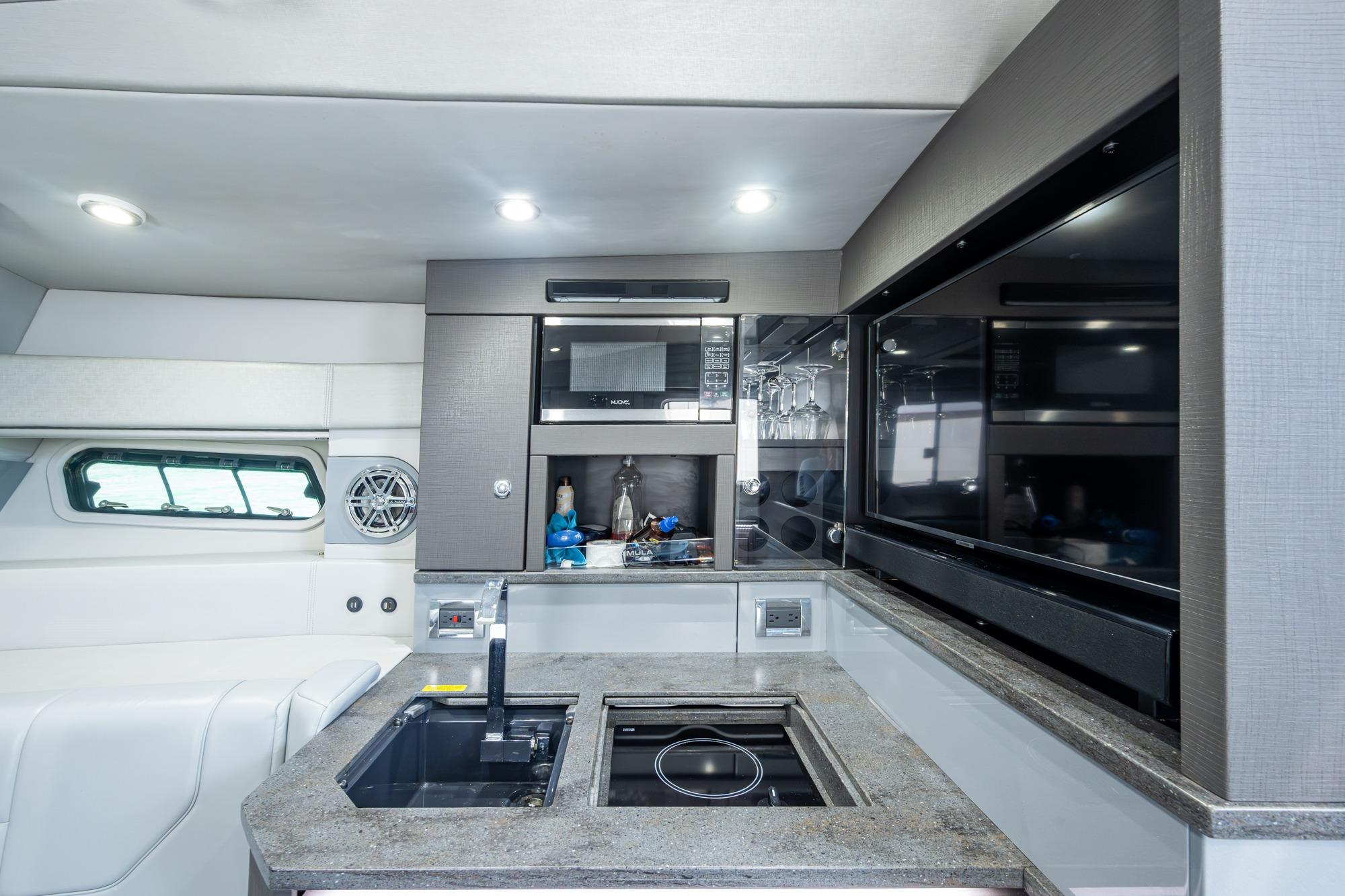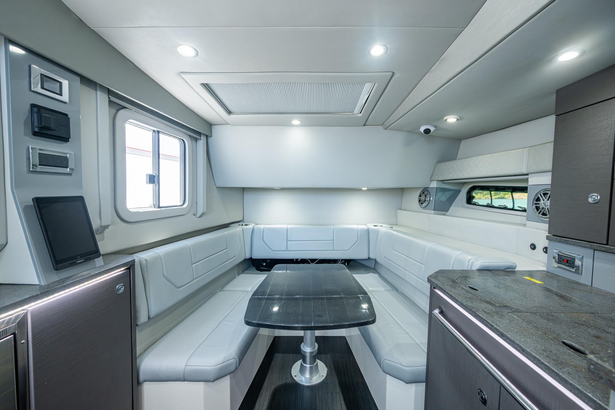 Luxurious interior with premium finishes & convertible sleeping accommodations