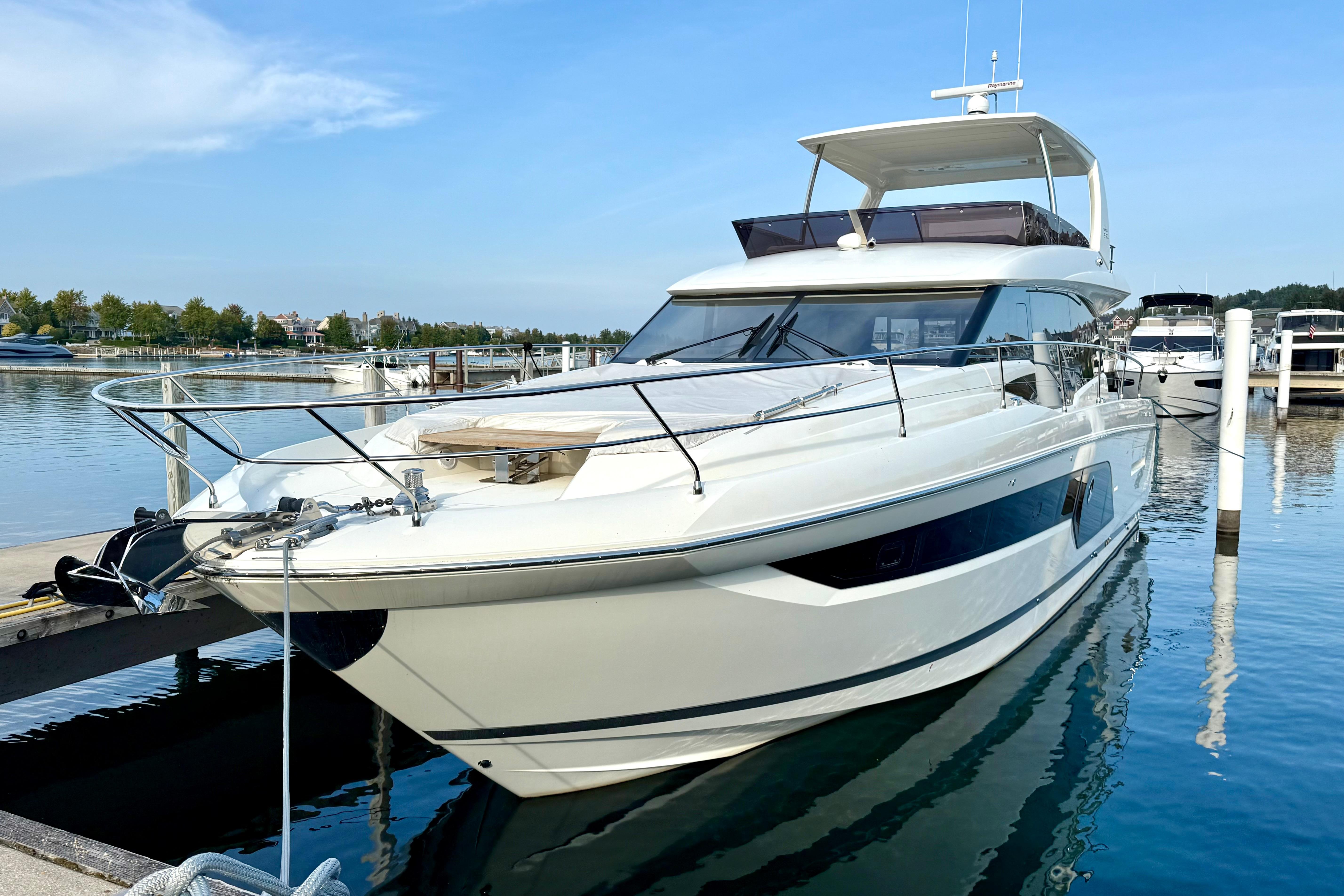 The Prestige 590 is designed for owners who want maximum comfort without needing a professional crew. At just over 60 feet, she offers the space and luxury of a true motor yacht, while remaining manageable by a couple thanks in part to joystick docking and thoughtfully placed controls. This particular Prestige has 150 original hours and gives you big-yacht presence and comfort in a size that is still practical, dockable, and fun to own/operate.