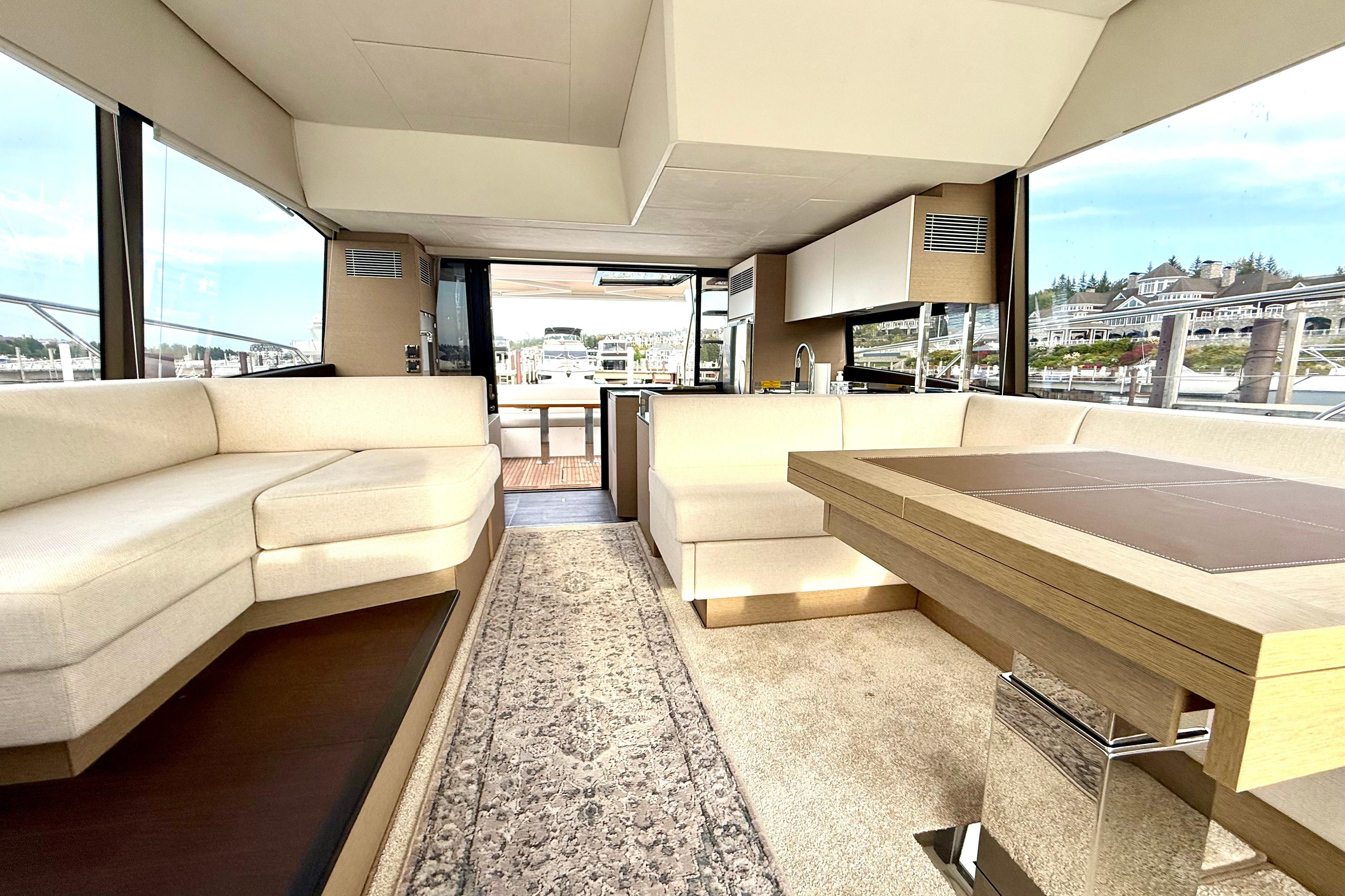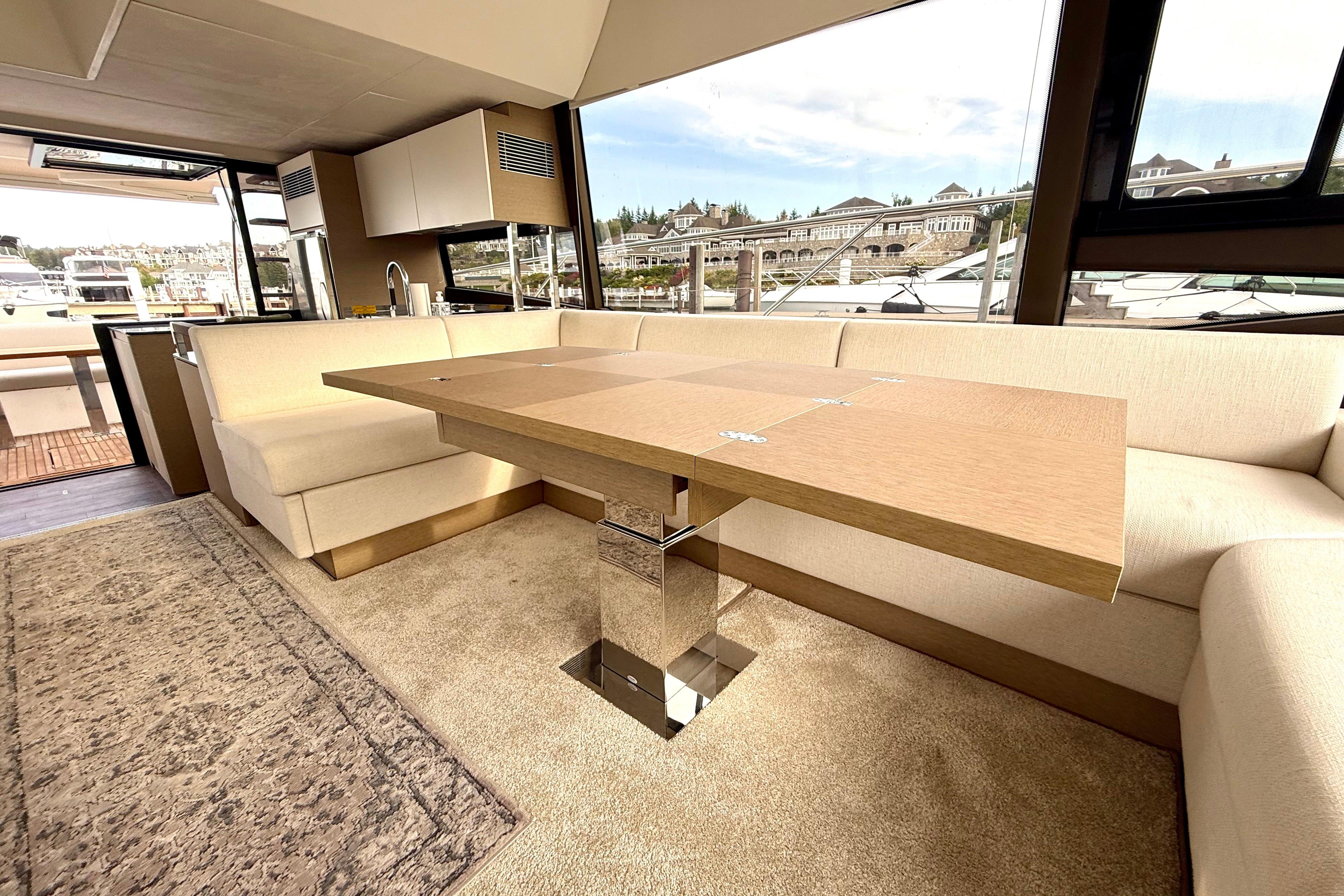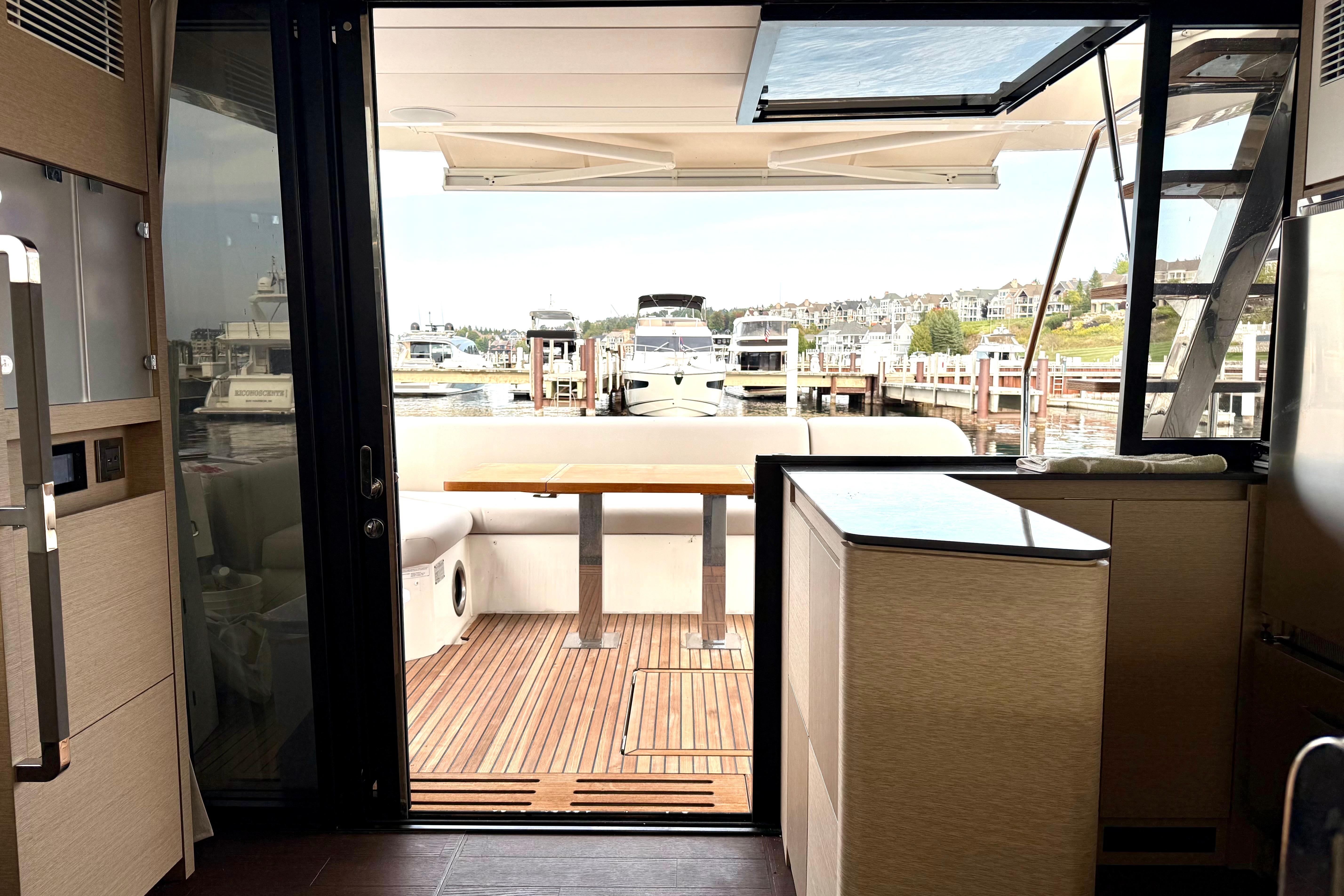 Lifestyle Flexibility: The aft-Galley flows seamlessly into the cockpit, making entertaining effortless, while the flybridge and foredeck lounges double your outdoor living spaces.
