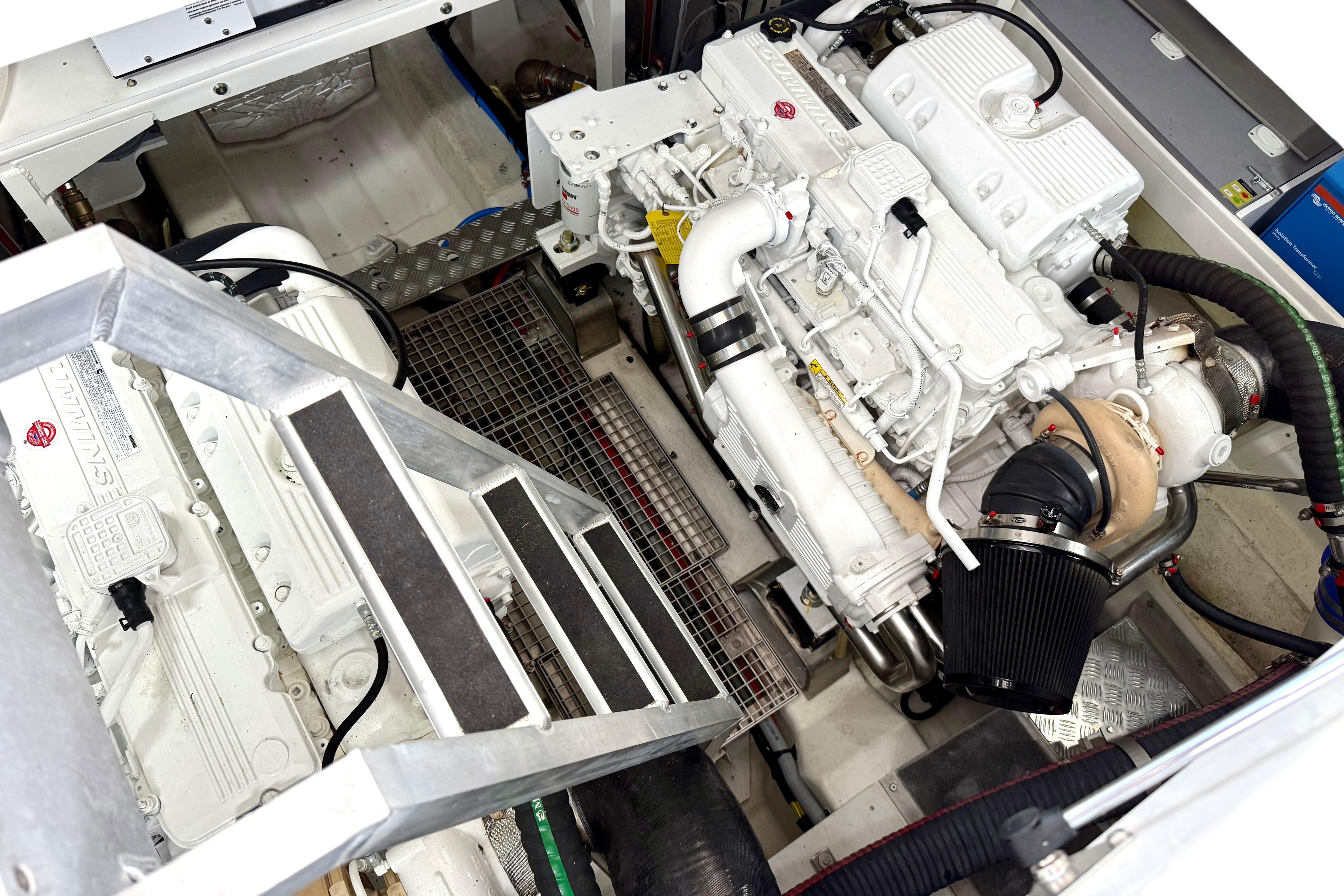 Comfort at Sea: A proven Prestige hull, wide chines for stability, powerful Cummins 8.3 600 X2 (150 original hours) deliver a quiet, smooth ride