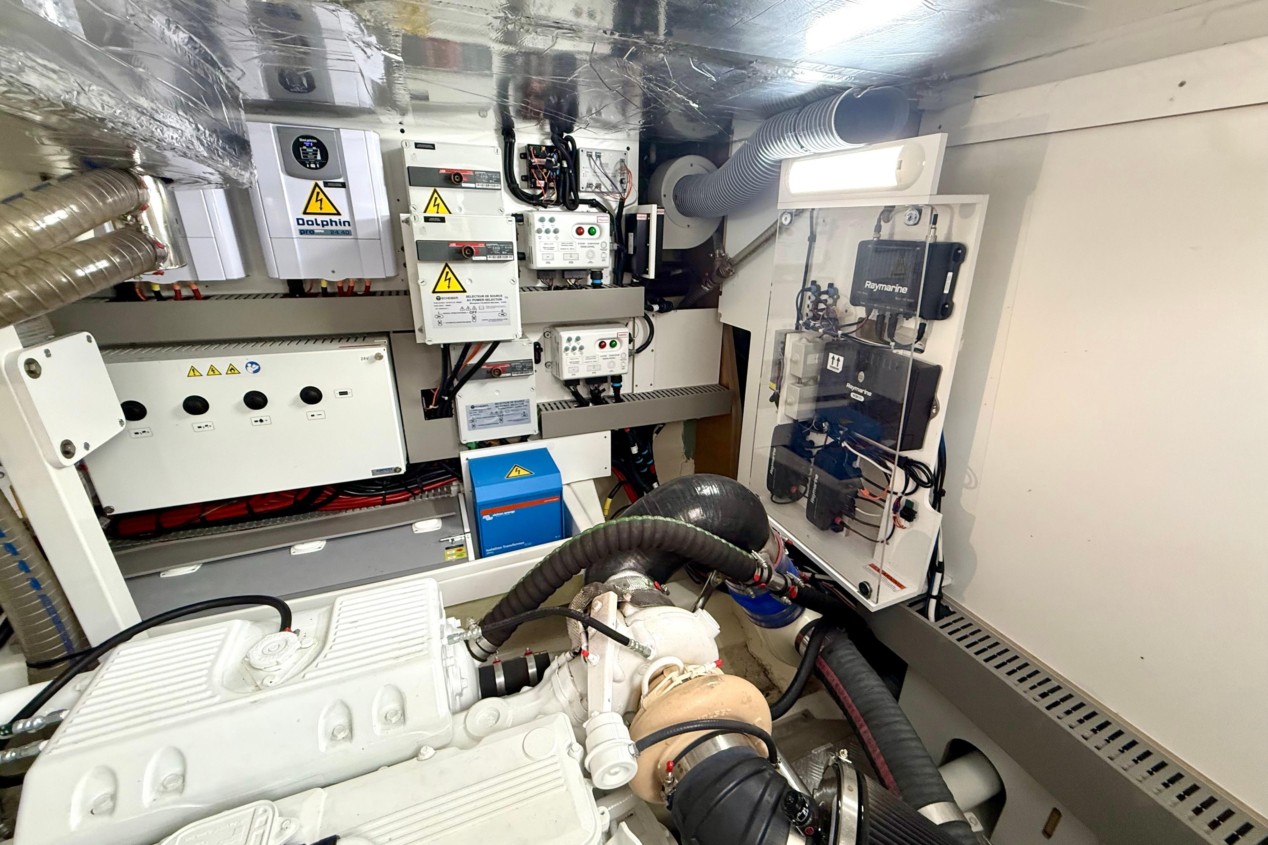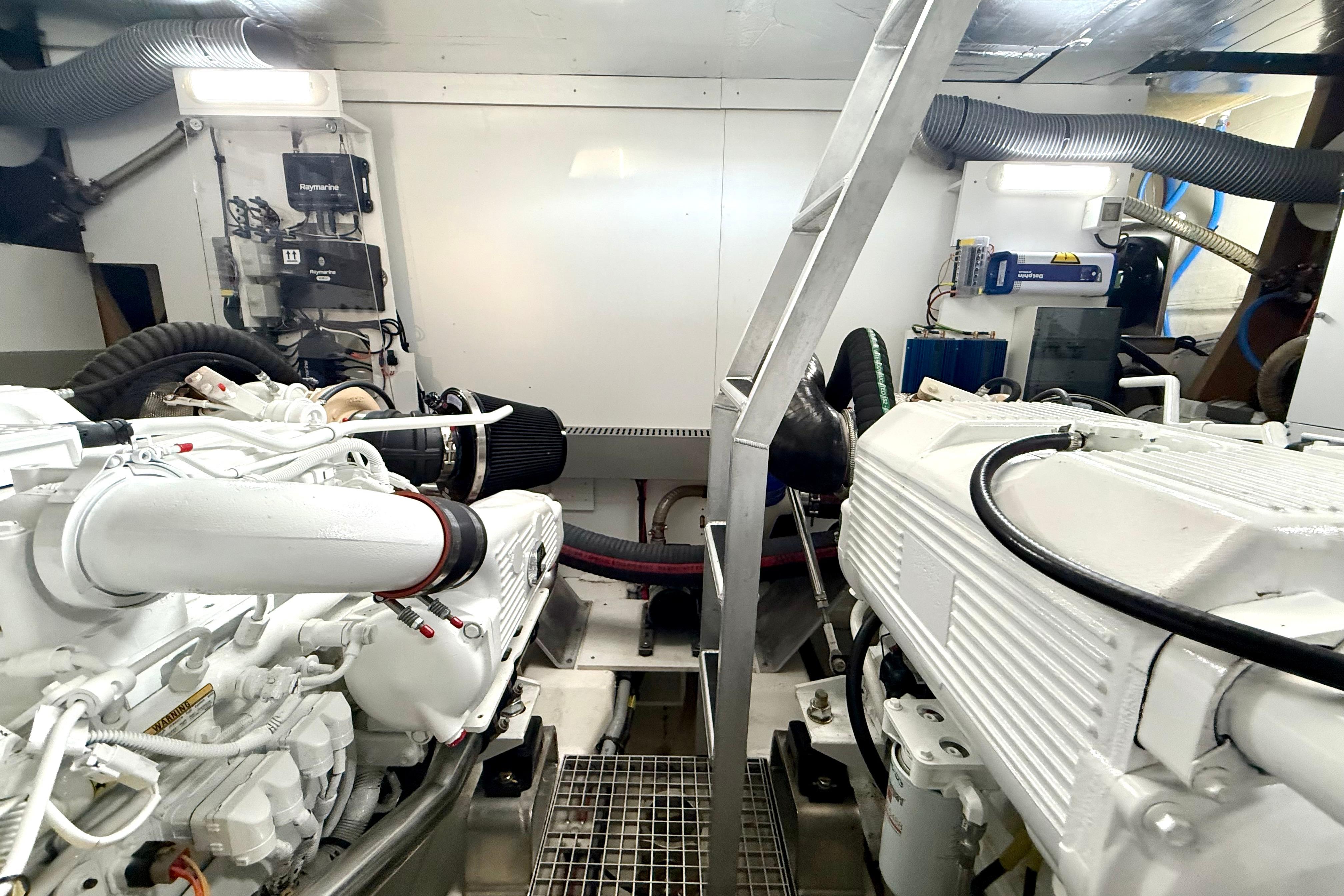 - Safety: Fire suppression system, CO detectors, automatic bilge pumps, high-water alarms