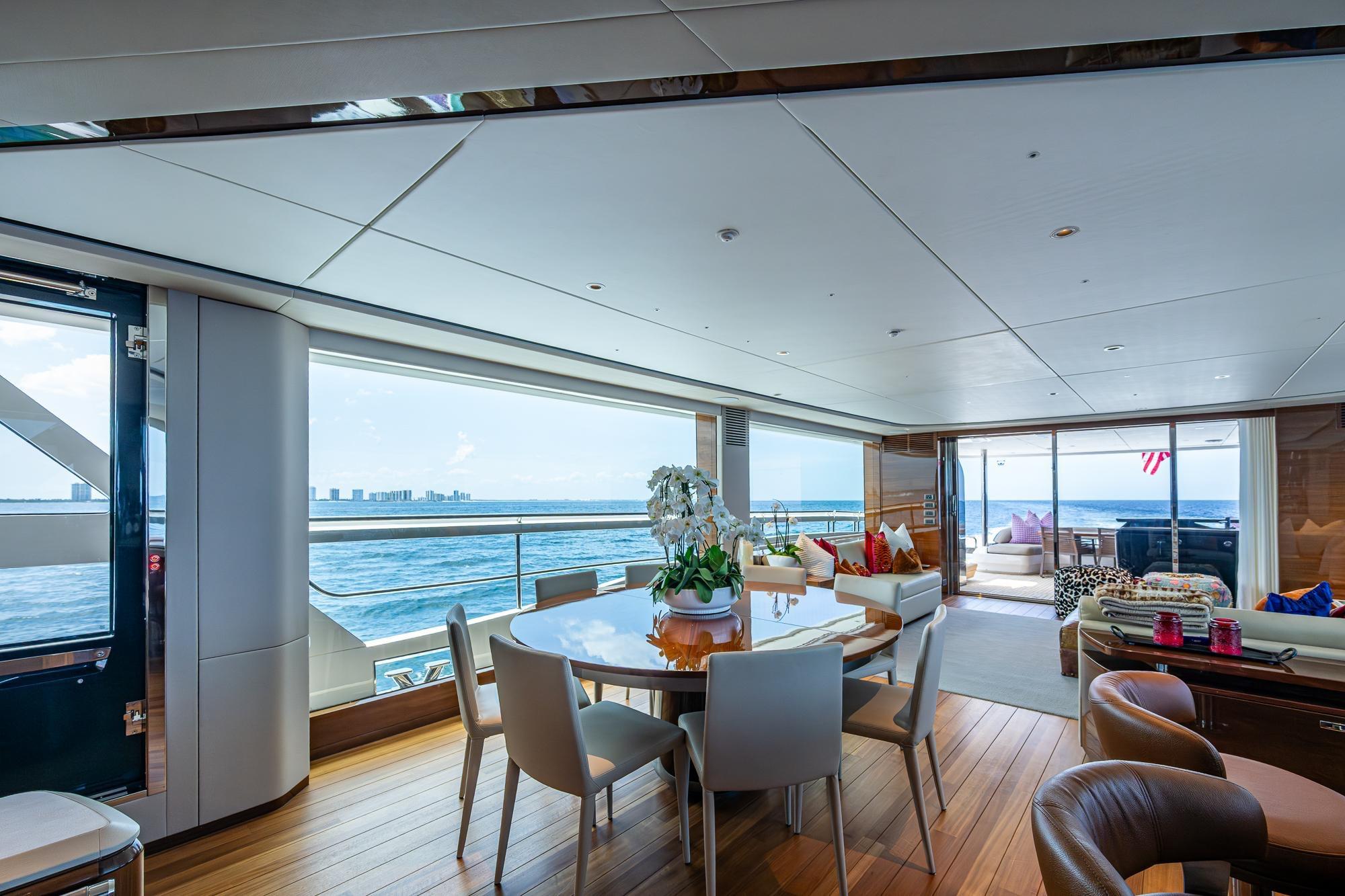 Optional: 5 stateroom layout with main deck master, enclosed galley, and dining for 10