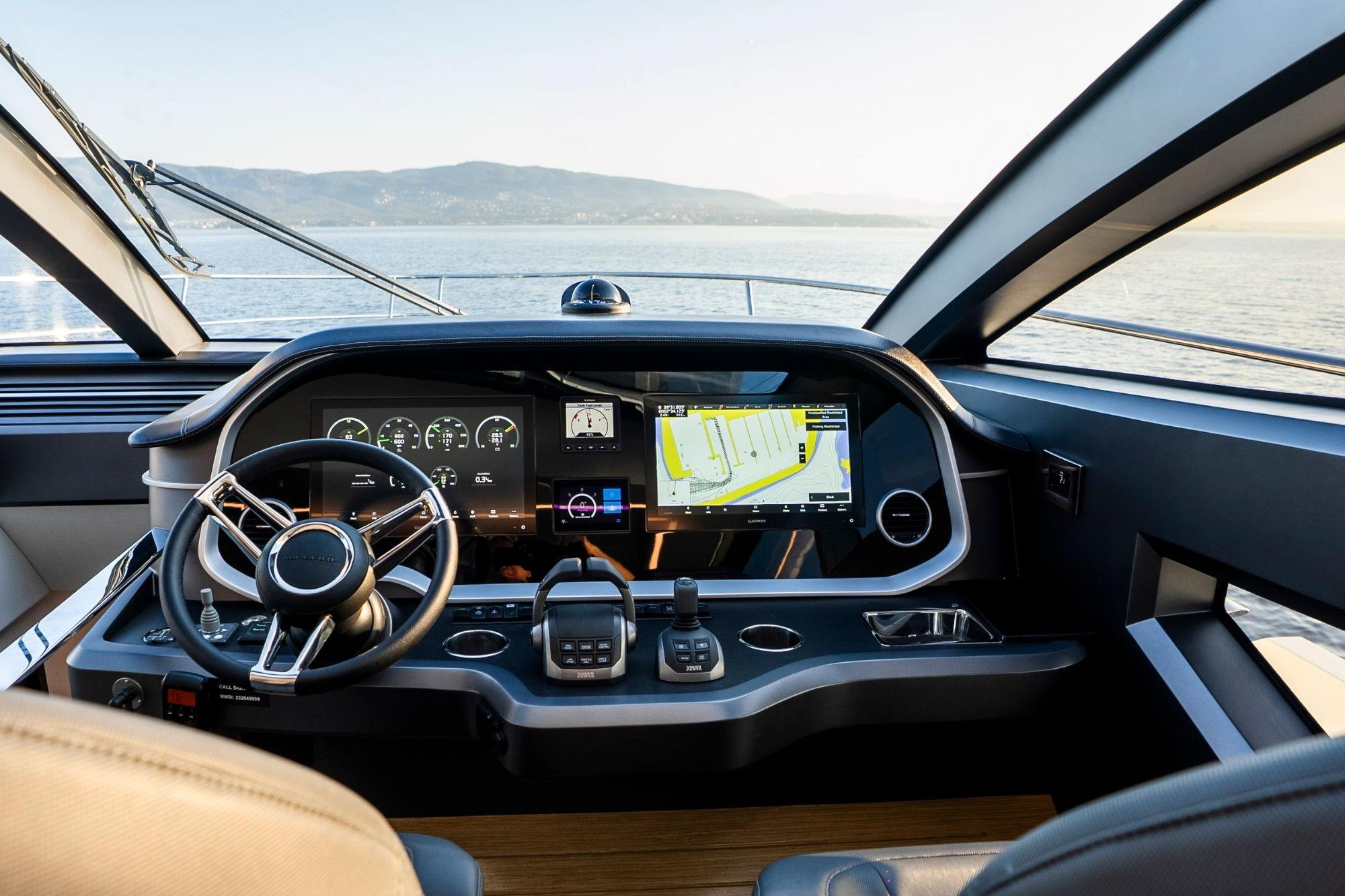- Coloured details on the flybridge hard top, foredeck and cockpit.