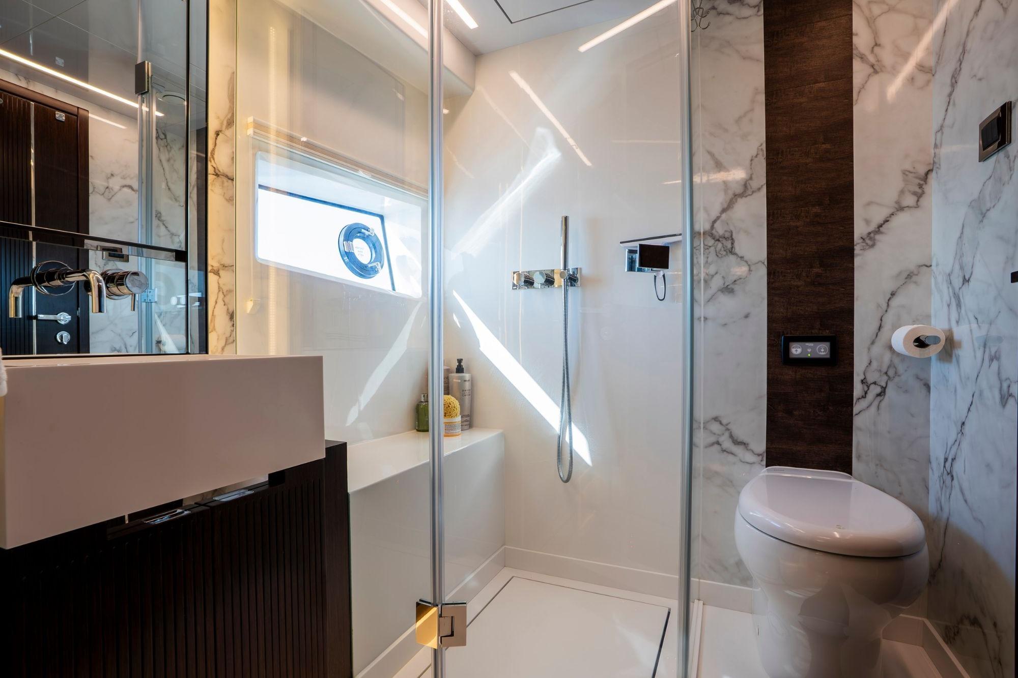 Her notable specification includes upgraded Volvo IPS 1200 engines, delivering impressive performance while ensuring effortless handling via the joystick docking system and bow thruster. She is further equipped with a Seakeeper SK9 gyro stabiliser, enhancing comfort both underway and at anchor.