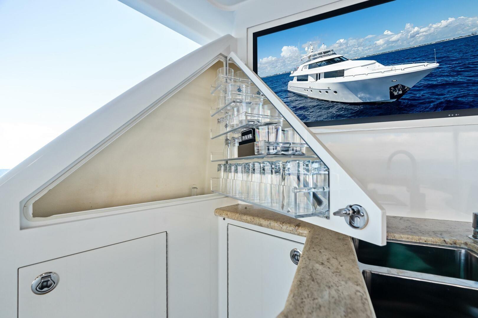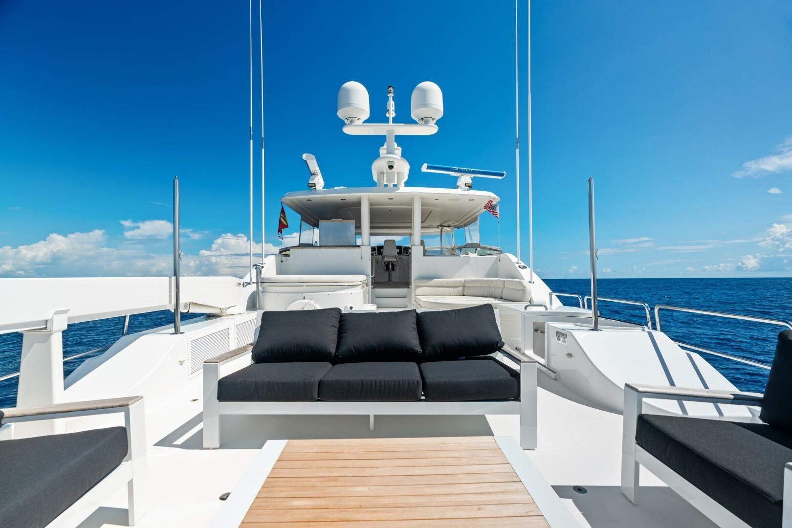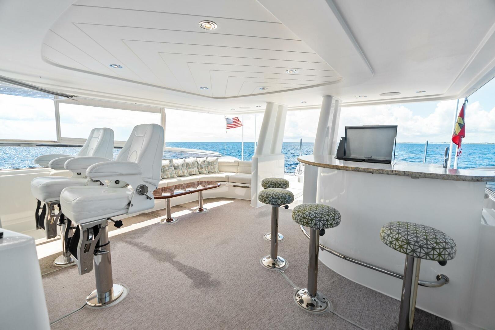 - Expansive flybridge with spa, bar, and tender deck with 2,500 lb. davit
