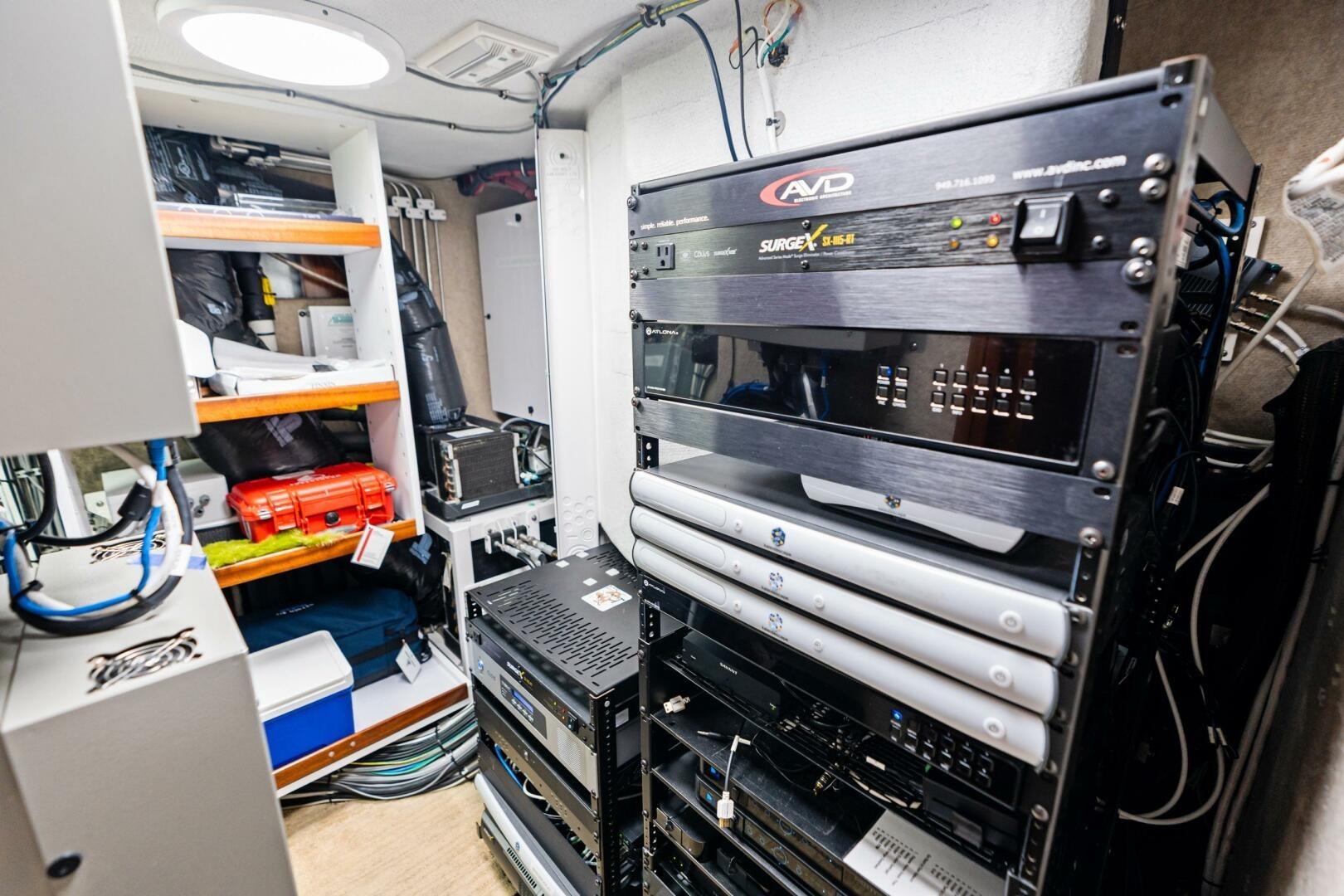 • (2) Victron 12V 120 AMP 3000VA inverter/chargers designated for AV components (replacing the original 60Hz UPS in the utility area aft of the crew lounge). In the event of power failure/switchover, the inverters create a seamless power transition, preventing shutdowns or failures of crucial AV units.