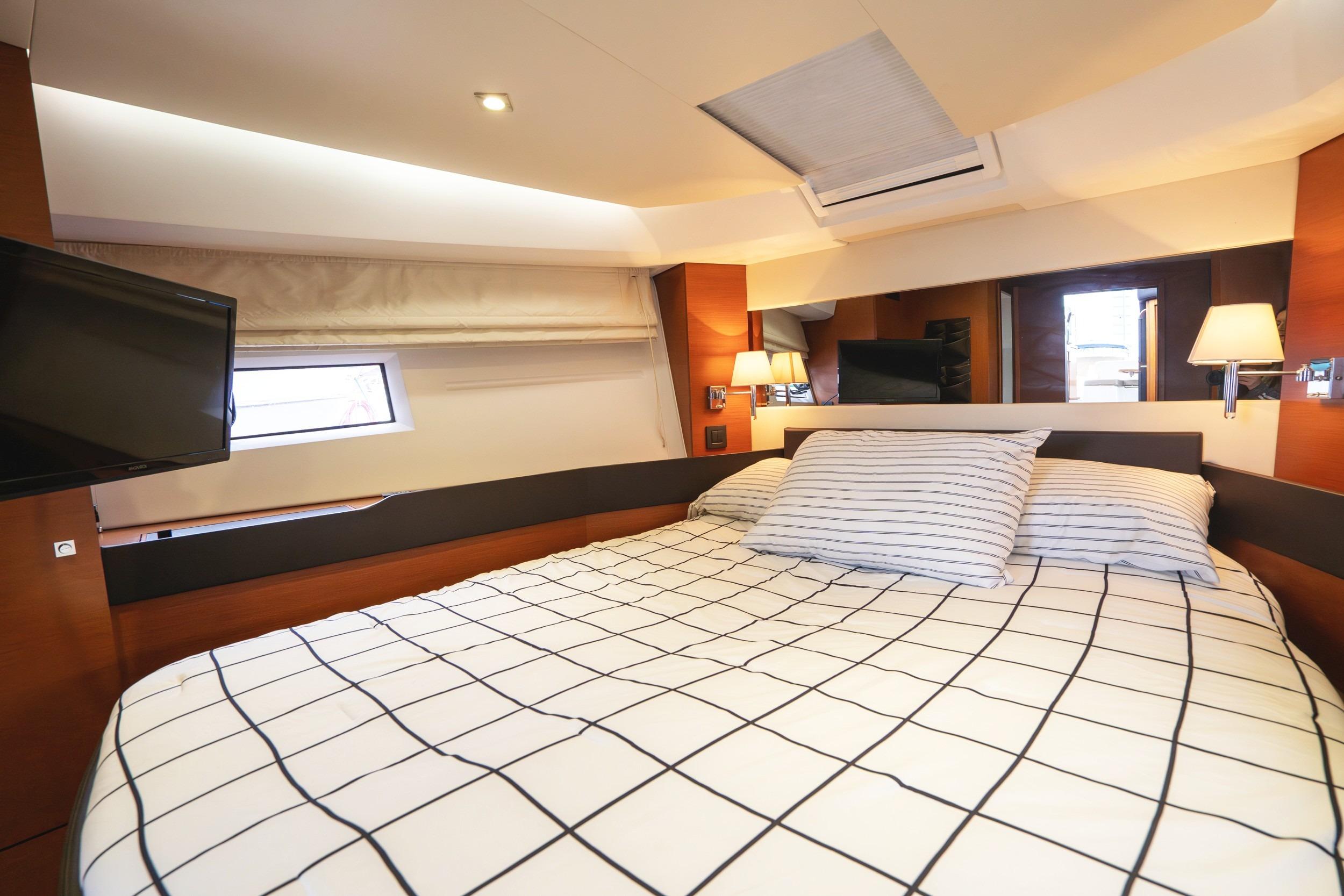 This Jeanneau NC 14, built in 2014, is a striking example of modern European yacht design, combining luxury, performance, and practicality.